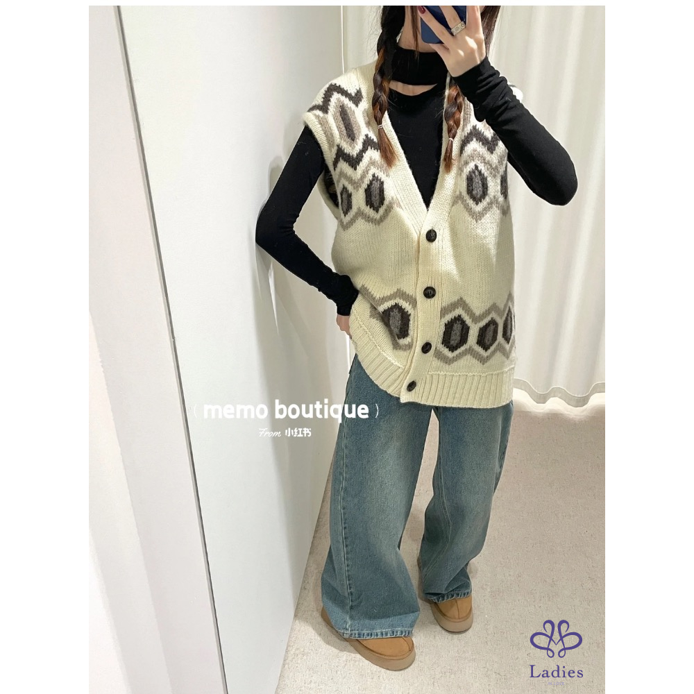 首頁 精品服飾 全新法國時尚GANNI費爾島緹花羊毛針織背心外套