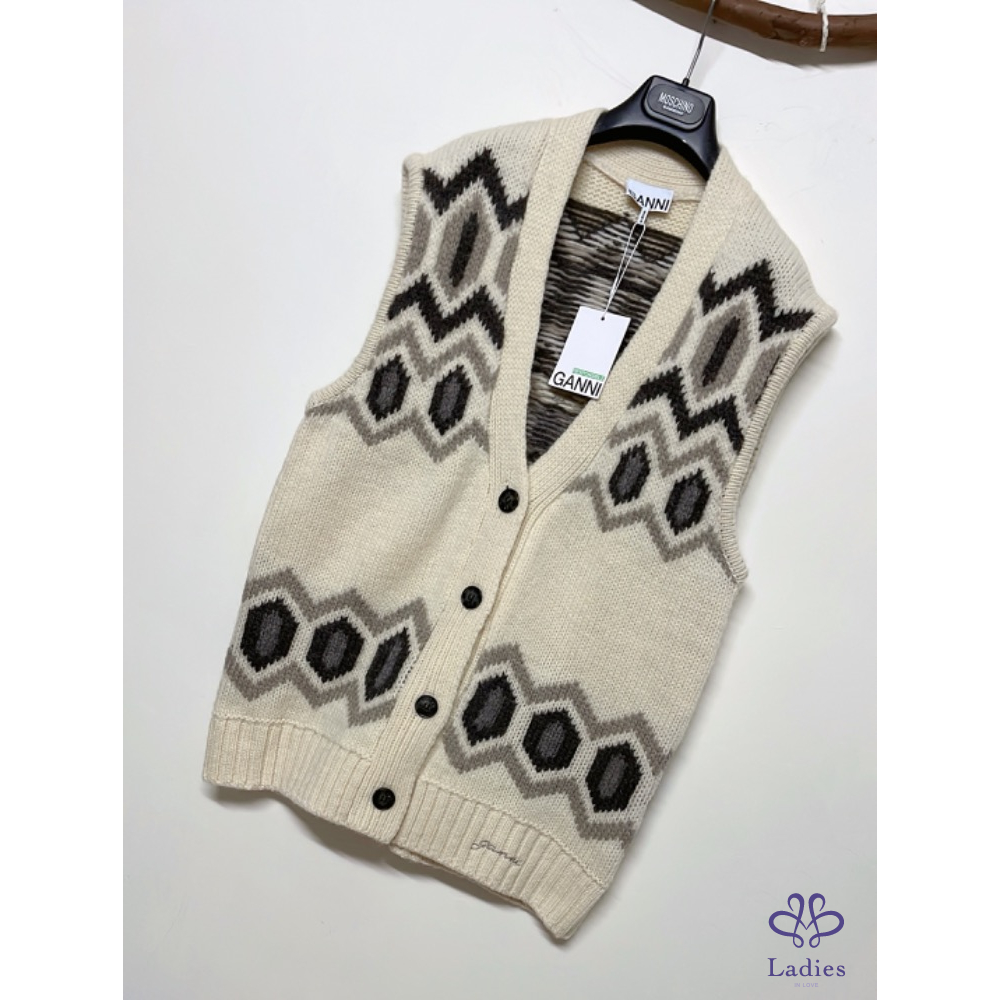 全新法國時尚GANNI費爾島緹花羊毛針織背心外套