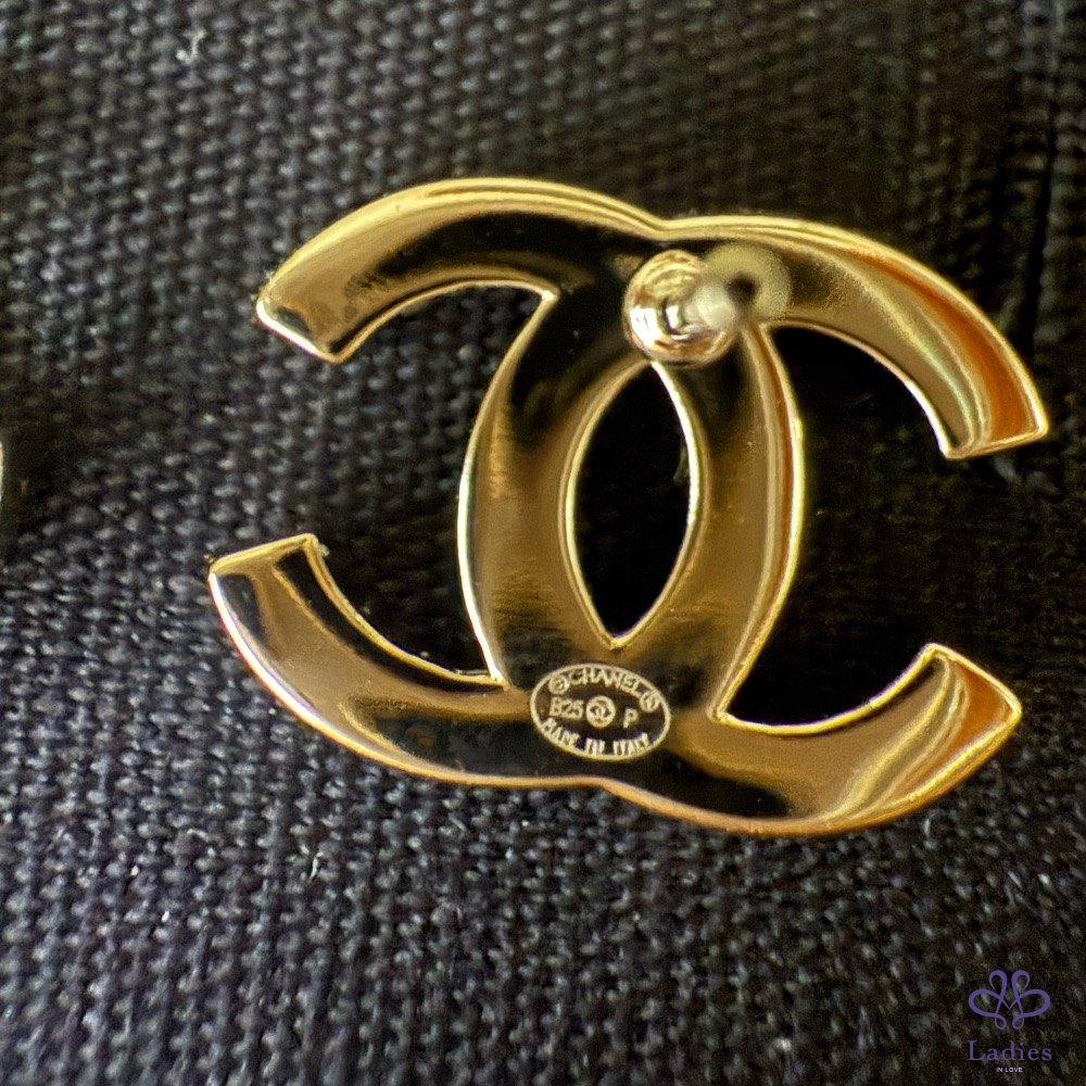 首頁 精品服飾 CHANEL 香奈兒 小香 25P 淡金 小雙C logo 半鑽 針式耳環 全新✨