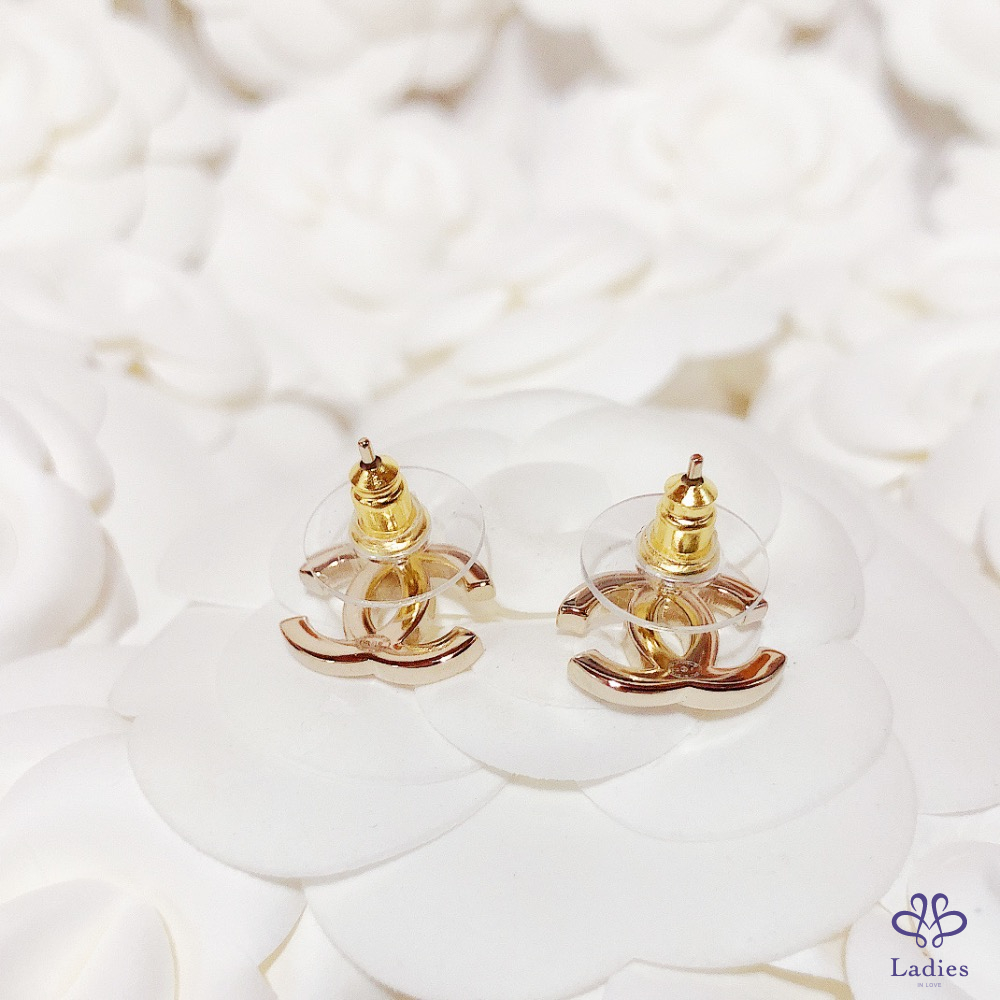 CHANEL 香奈兒 小香 25P 淡金 小雙C logo 半鑽 針式耳環 全新✨