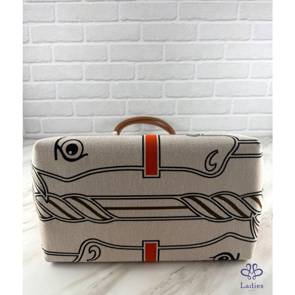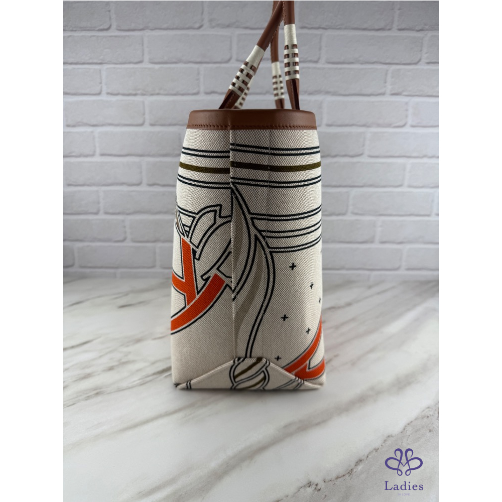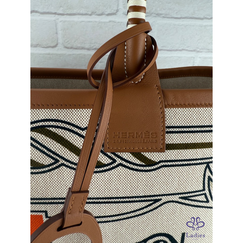 Steeple28手提包結合帆布和皮革,玩味十足的細節令人聯想到Hermès的馬術精神:雙色包款的手提把搭配馬鐙吊飾呈現騎士馬鞭造型