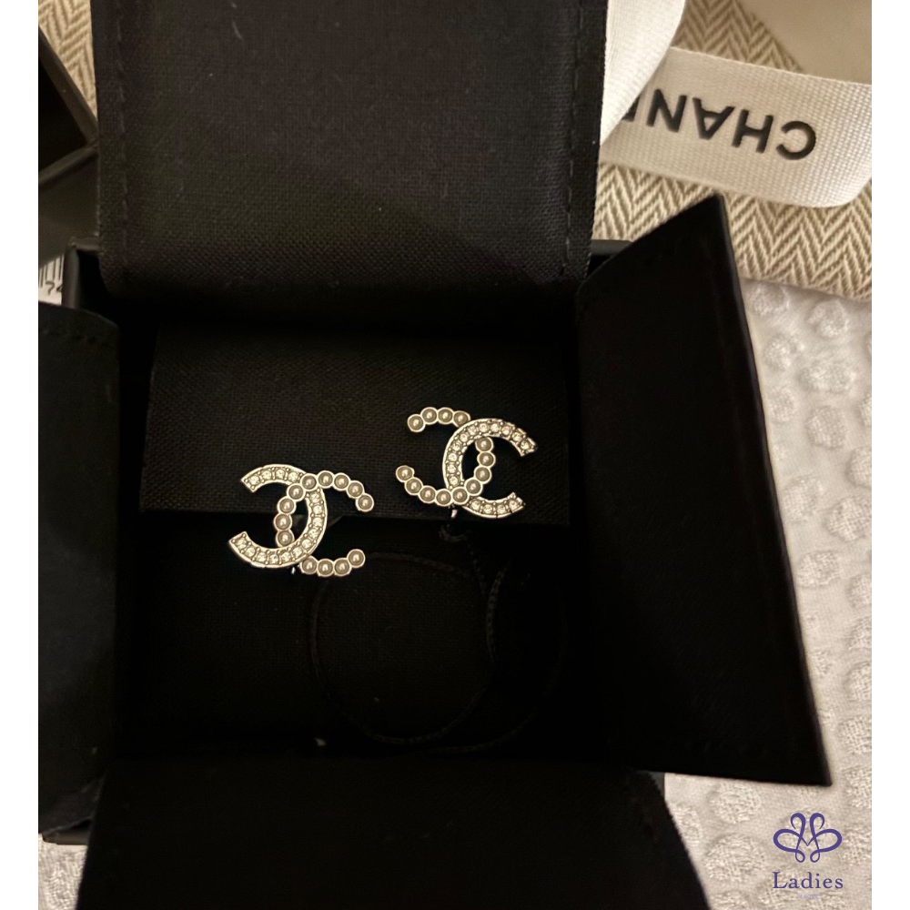 品名:Chanel香奈兒雙C半珍珠半鑲鑽耳環