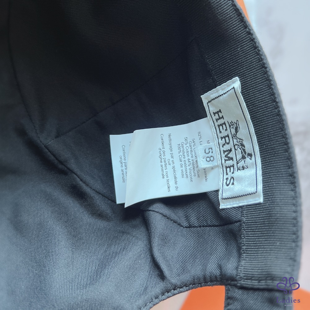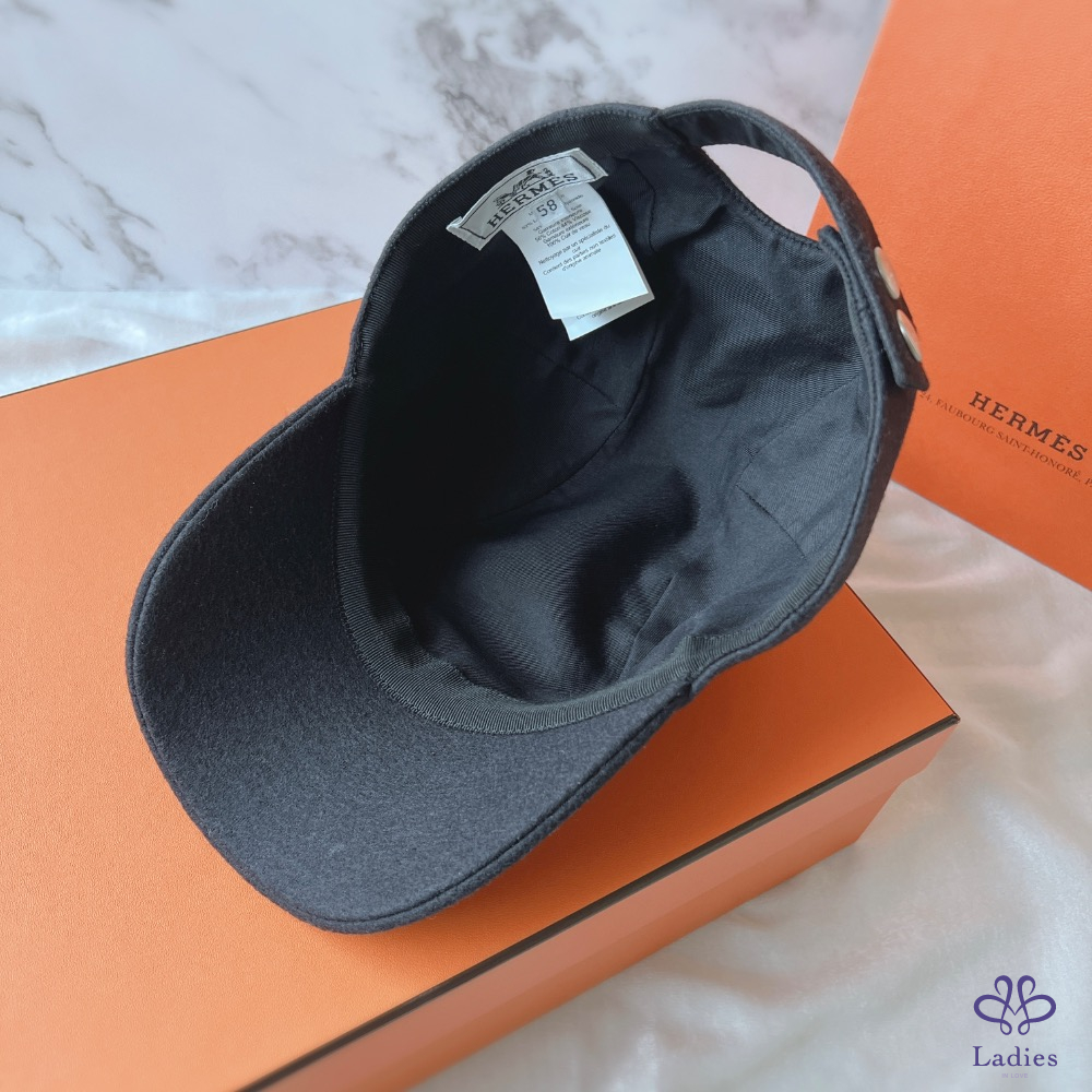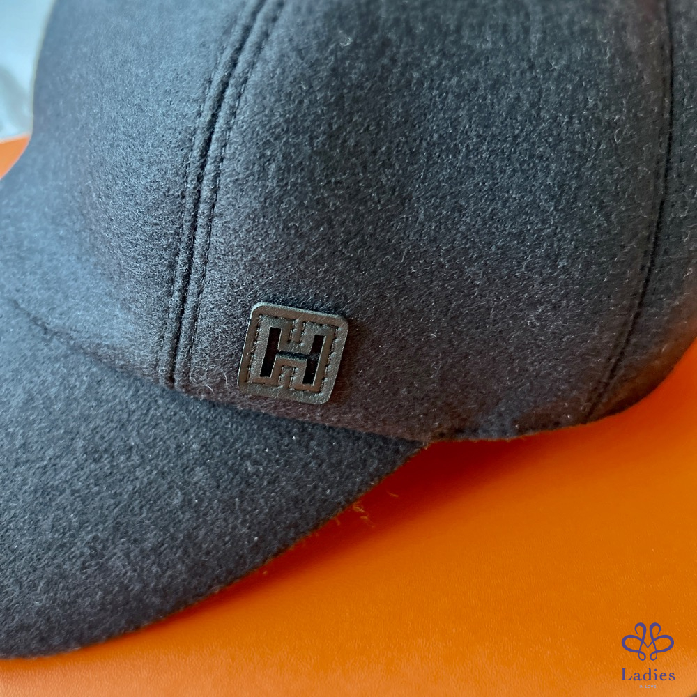 愛馬仕Hermes 高級皮標H x羊絨棒球帽 時尚黑58 | 西班牙購證 x全配