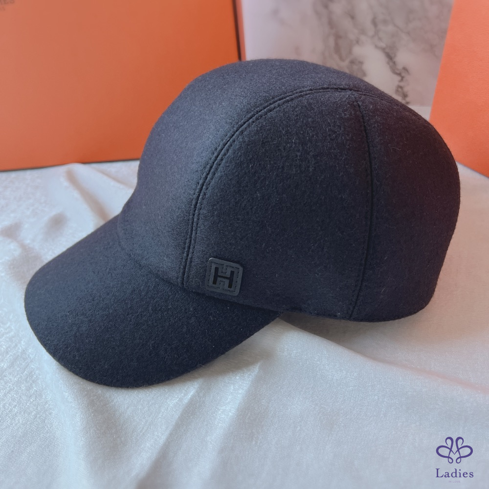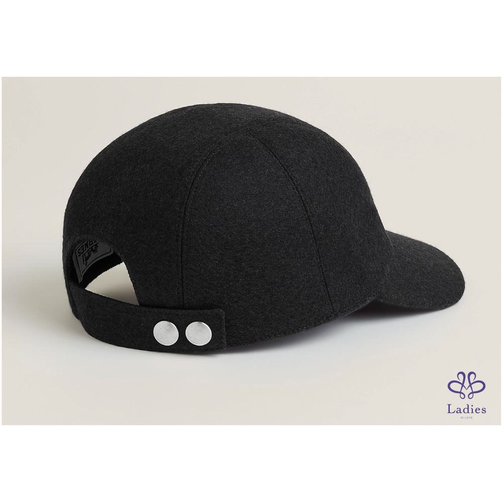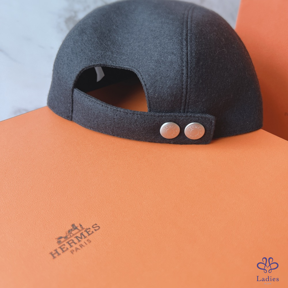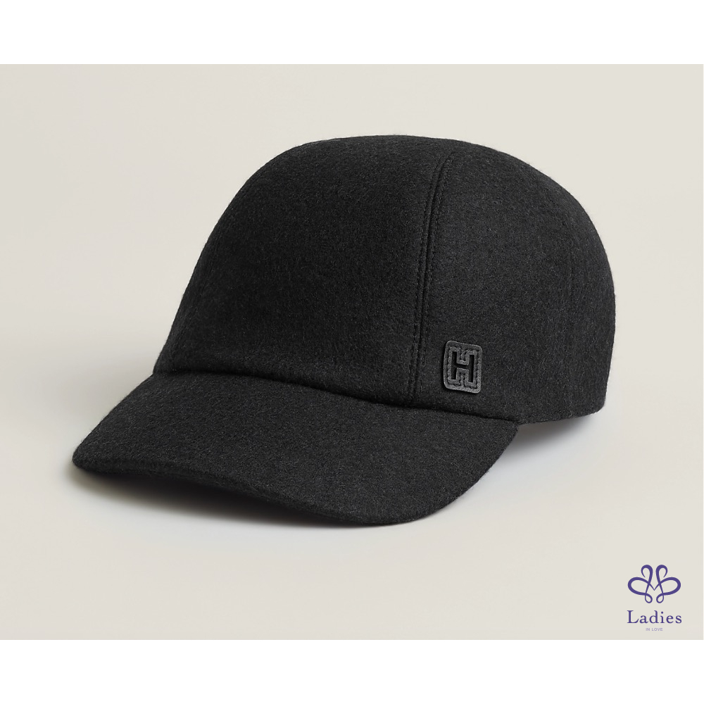 愛馬仕Hermes 高級皮標H x羊絨棒球帽 時尚黑58 | 西班牙購證 x全配