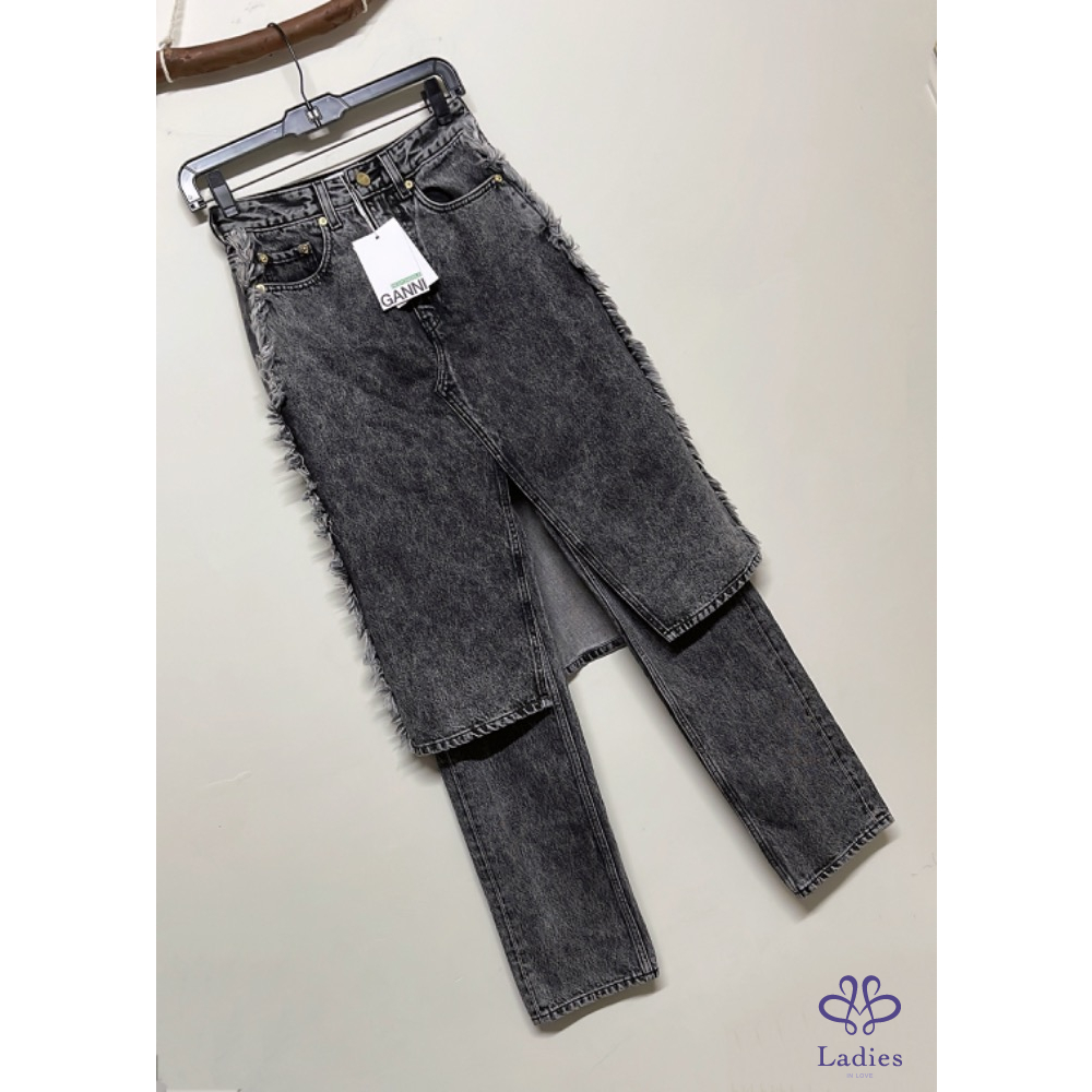 全新法國最火品牌 GANNI黑色水洗復古牛仔裙褲