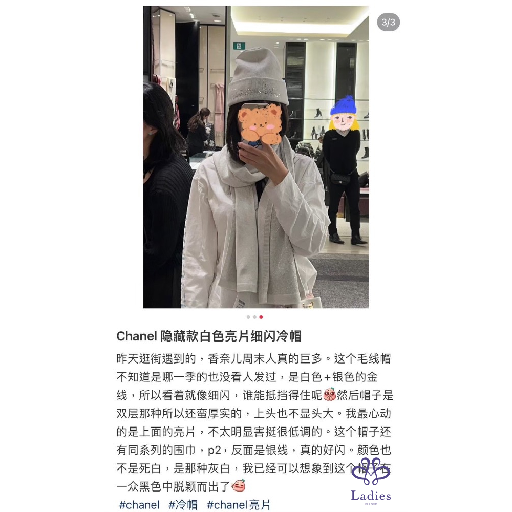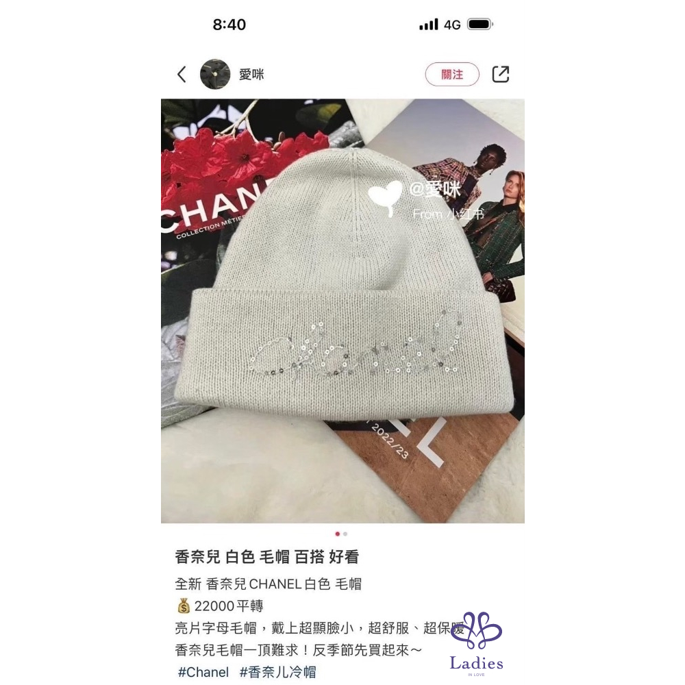 產品信息 ????CHANEL 香奈兒 白色毛帽 冷帽 精緻亮片字母 ????售:18000元???? 超便宜???????? 喀什米爾Cashmere 隱藏版白色亮片細閃毛帽 戴上超顯臉小 、超舒服 、超保暖 細看是灰白色 搭配細閃銀????線、低調有質感、超美、超仙 冬季搭配必備亮眼單品 歐洲購入 僅戴過一次 九成新以上 可以接受二手交流的美人再下標 售出不退 附上紙袋、購證影本