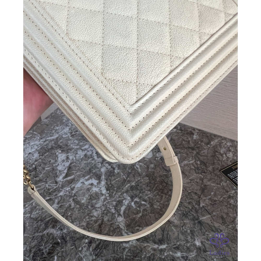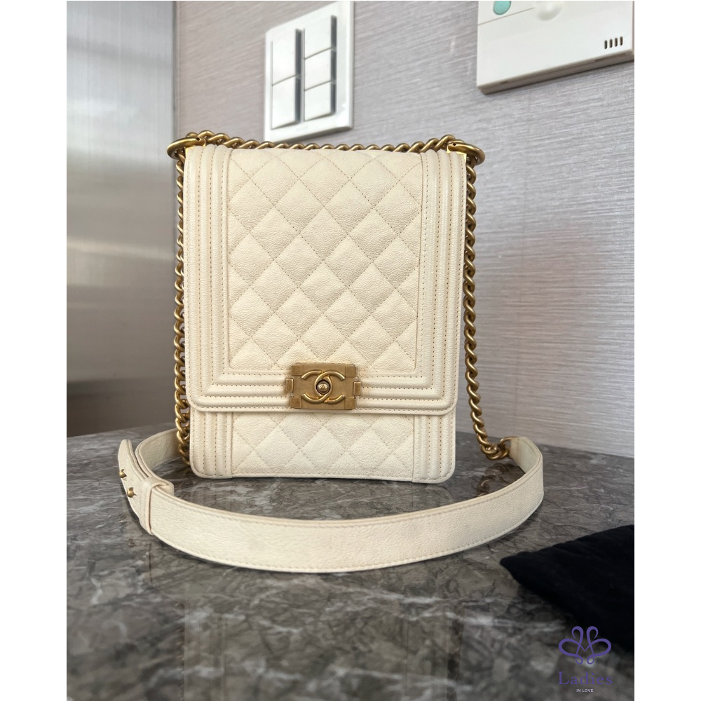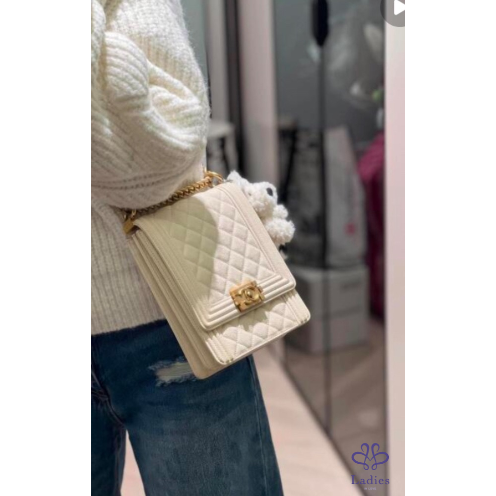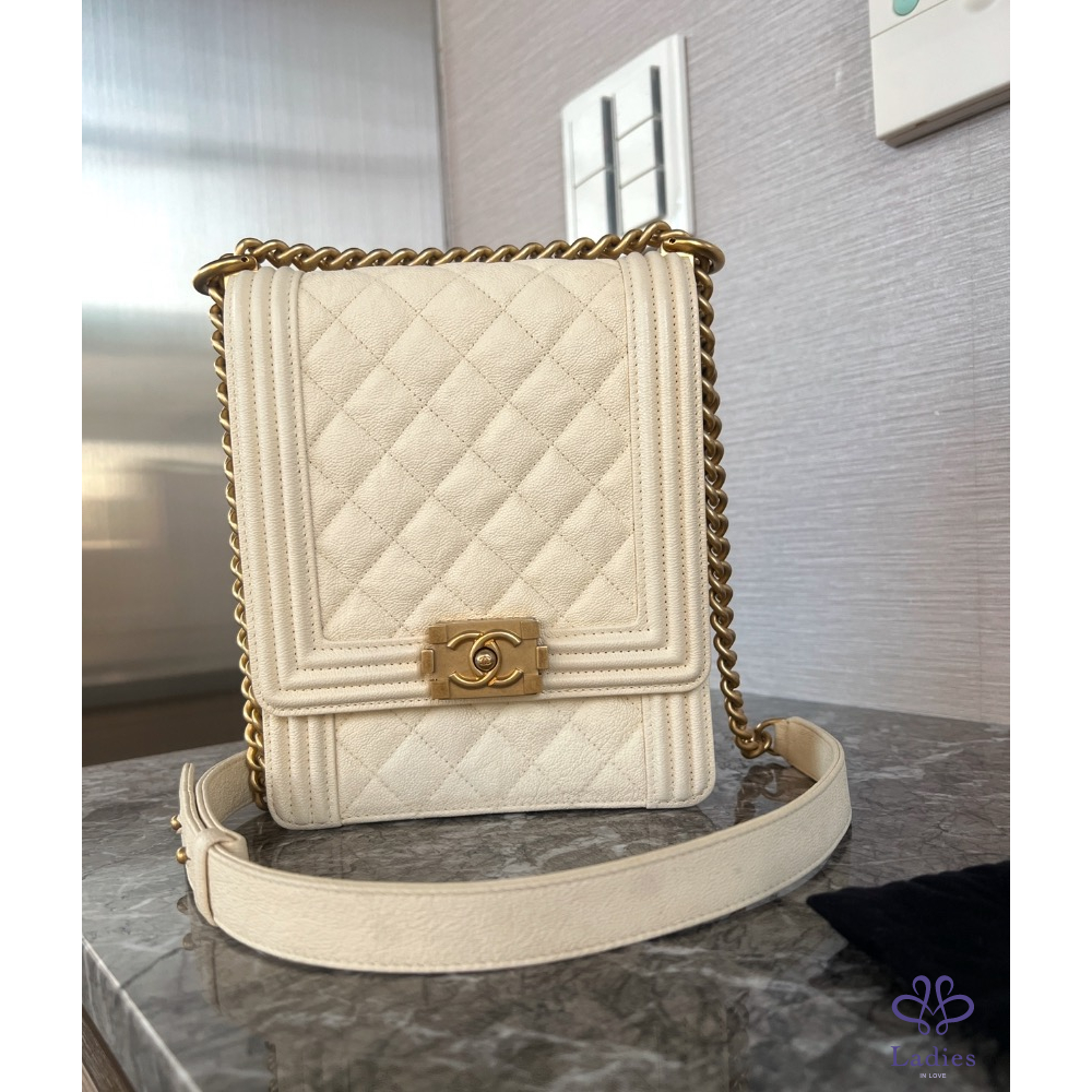 售Chanel 直立boy 荔枝牛皮奶油白金錬