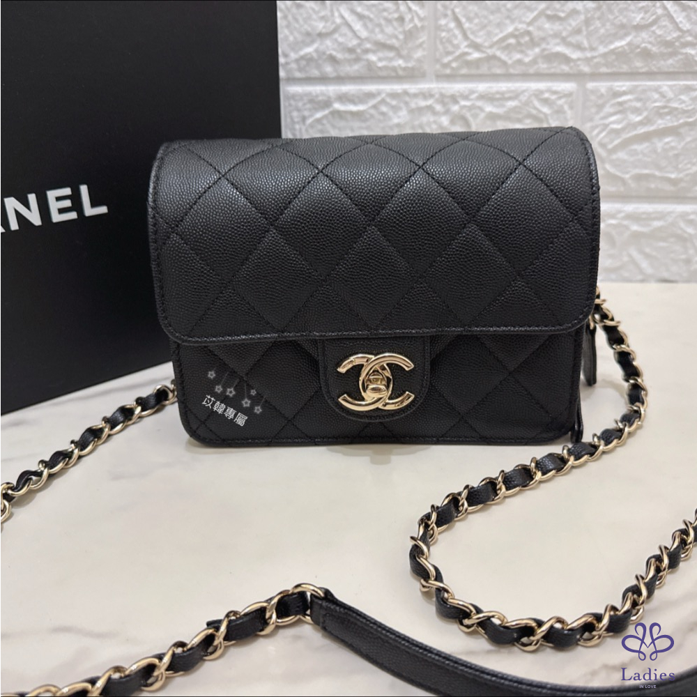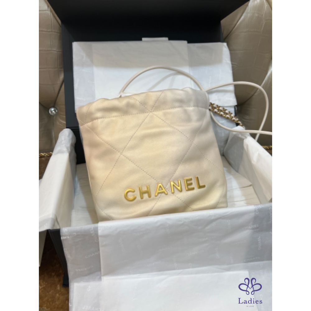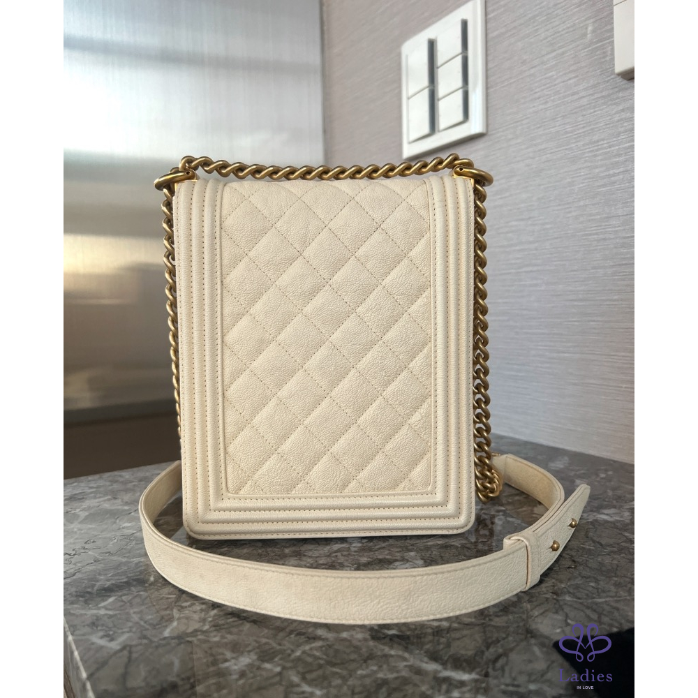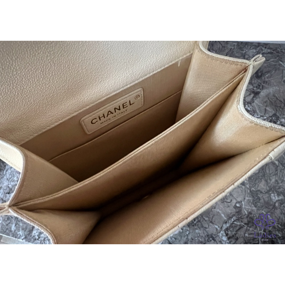 售Chanel 直立boy 荔枝牛皮奶油白金錬