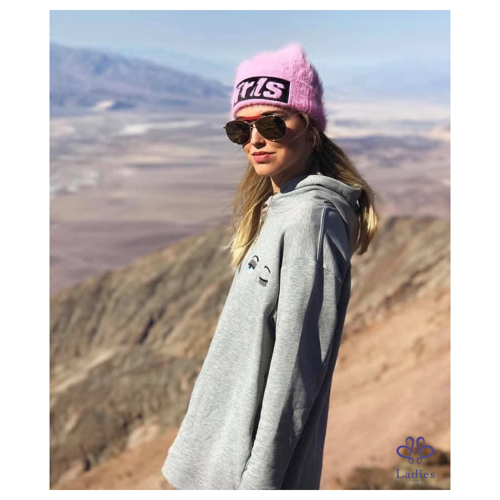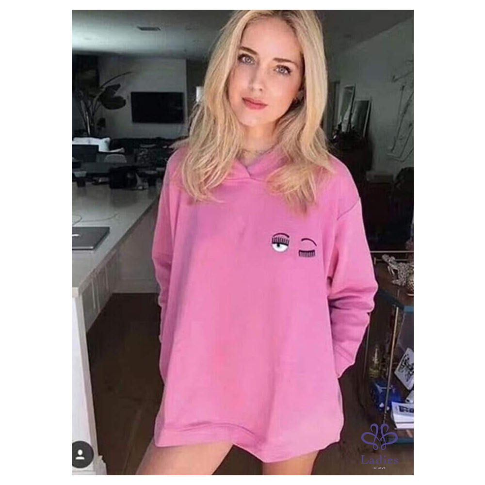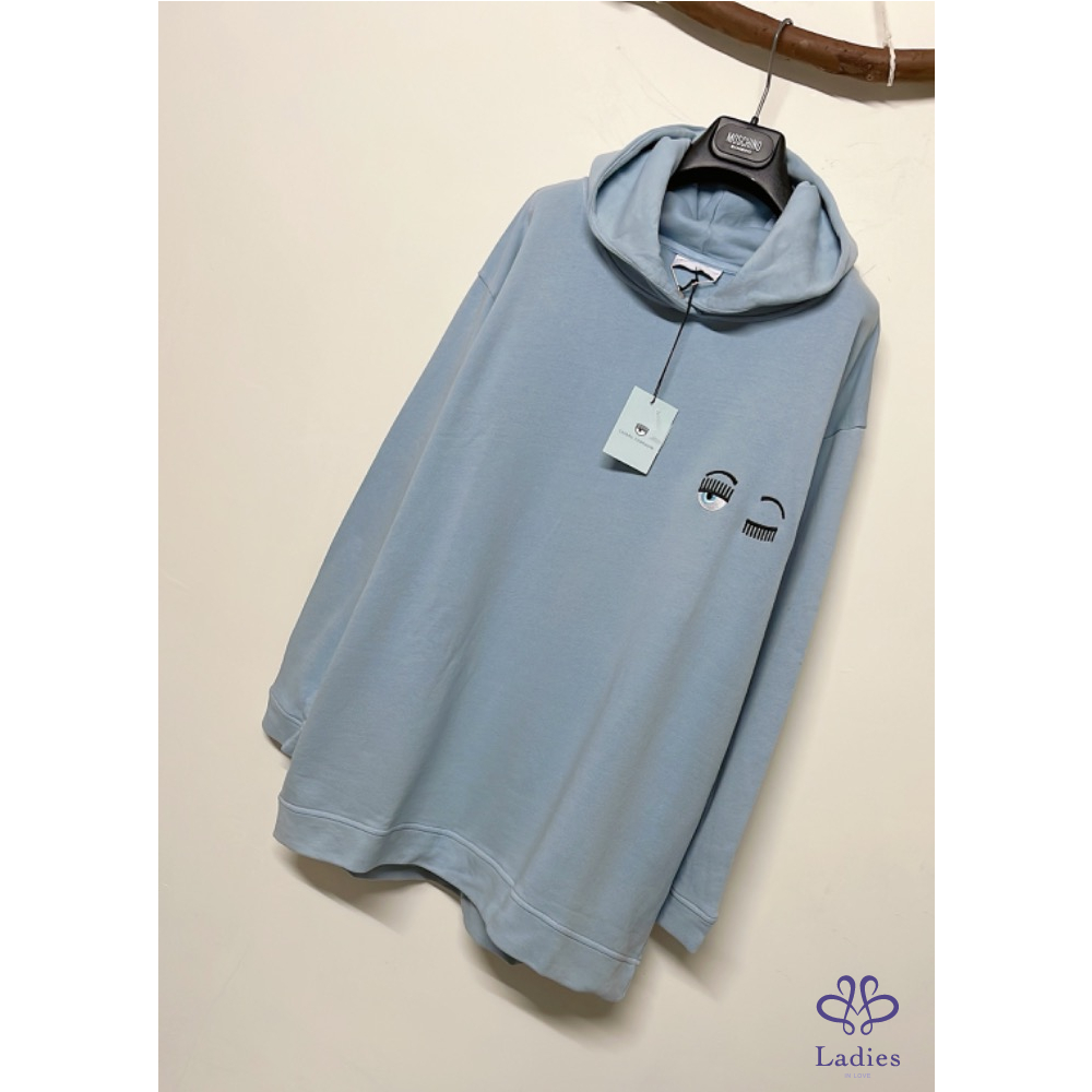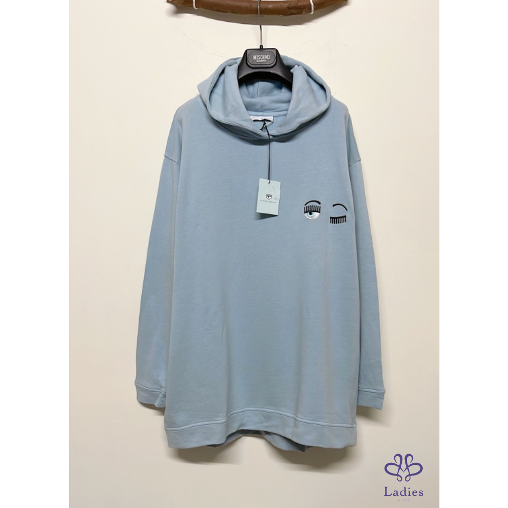 全新Chiara Ferragni 可愛眼睛刺繡馬卡龍藍連帽衛衣