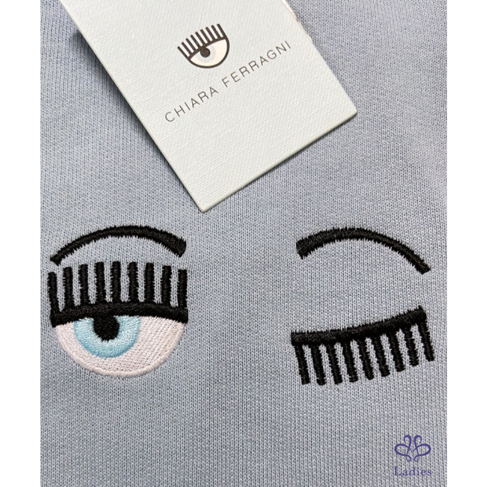 首頁 精品服飾 全新Chiara Ferragni 可愛眼睛刺繡馬卡龍藍連帽衛衣