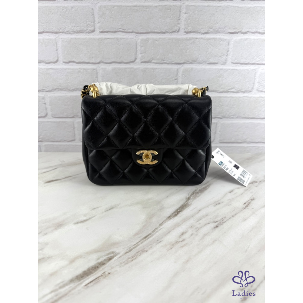 珍珠鏈條可手提,放到後面就是經典方胖,時尚精緻 ,經典永不過時
