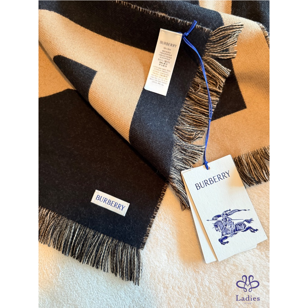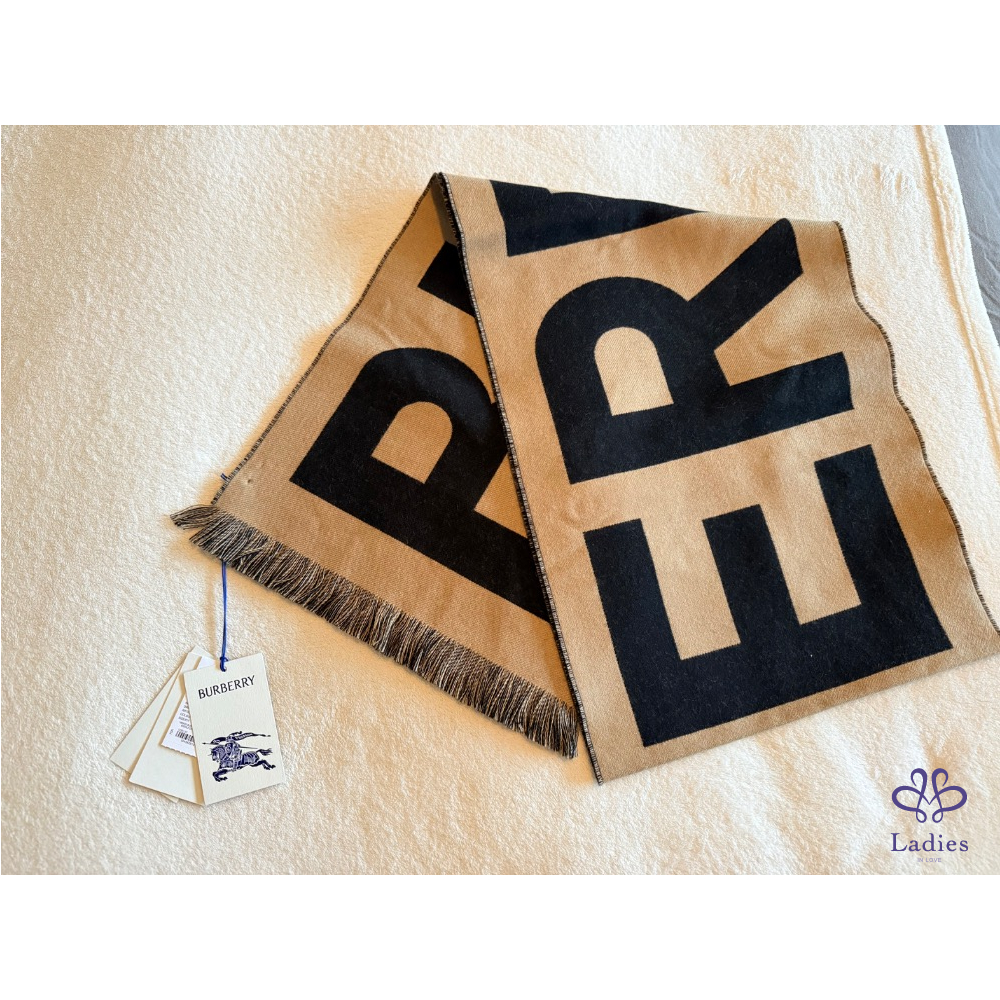 全新超美Burberry雙色字母Logo羊毛圍巾