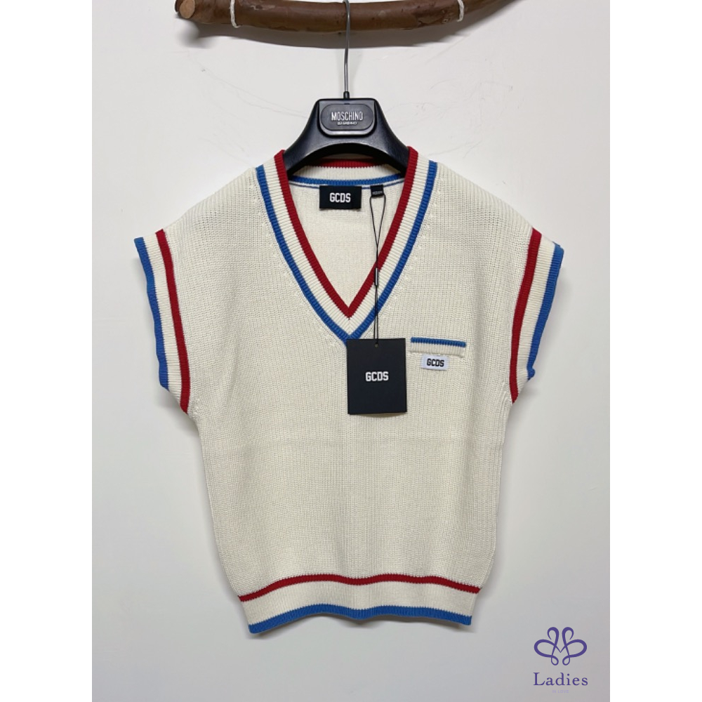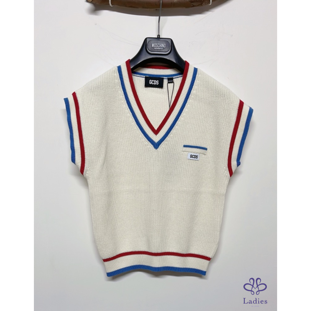 首頁 精品服飾 全新 GCDS 英式學院風象牙色針織背心