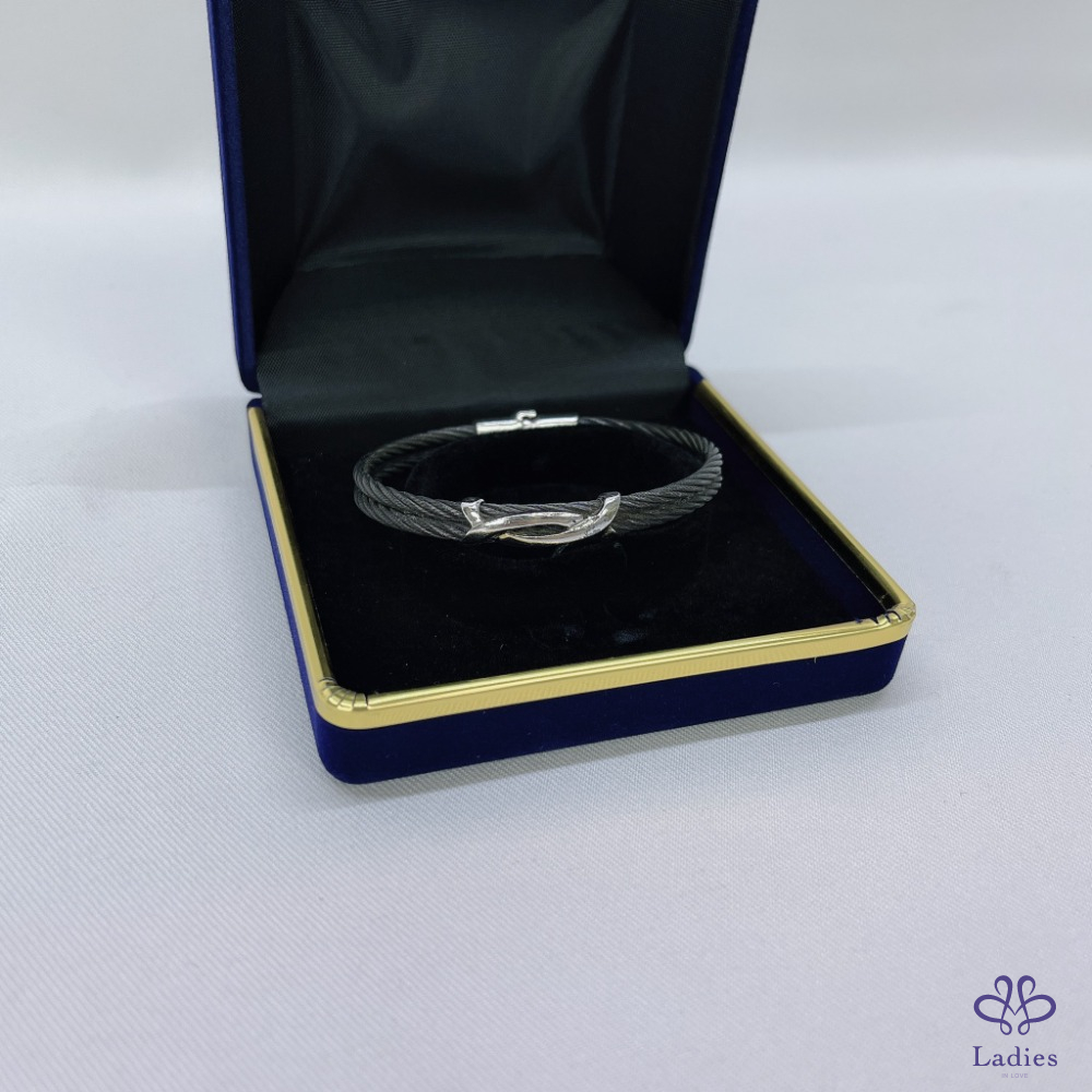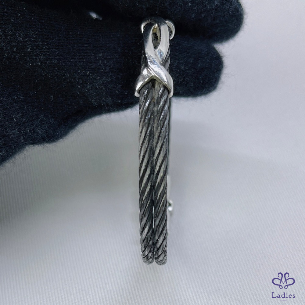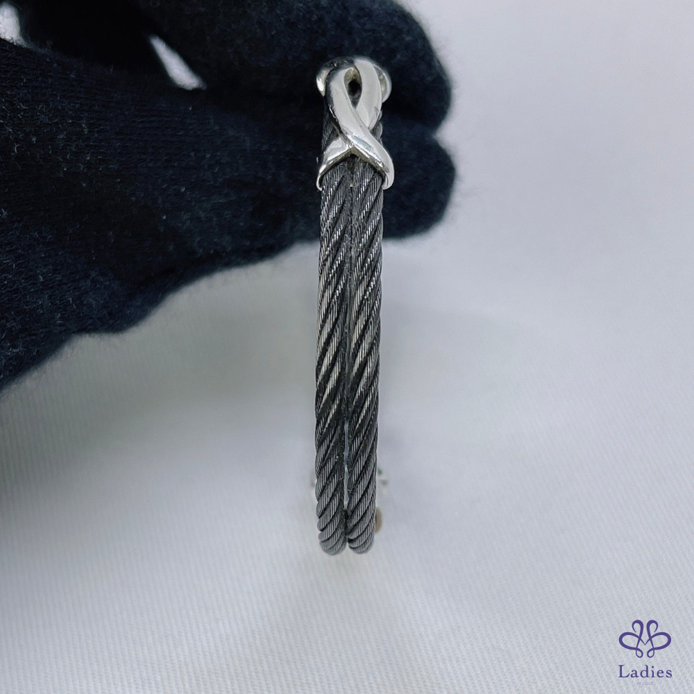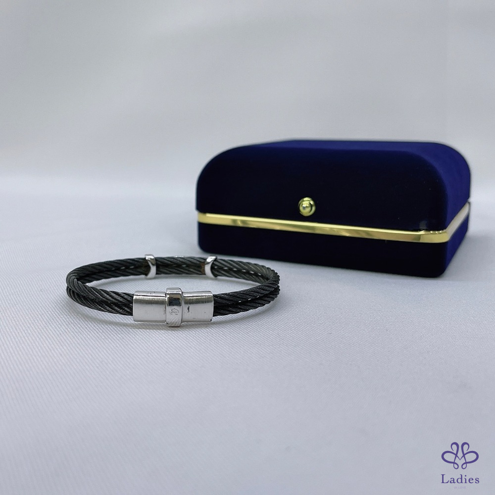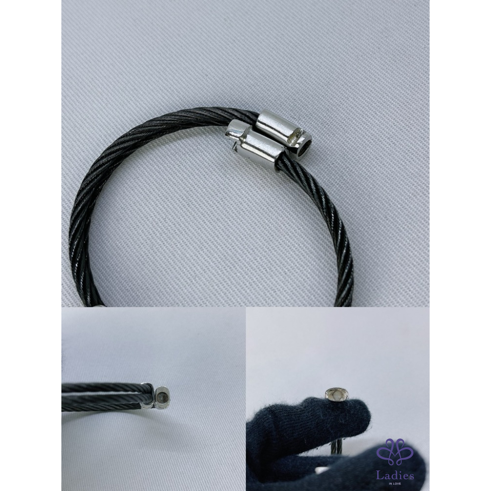 產品信息 【Charriol 夏利豪編織手環】 不銹鋼黑色鋼索搭配銀飾,低調質感,送禮自用兩相宜 扣環處使用磁吸,穿戴方便 款式簡約,男女皆可配戴 整體9成新,二手商品均有正常使用/存放痕跡 尺寸:M (手腕16.5 cm/6.5 inch) 附件:精美盒子 #A112050220