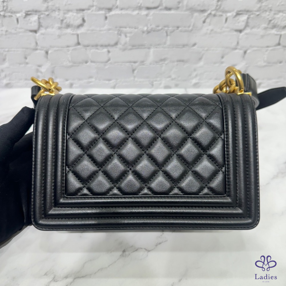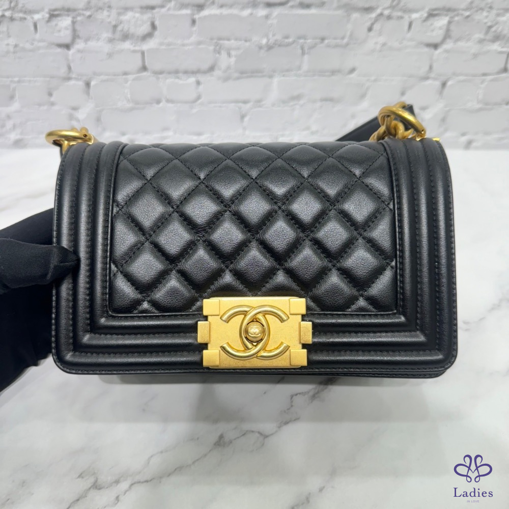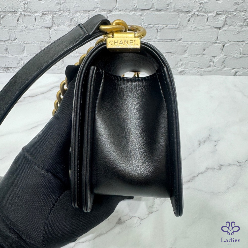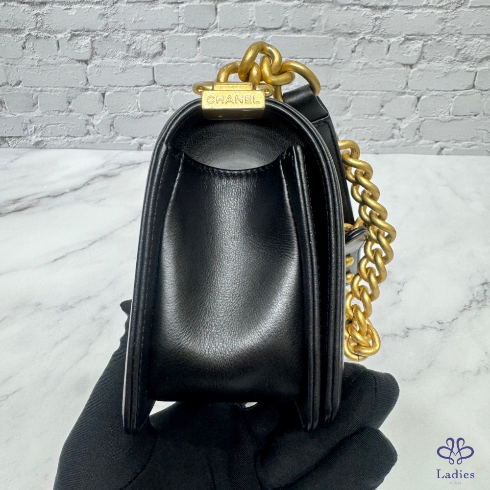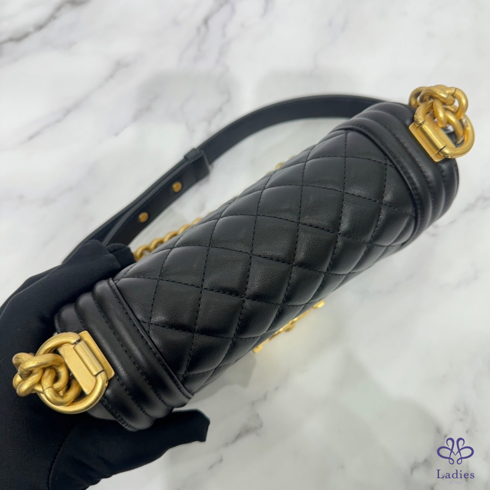 CHANEL 經典BOY20牛皮 黑金 芯片款