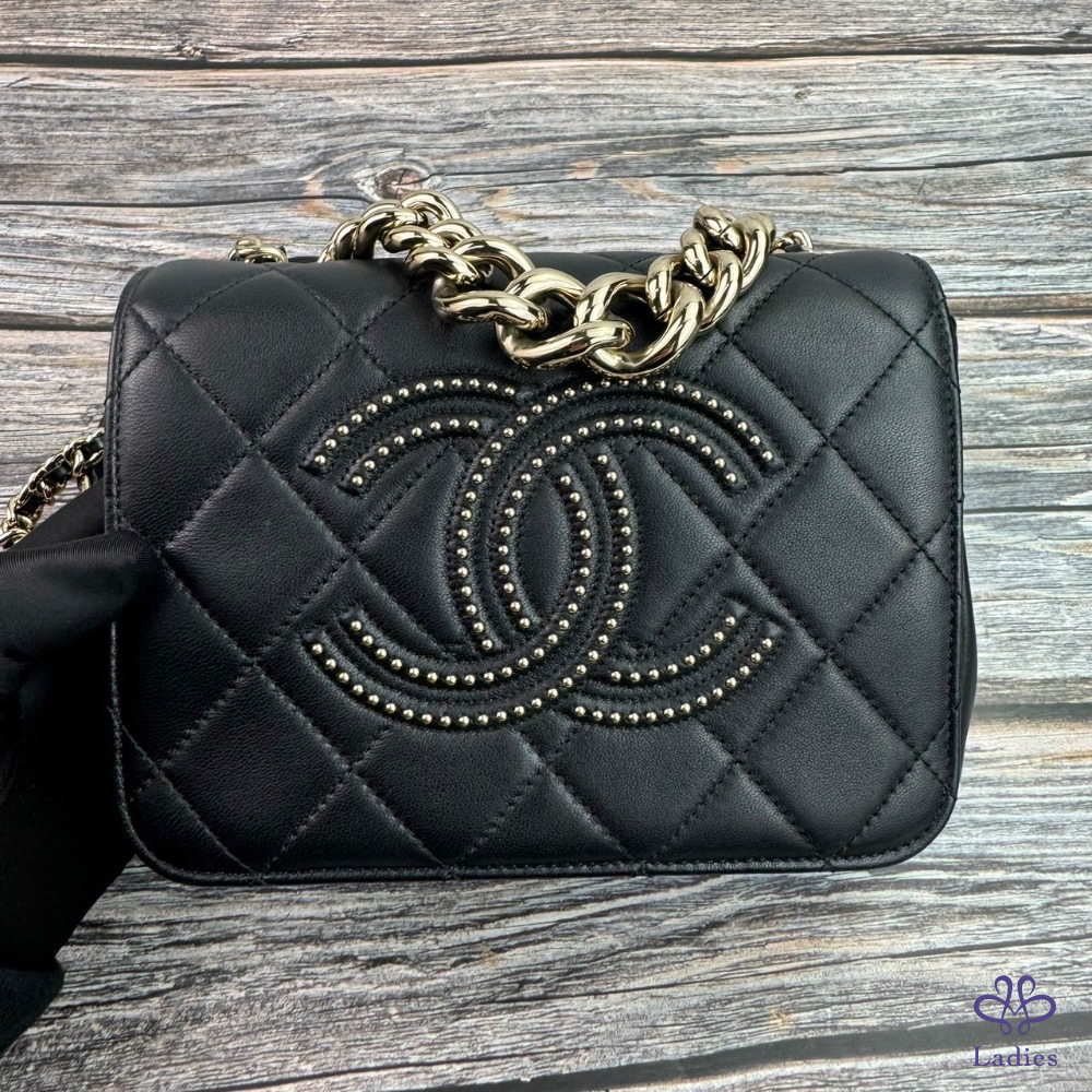 這款鉚釘大logo方胖子,它的皮穿鏈設計,讓你瞬間變身街拍達人,大logo更是增添了幾分奢華感,無論走到哪裡都是焦點 ,實用又時尚!無論是逛街還是旅行