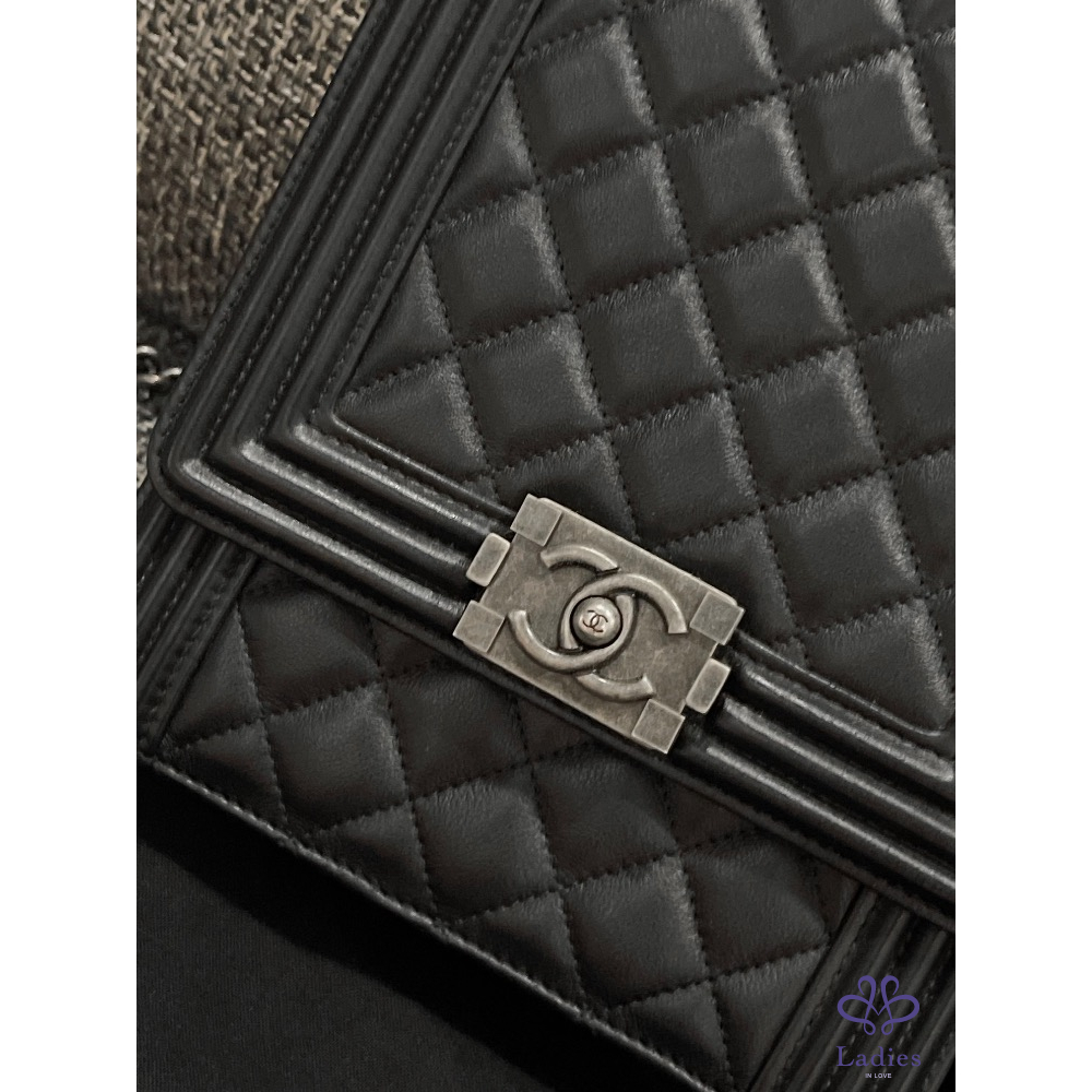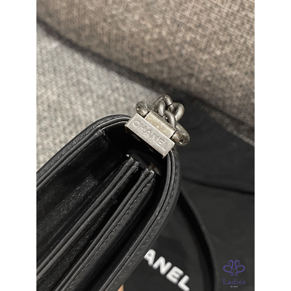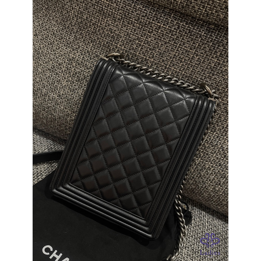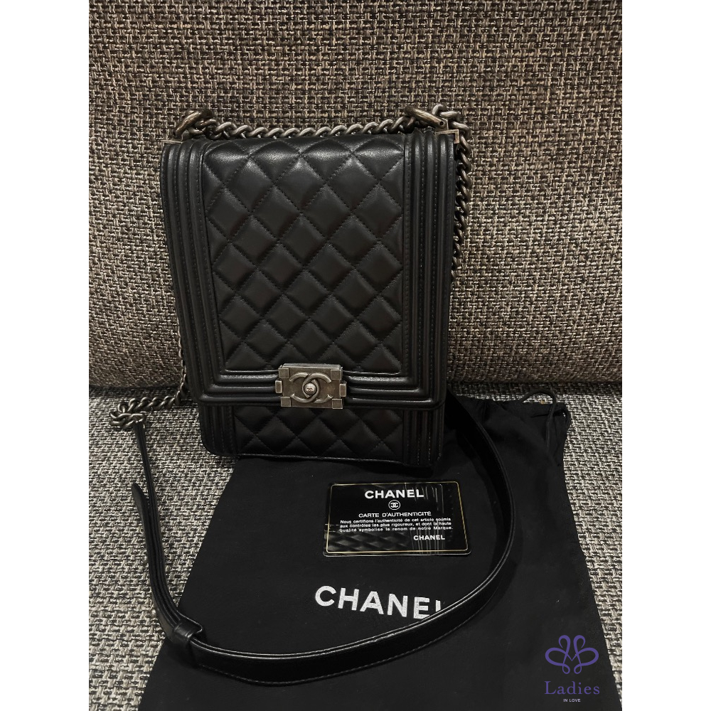售:CHANEL 牛皮黑古銅銀直立式BOY Bag