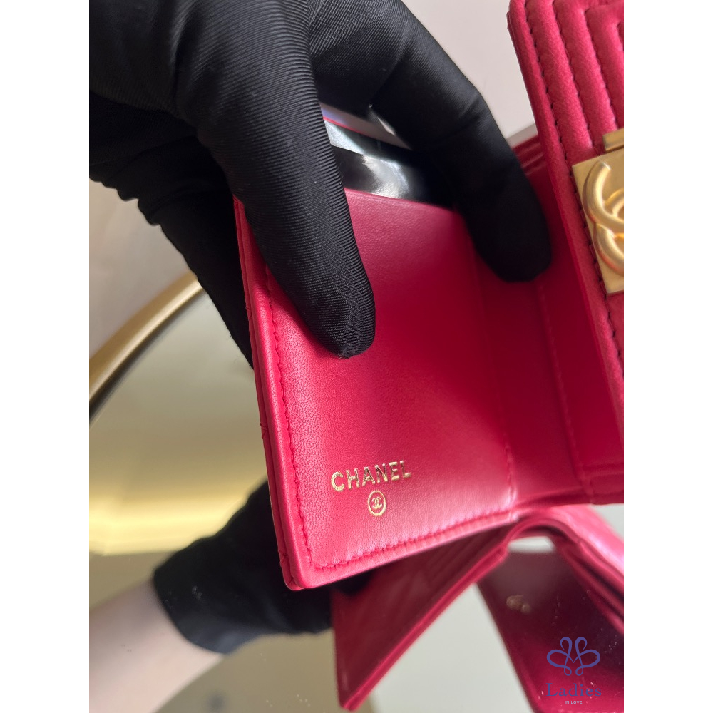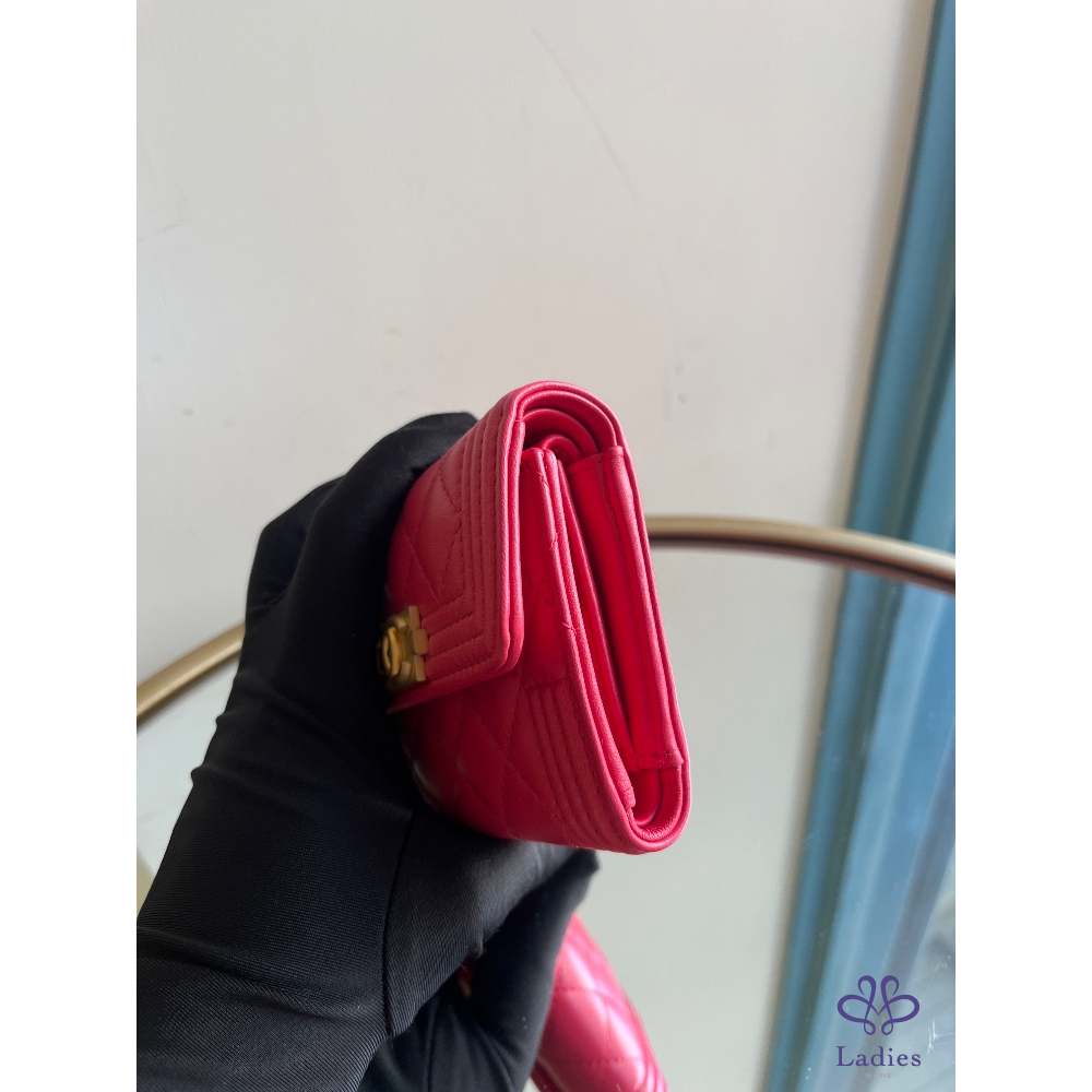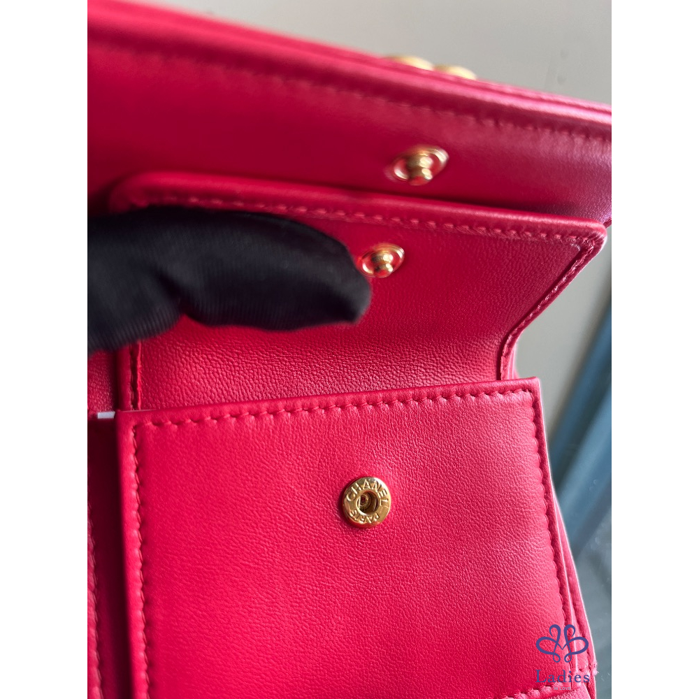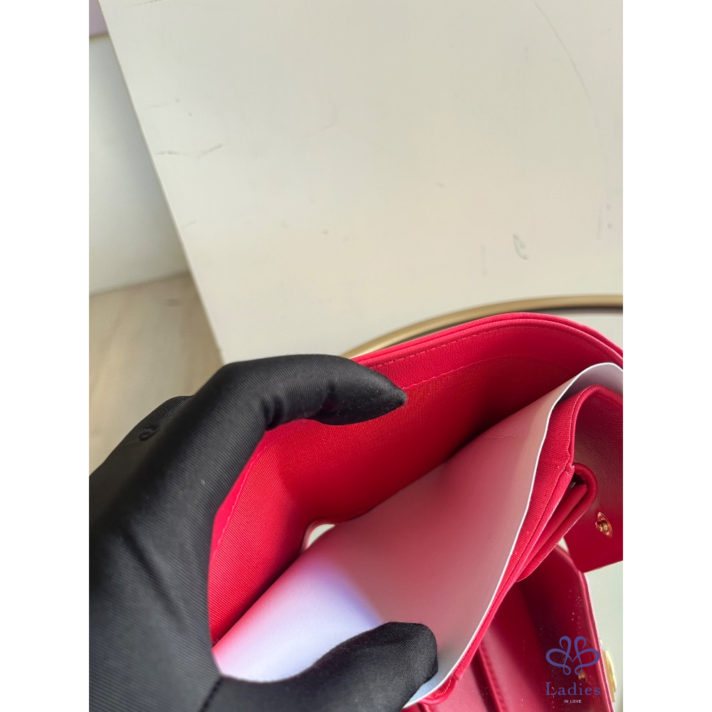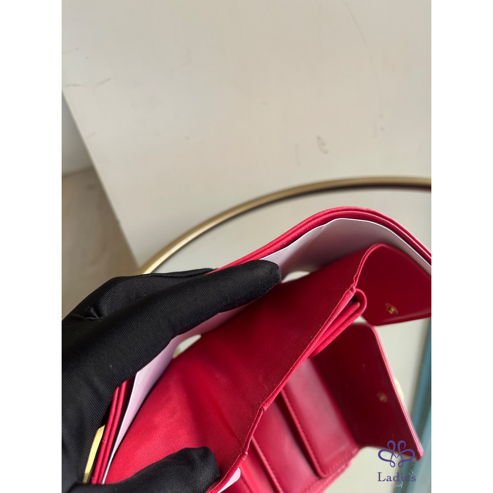 產品信息 招財桃粉色,讓人一眼就愛上~ 仿舊復古金風格的Logo設計,實體超級美! 羊皮質料整體澎潤度超舒適 整體95新的閒置品,,雷標清楚,內裡四角乾淨 尺寸長11 寬2 高10公分 附保卡、防塵、盒子 圖片已盡力拍攝高標請繞道謝謝