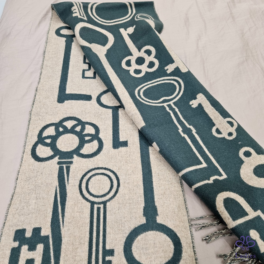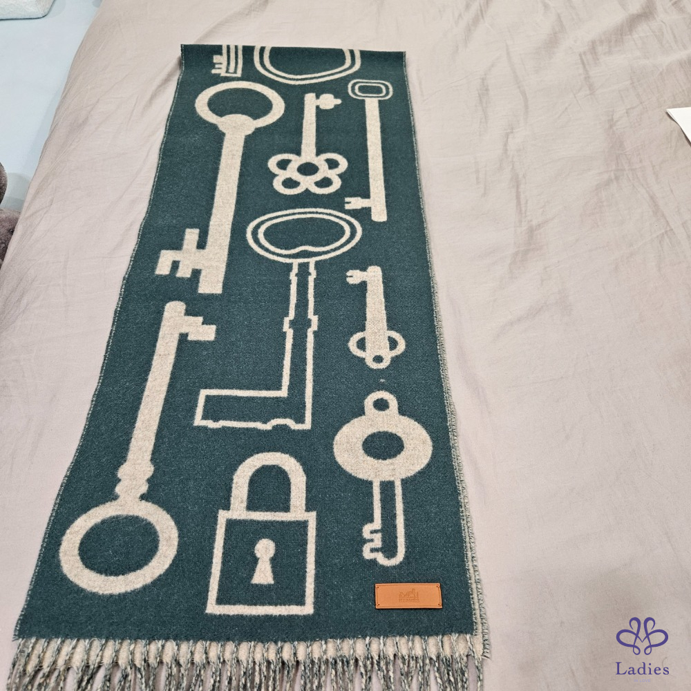 產品信息 售 全新 Hermès Casaque Porte-Clefs圍巾 (綠色) 售價 : 14900元 (台灣官網參考售價17900元) 入手價:代購購入,入手價近16000元 使用狀況:未使用過,實際狀況如照片。 材質: 100% cashmere 尺寸:30 x 160 cm 附件:紙盒