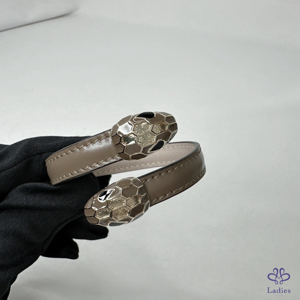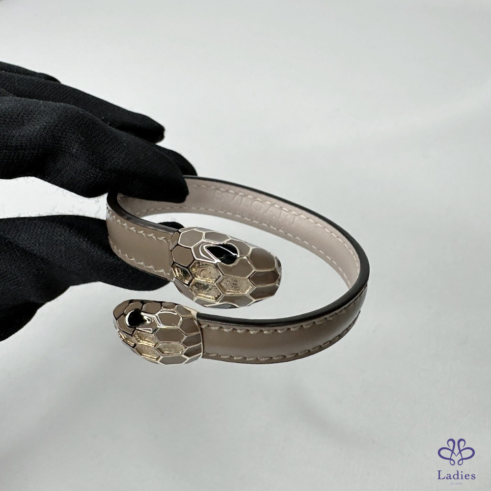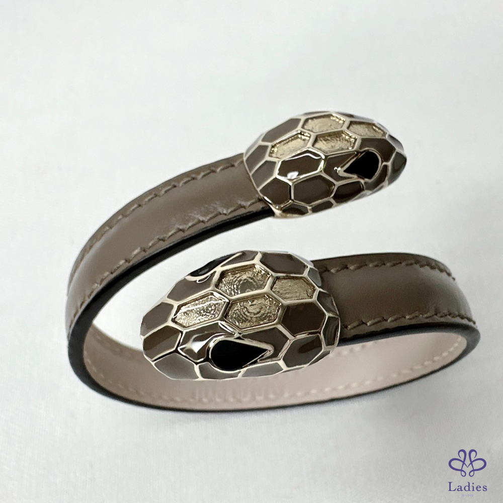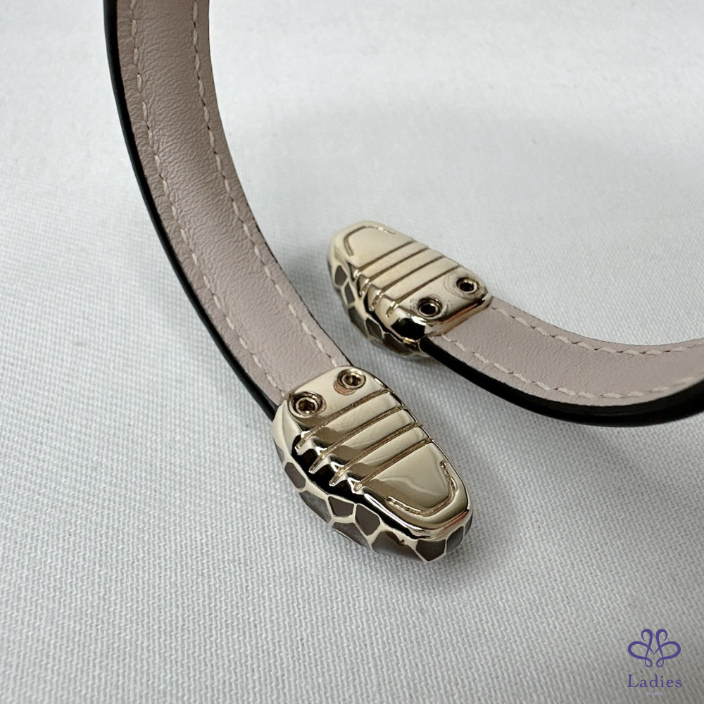 產品信息 【BVLGARI Serpenti Forever皮革手環】 #24年5月購入 #專櫃價約2萬5 Serpenti Forever軟質手環,採用冷棕色小牛皮 迷人的淡金色黃銅對向蛇頭元素 飾以冷棕色琺瑯和淡金色黃銅蛇鱗,蛇眼飾以黑色琺瑯 整體品項約9成7新,二手商品均有正常使用/存放痕跡 型號:293854 尺寸:腕圍約15cm 附件:原廠盒、保證卡 #A113110404