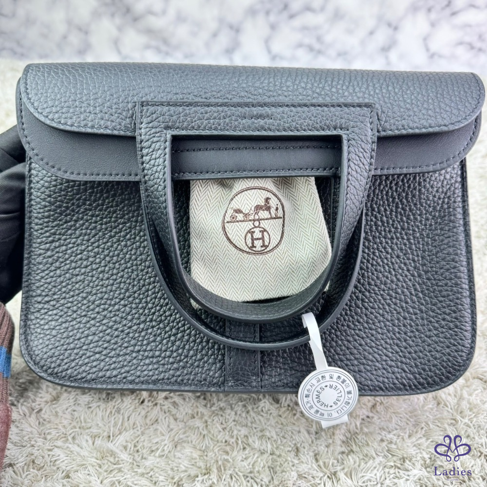 ???????? Hermes Halzan 25 Bag 黑色 銀釦 B刻