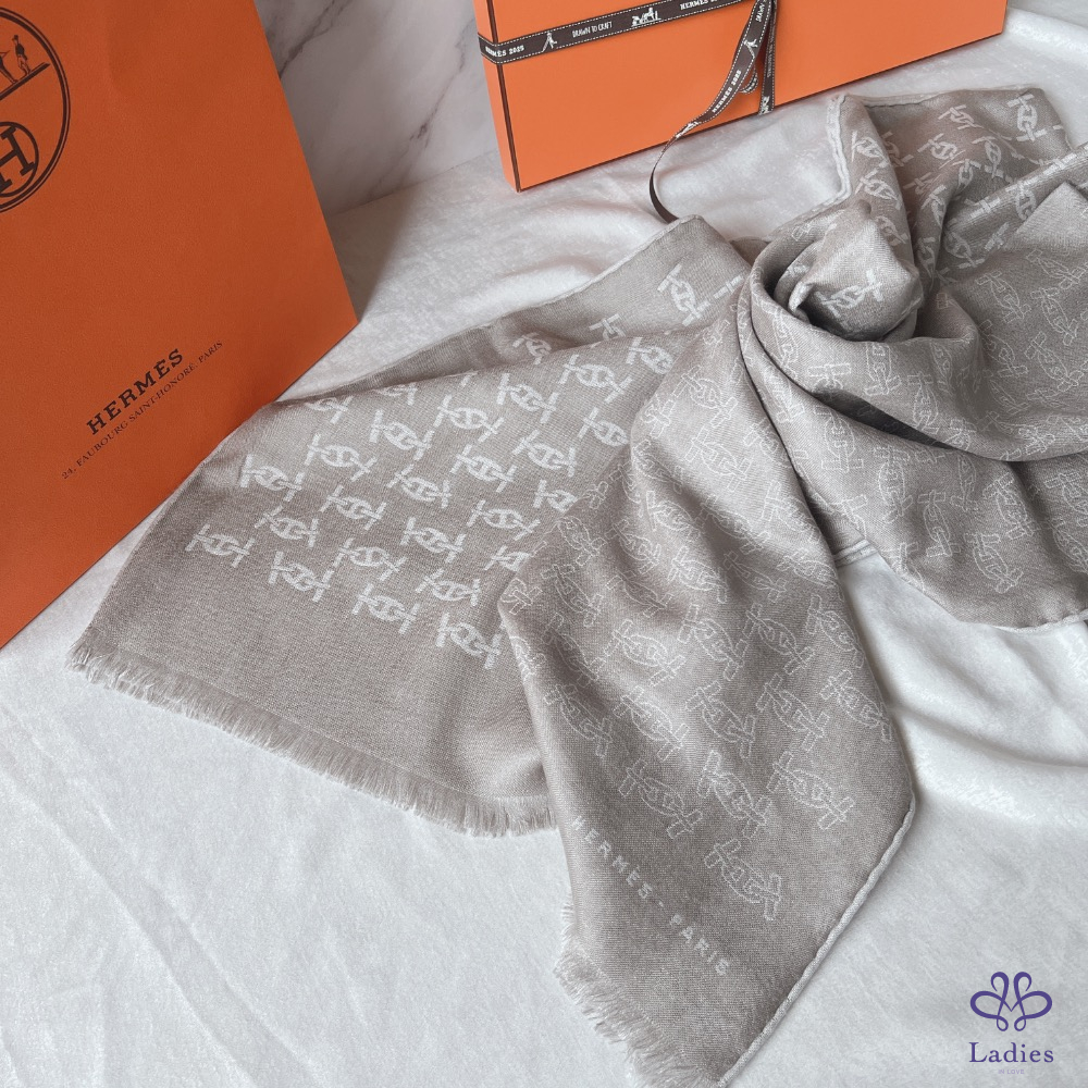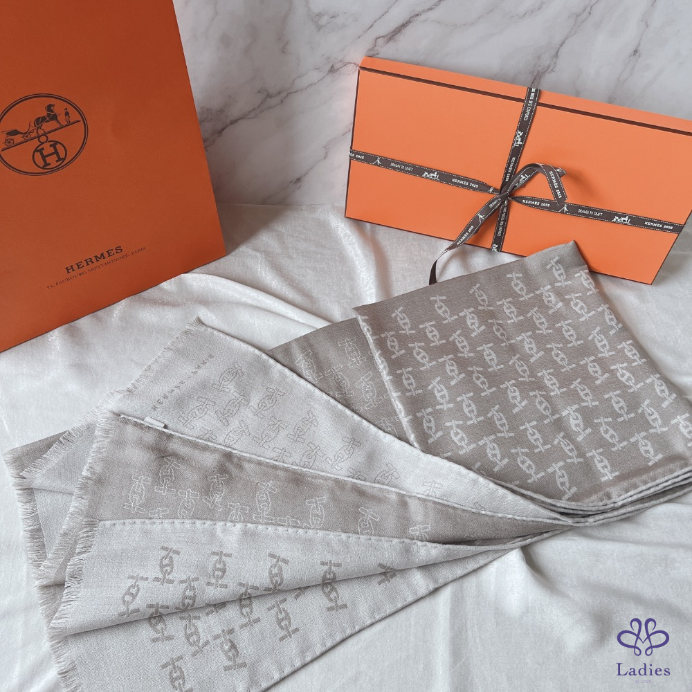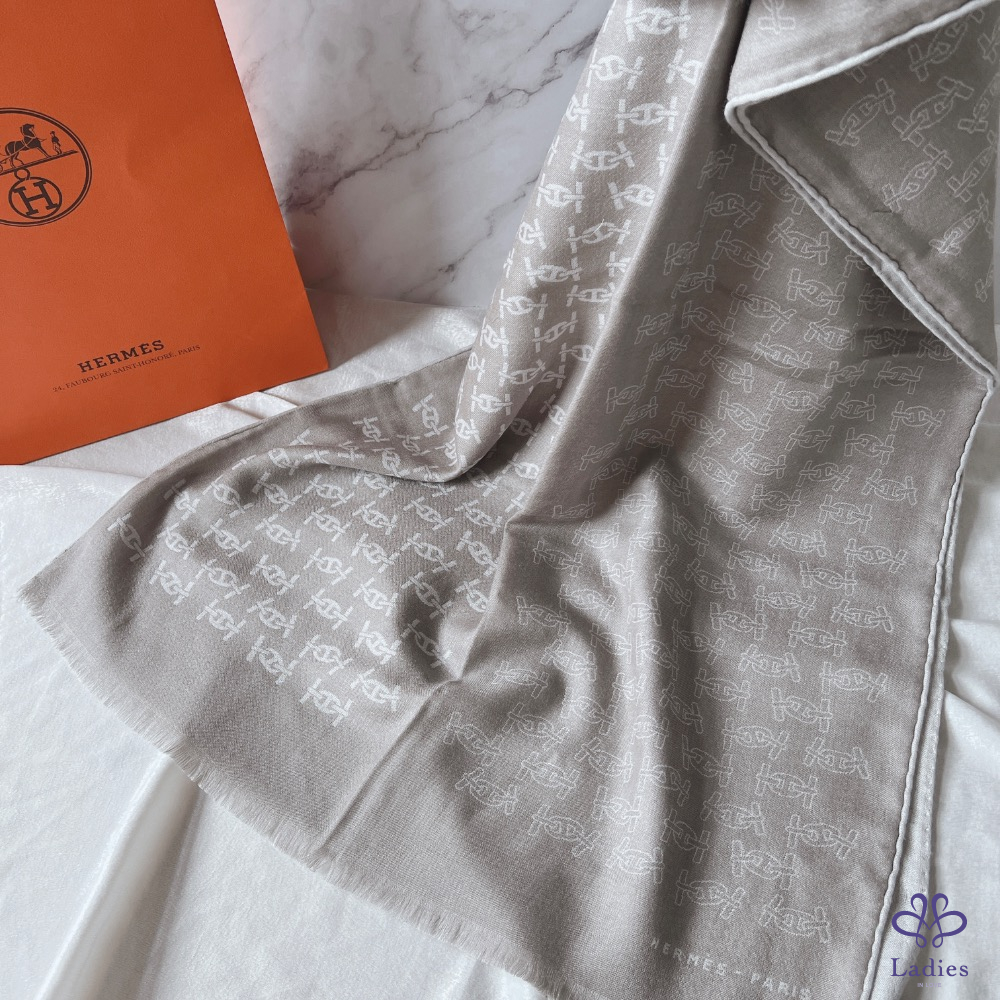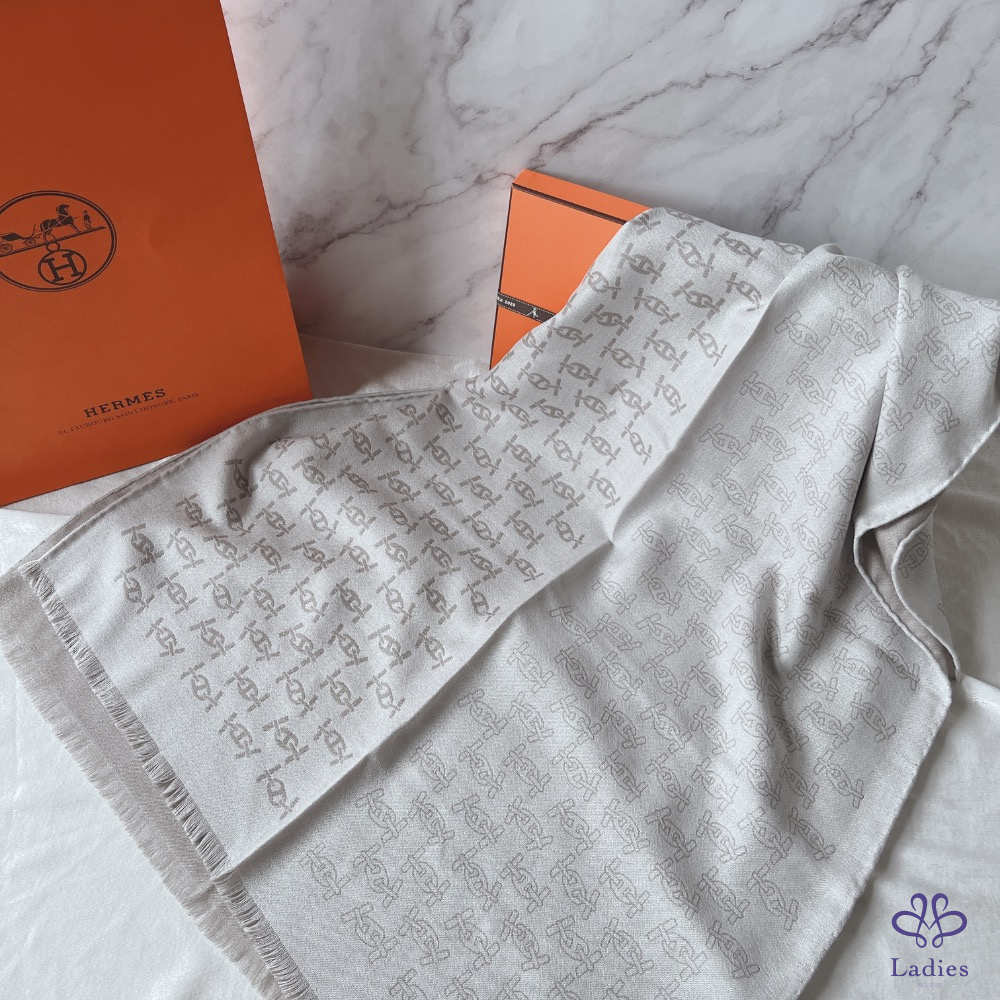 愛馬仕Hermes 皇家馬銜鏈結 雙面披肩 布蕾米色|西班牙購證x全配