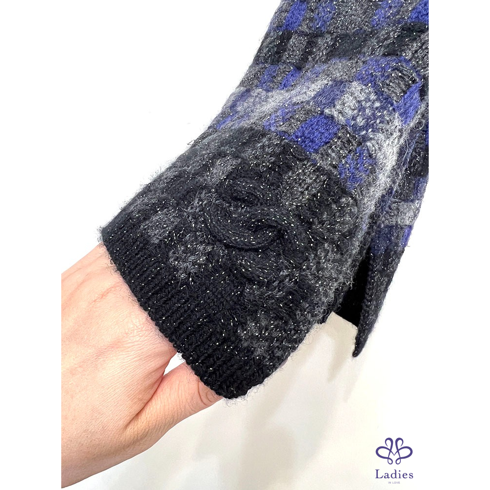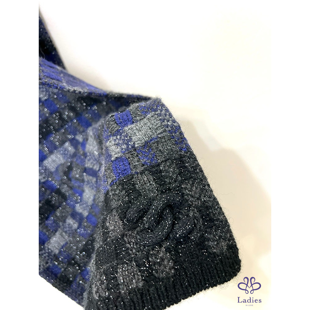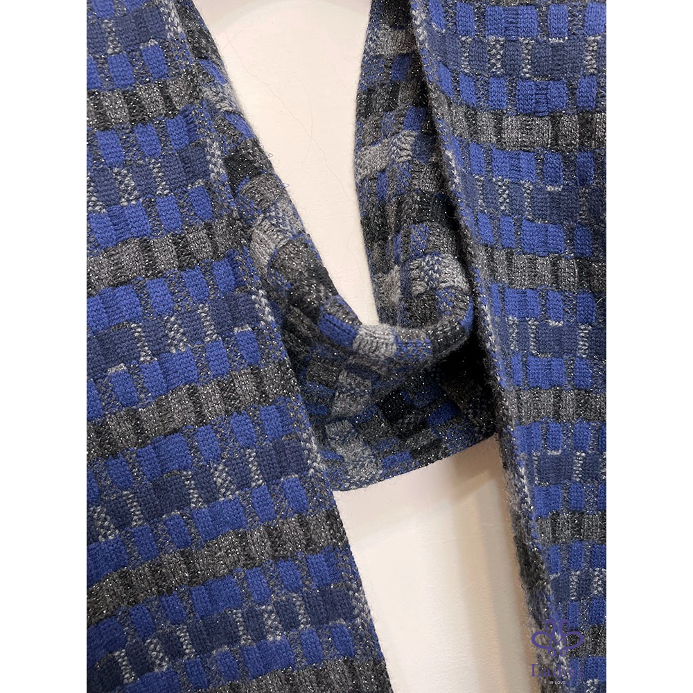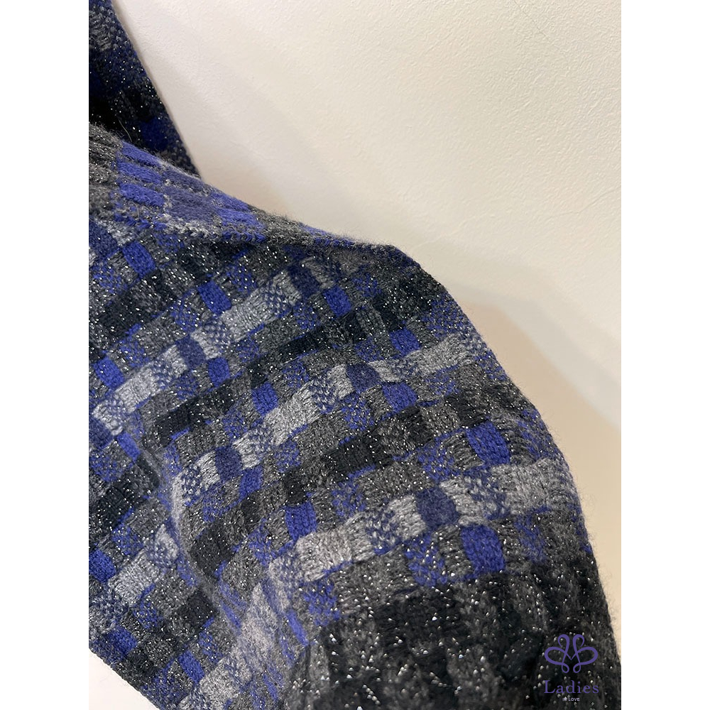 深寶藍 x 各種灰 x 黑拼接成格子狀毛呢感, 實搭好看又可愛