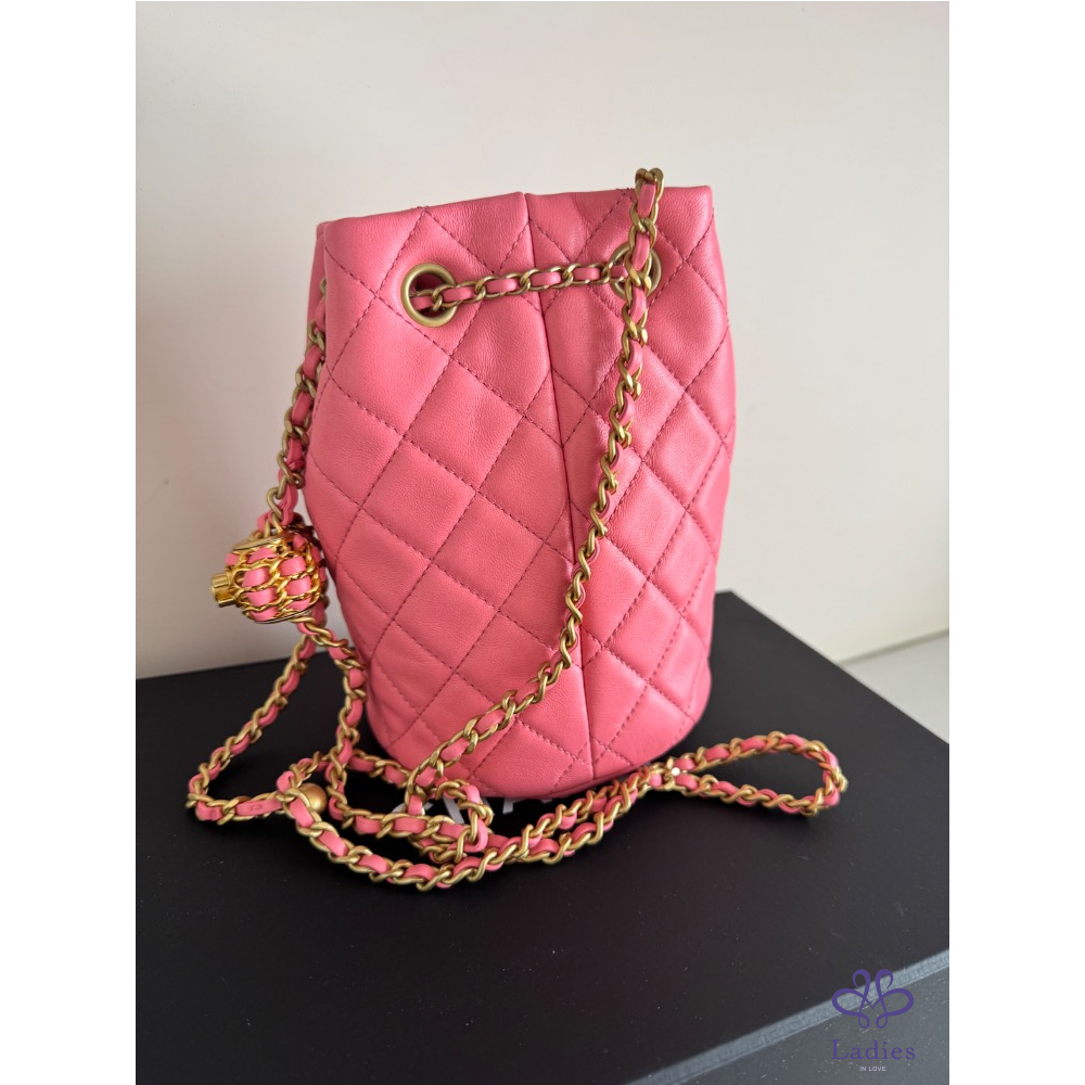 商品名稱:CHANEL 粉色金球水桶包