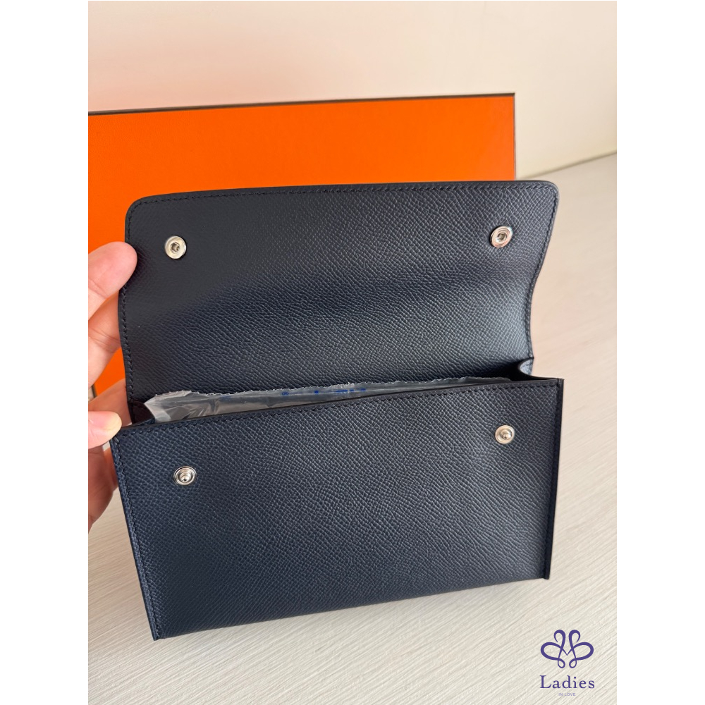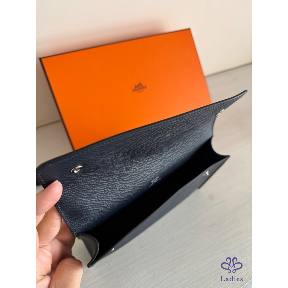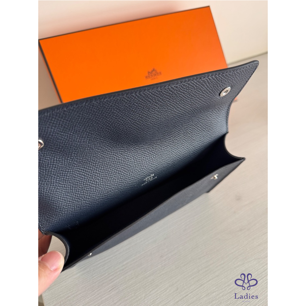 商品描述:銀釦、Epsom皮、深靛藍 Bleu Indigo