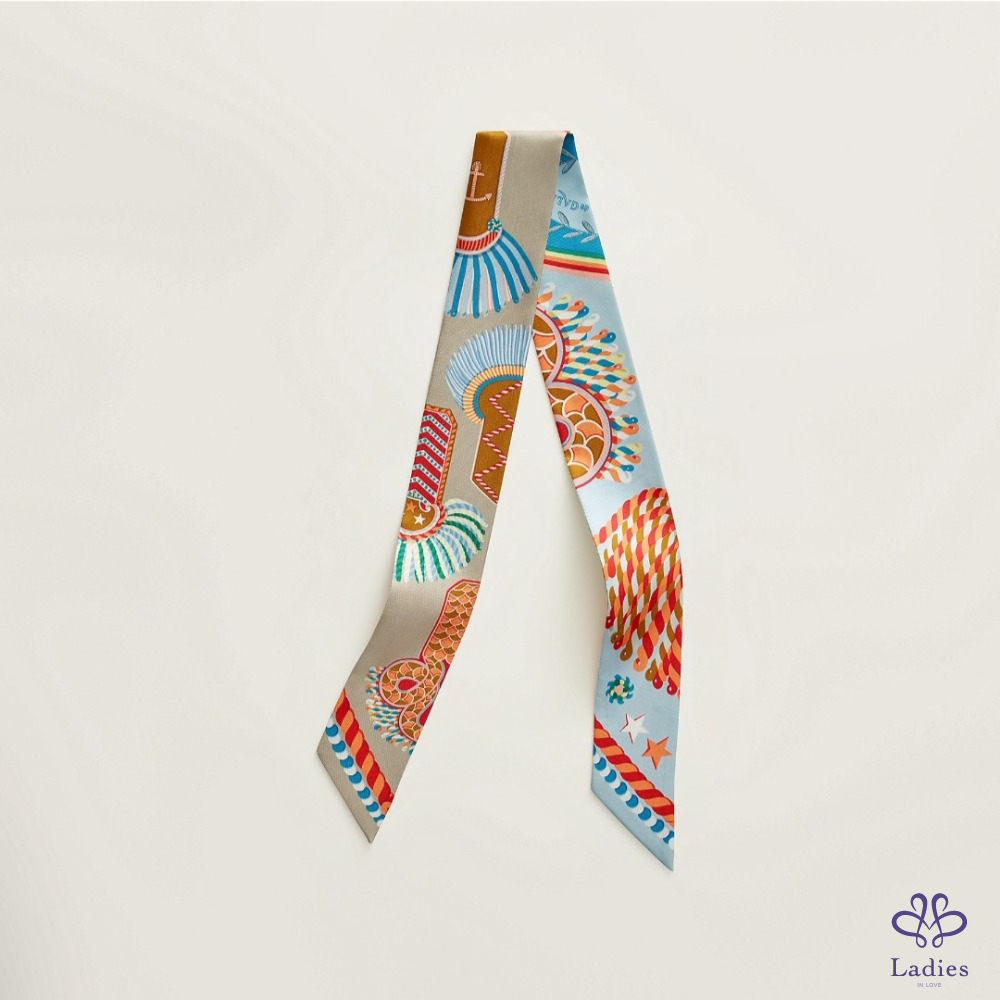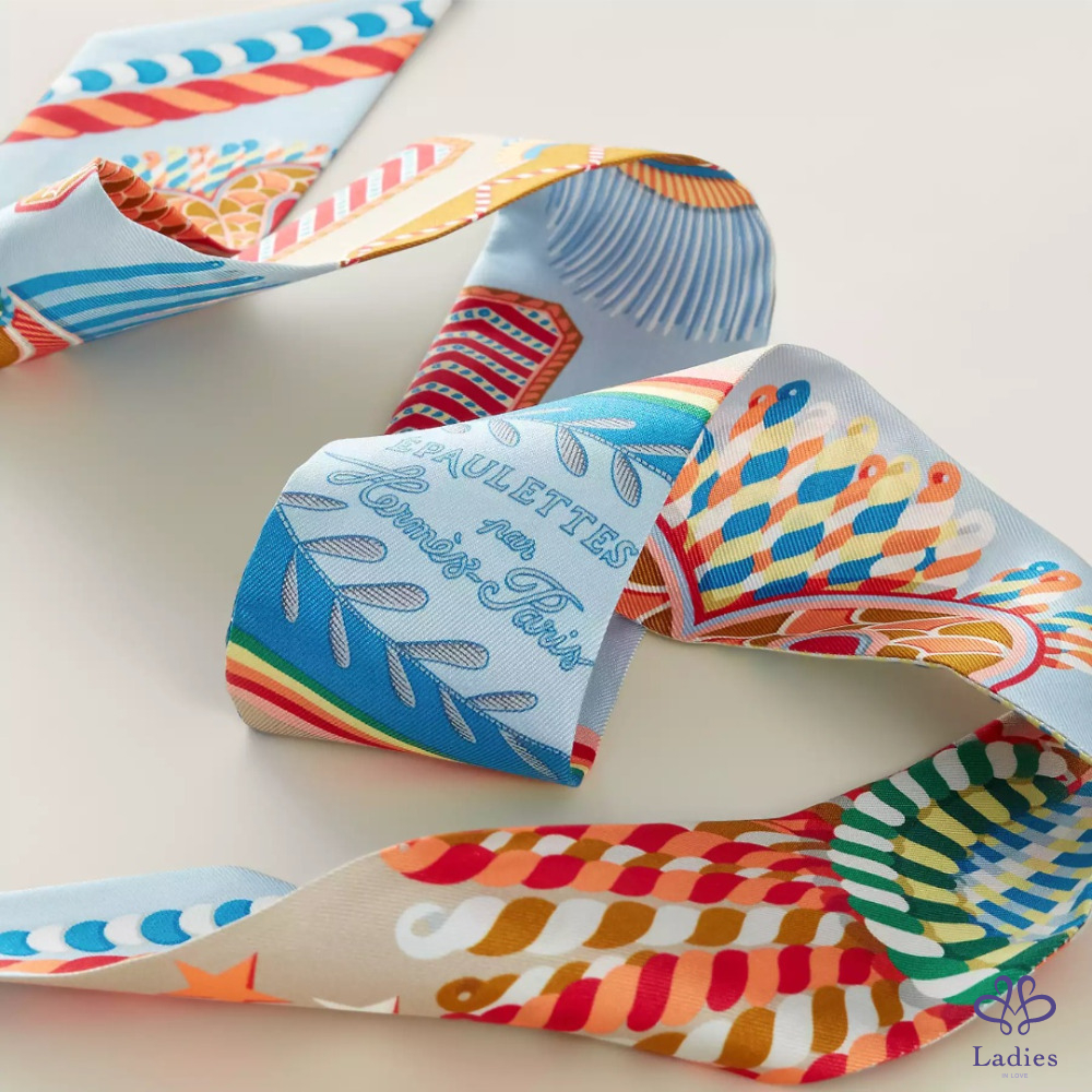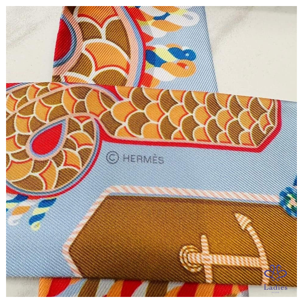 售 Hermes Epaulettes de Gala Twilly x bleu ciel/rouge/jaune 愛馬仕華麗肩章 天空藍/紅/黃 綁帶長絲巾