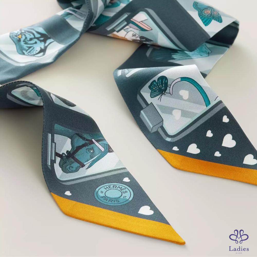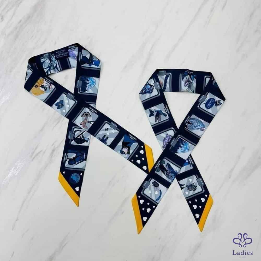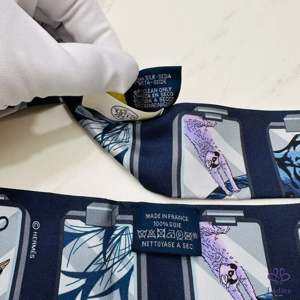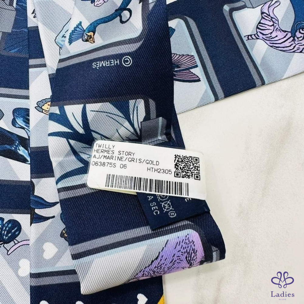 售 Hermes Hermès Story Twilly x marine/gris/gold 愛馬仕的動態分享 海軍藍/灰/金 綁帶長絲巾
