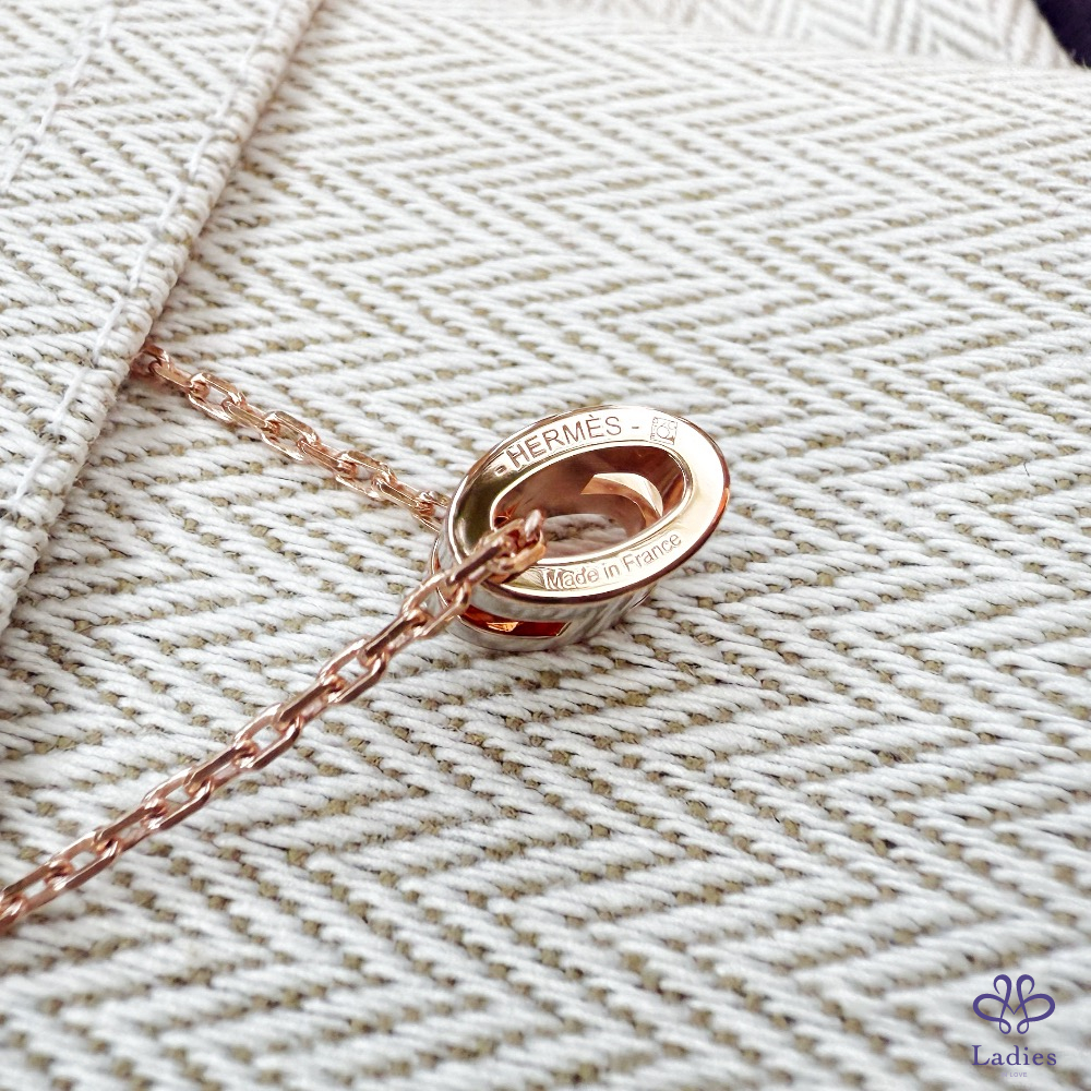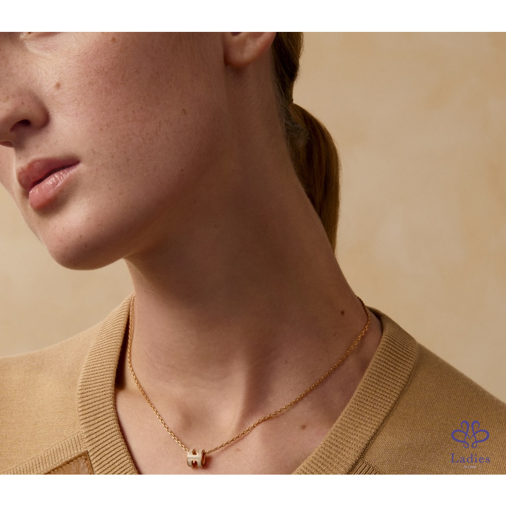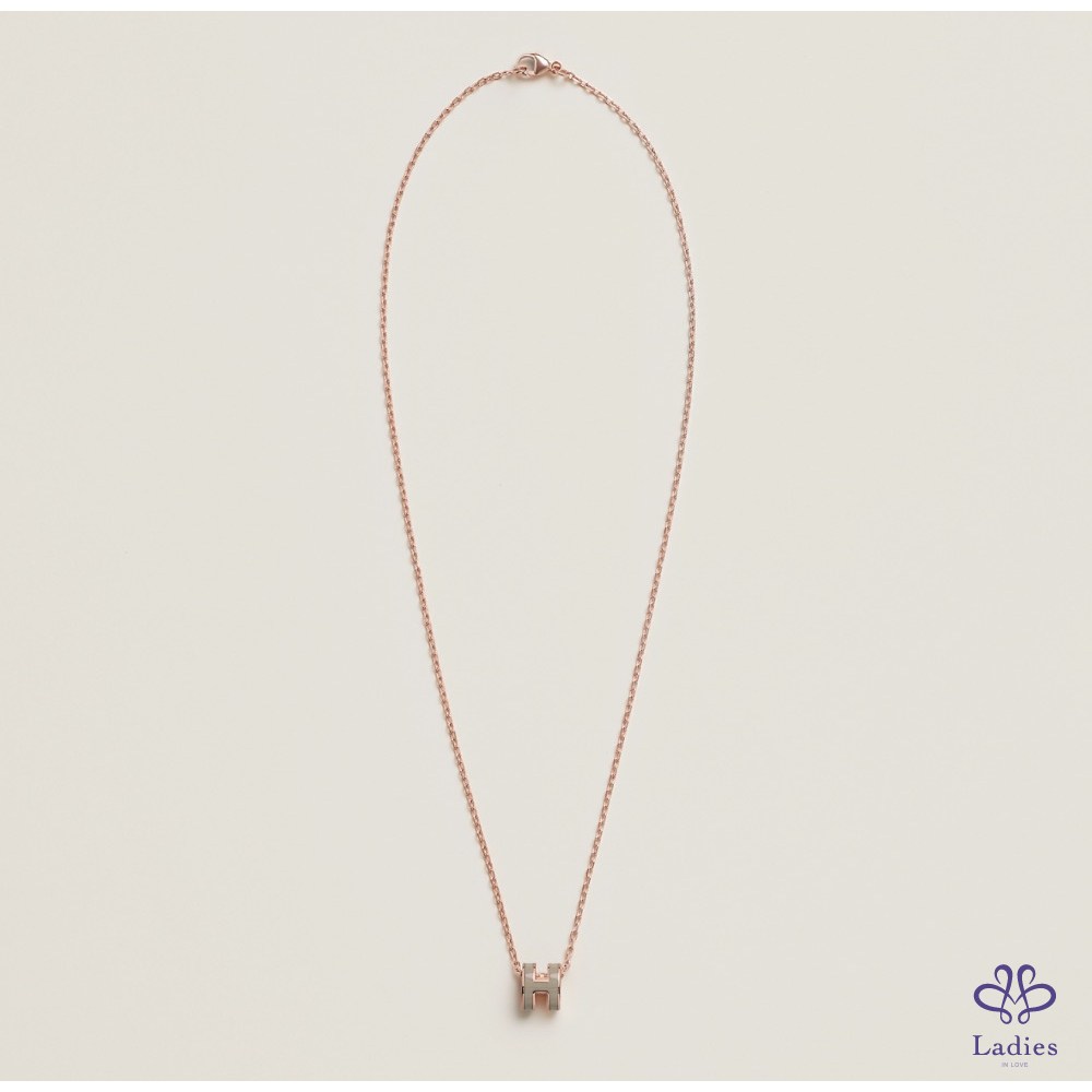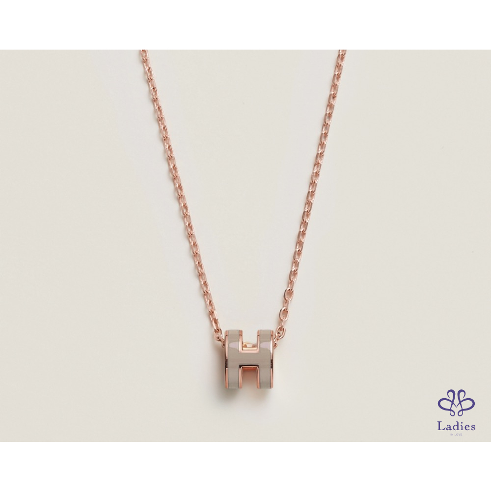 Hermes 愛馬仕 經典 琺瑯 橢圓型 mini pop H 奶茶色配玫瑰金鍊 項鍊 全新 ✨