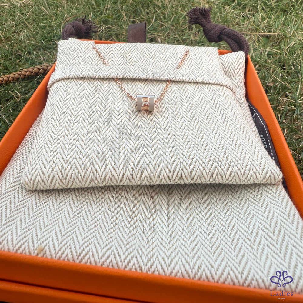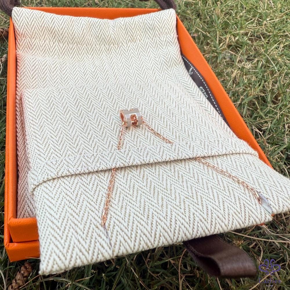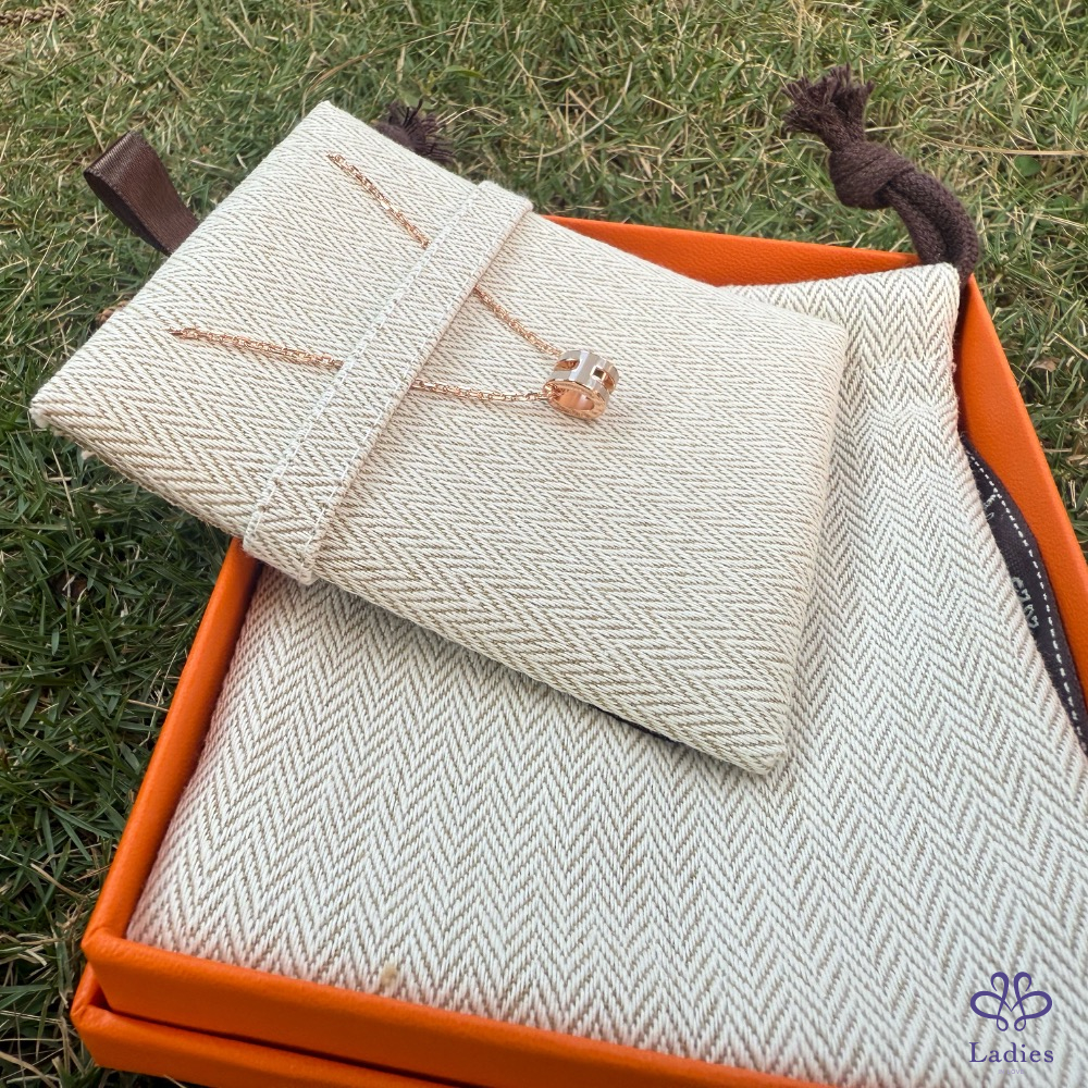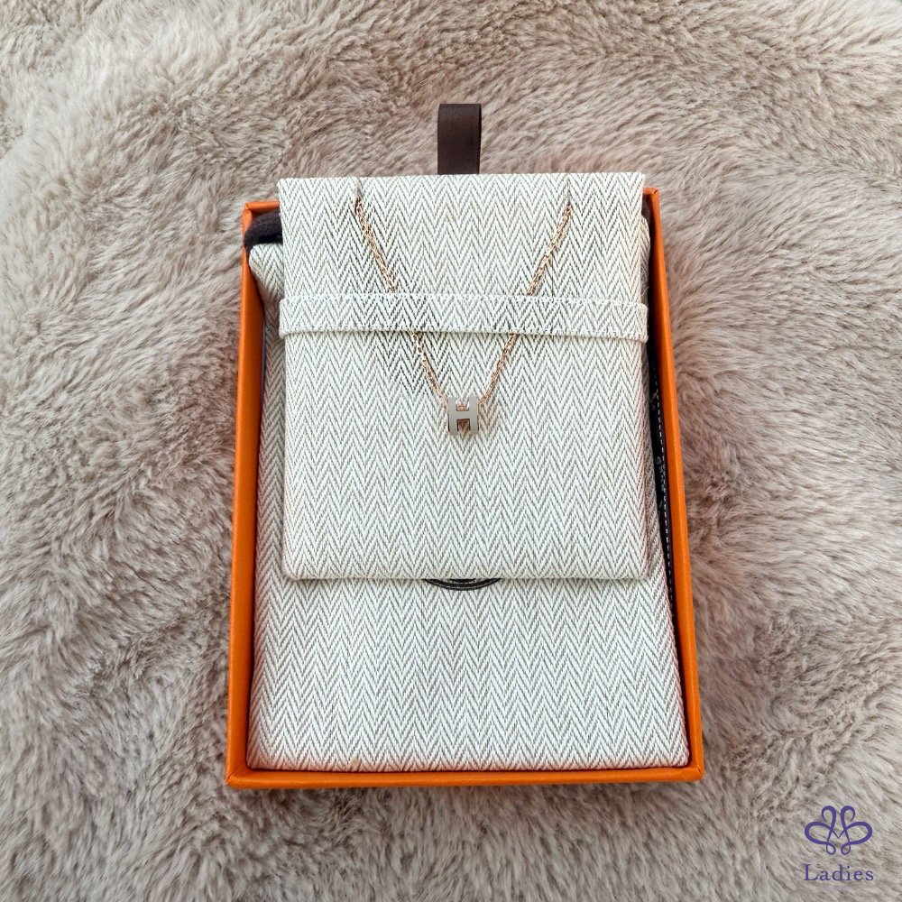 Hermes 愛馬仕 經典 琺瑯 橢圓型 mini pop H 奶茶色配玫瑰金鍊 項鍊 全新 ✨