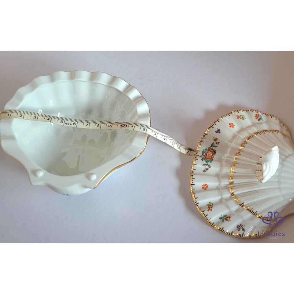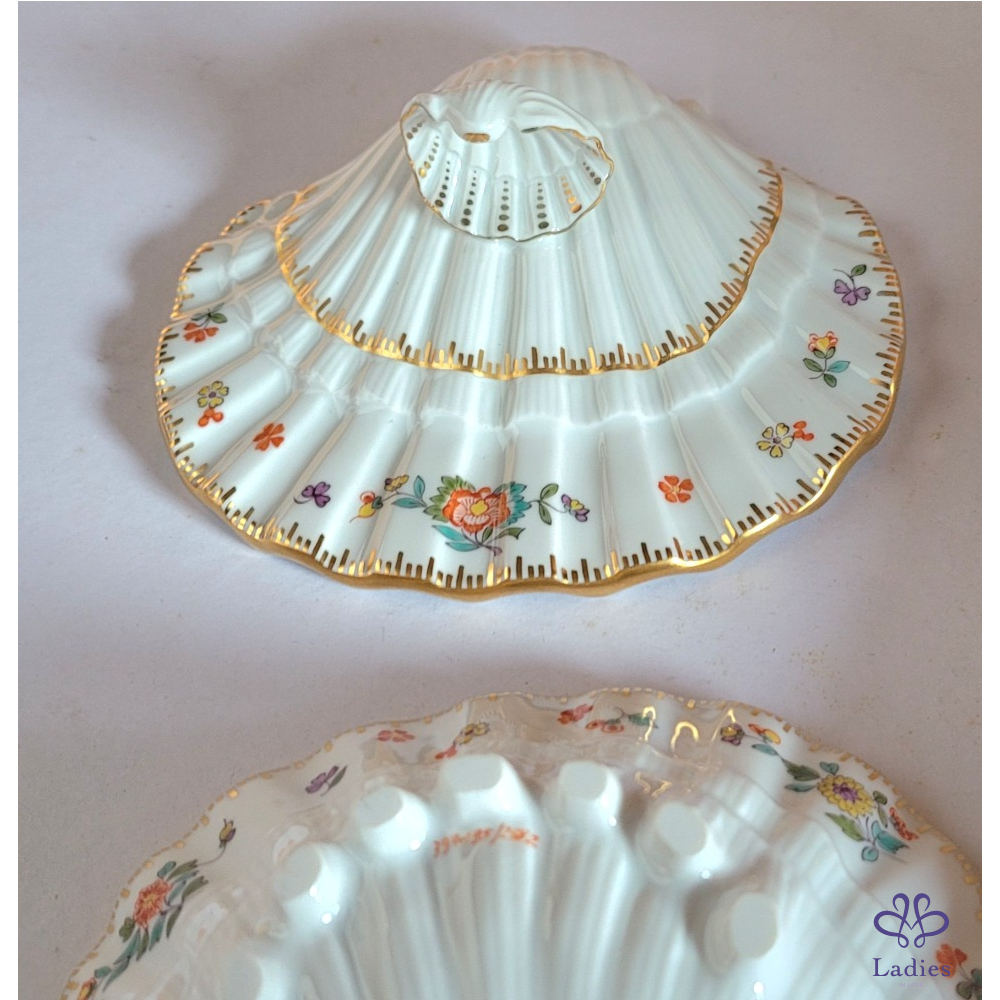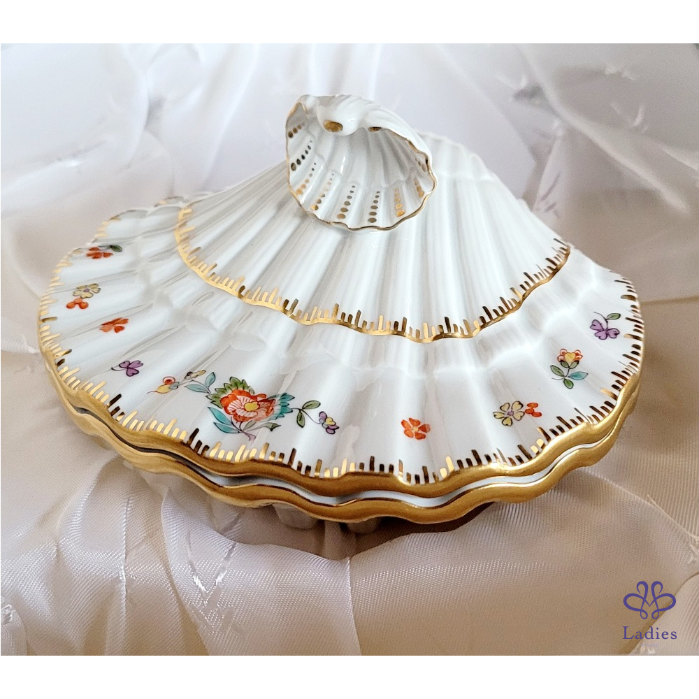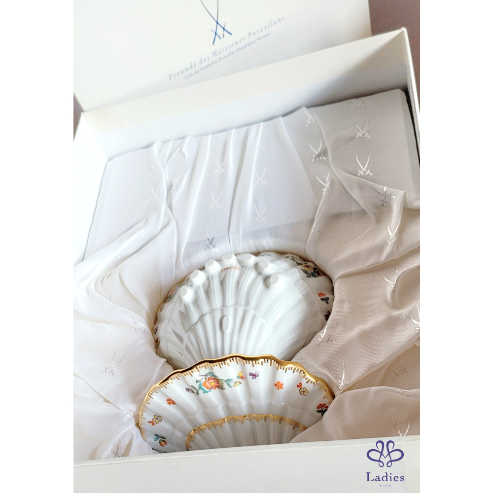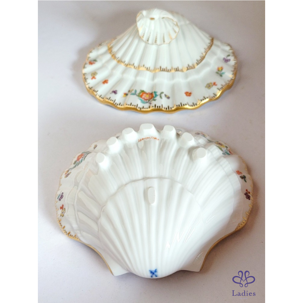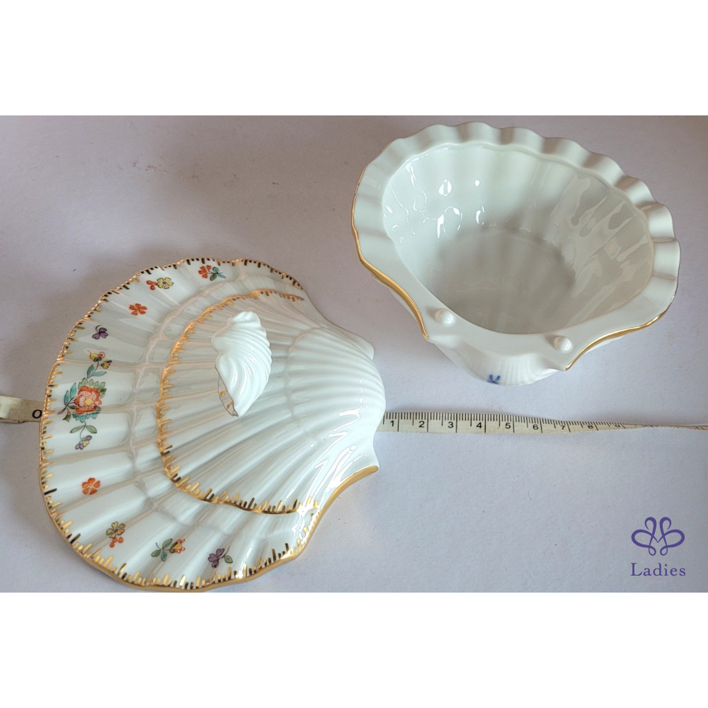 ~歐洲第一名瓷 Meissen 全新 MEISSEN 全新 超級稀有K金邊限量 貝殼造型手繪瓷器盤/珠寶盒
