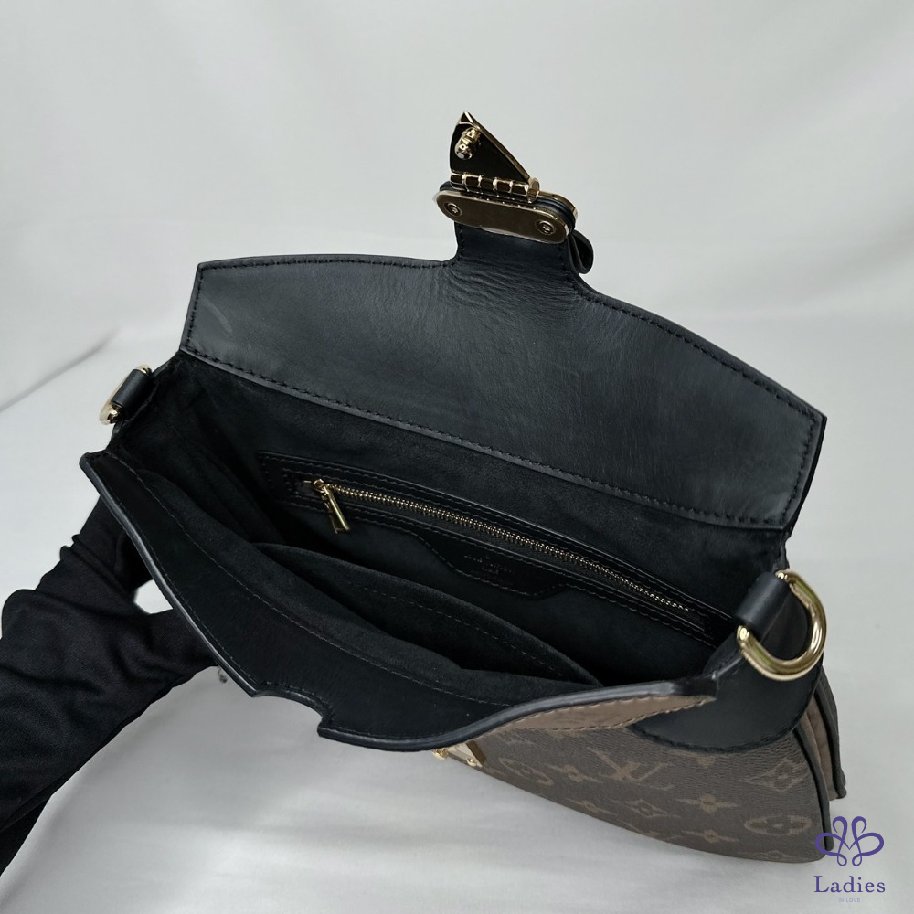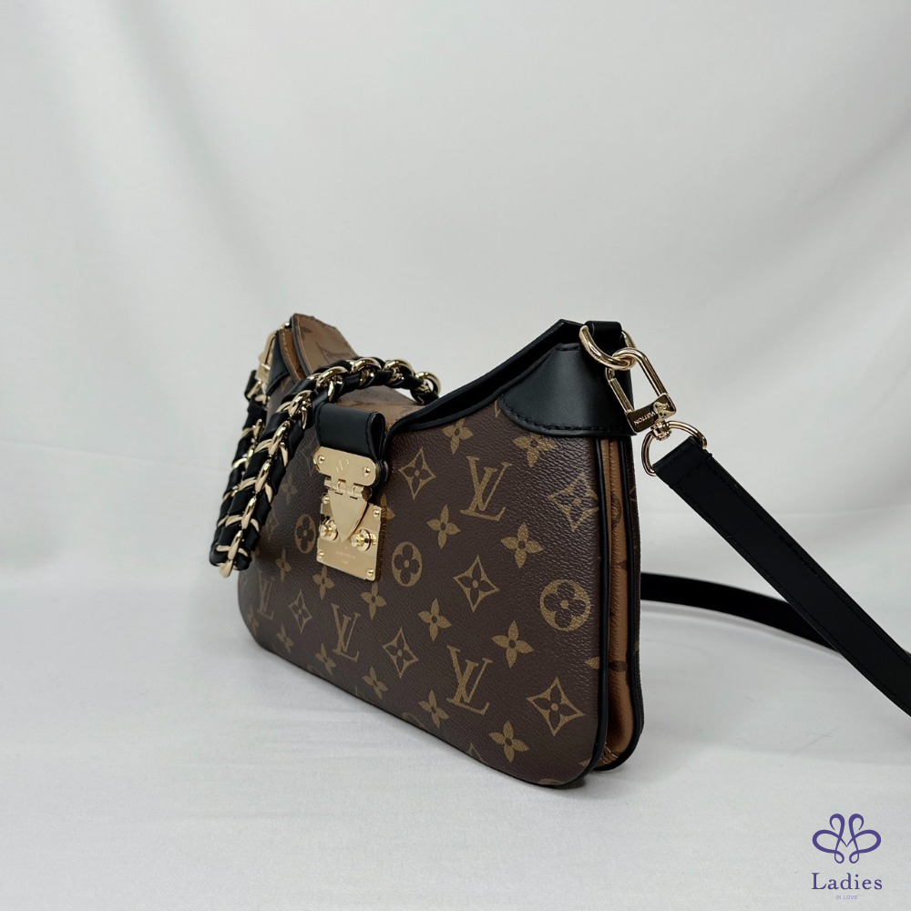 產品信息 【LV Twinny老花黑牛角包】 #專櫃價10萬2 #晶片版 糅合Monogram及Monogram Reverse帆布,配以黑色皮革飾邊 飾以標誌性的S-Lock鎖扣及編織鏈帶手柄,可手挽或肩背 也可調整長度作短貼身腰包或斜背攜帶 整體包況約9成新,二手商品均有正常使用/存放痕跡 型號:M46659 尺寸:29x19x9cm 附件:原廠紙袋、原廠防塵袋 #B114011003