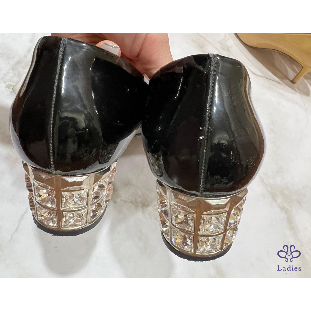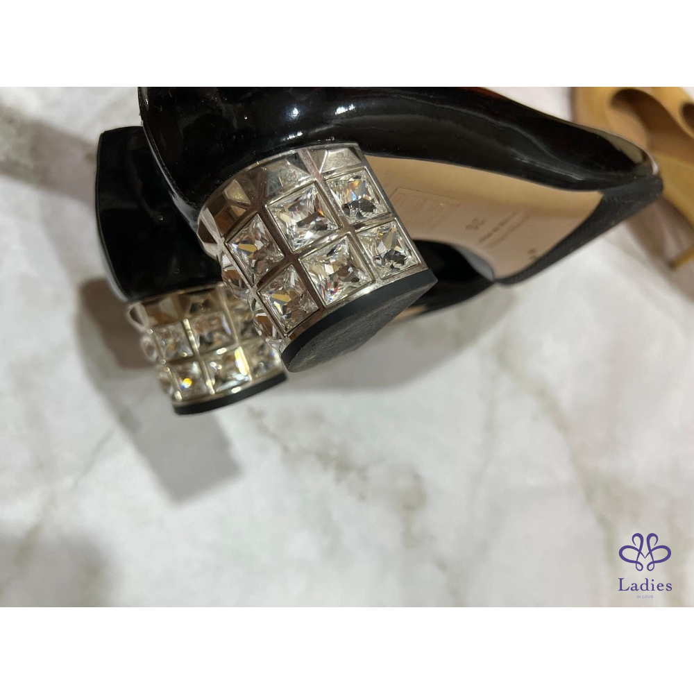 水鑽鞋跟是miumiu家滿有名的款式,基本好搭的矮跟好走,後鞋跟又很有細節,小方頭今年很流行,小香及各大品牌也出好多瑪莉珍款式的方頭鞋