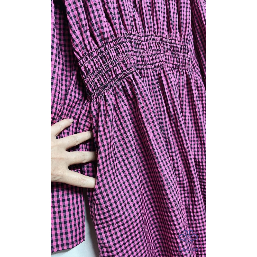 首頁 精品服飾 全新GANNI格紋宮庭袖V領洋裝