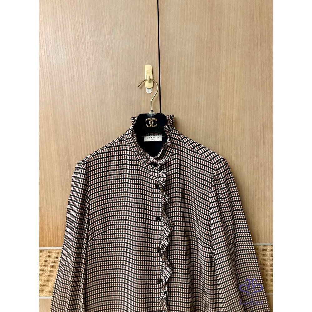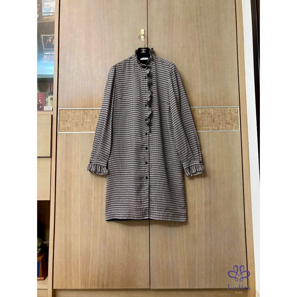 法國SANDRO 襯衫式荷葉滾邊洋裝