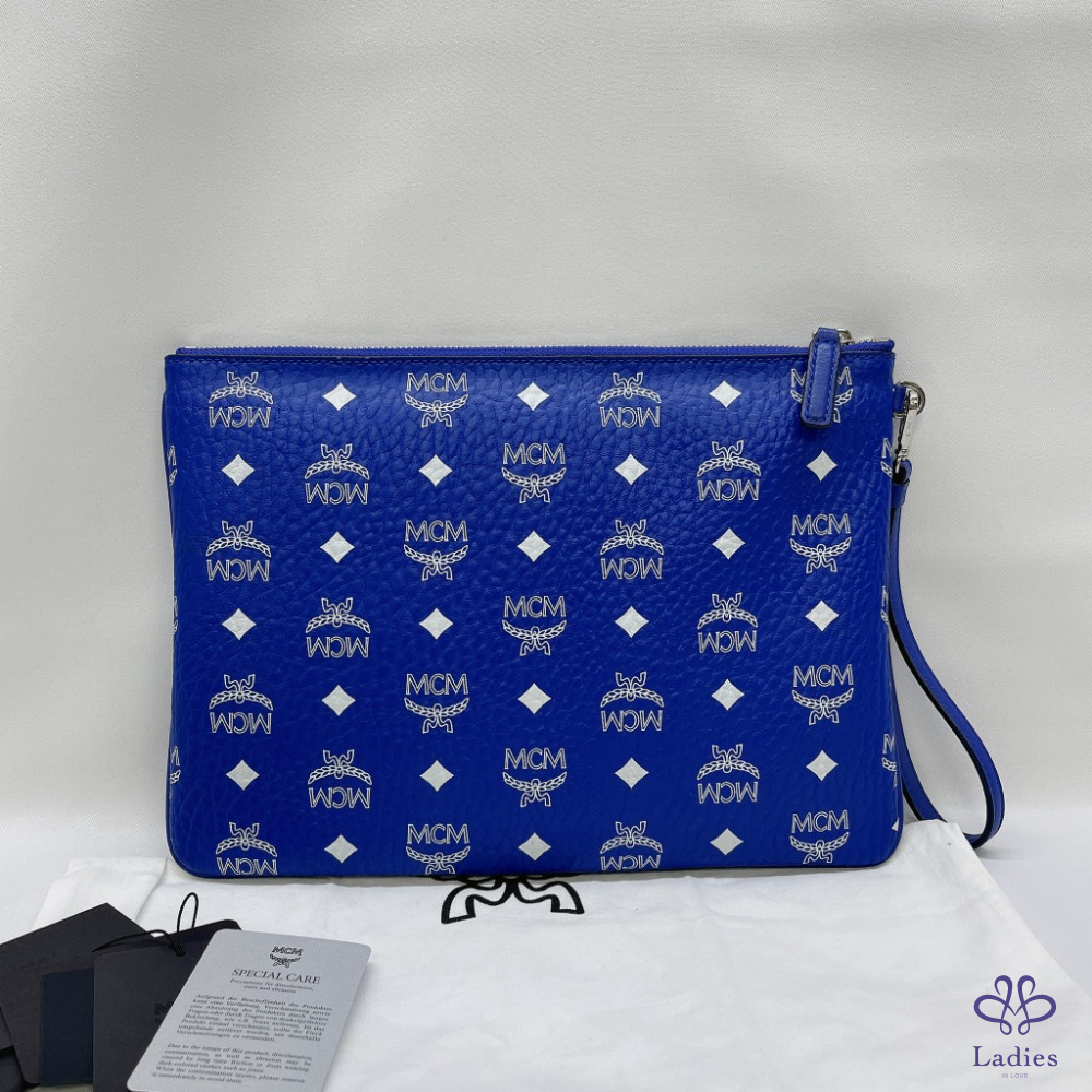 產品信息 【MCM Visetos腕帶拉鍊手拿包】 採用藍色 MCM 字母Visetos塗層帆布製成 搭配白色標誌和深色皮革飾邊,充滿活力及中性魅力造型 尺寸充足寬敞,外出可存放許多小物 隨手一拎即可出門,白天或黑夜都是最亮眼的 整體包況9成新,二手商品均有正常使用/存放痕跡 尺寸:20x30x2cm 附件:原廠防塵袋、說明冊、卡片、型號吊牌 #A112102520