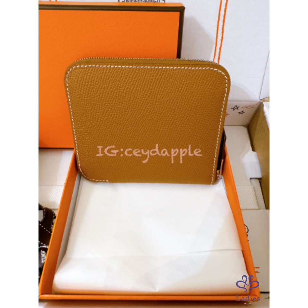 ❤️ Hermès silkin compact 愛馬仕 絲巾短夾(金棕 Gold 自由之城 狗狗 內裏)