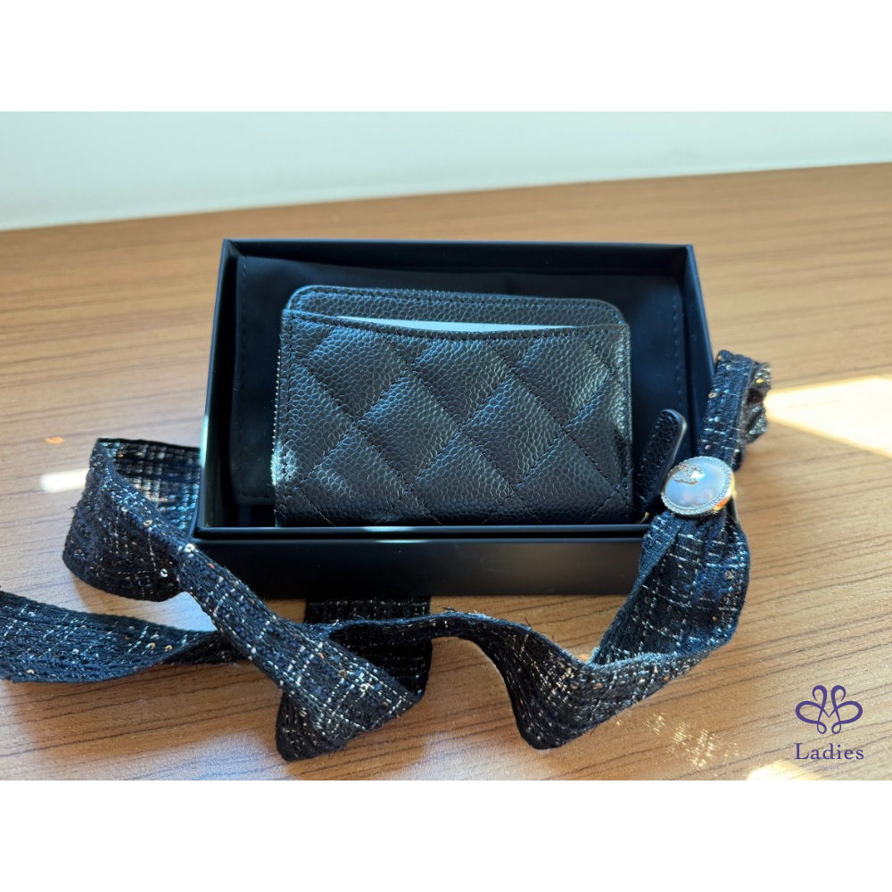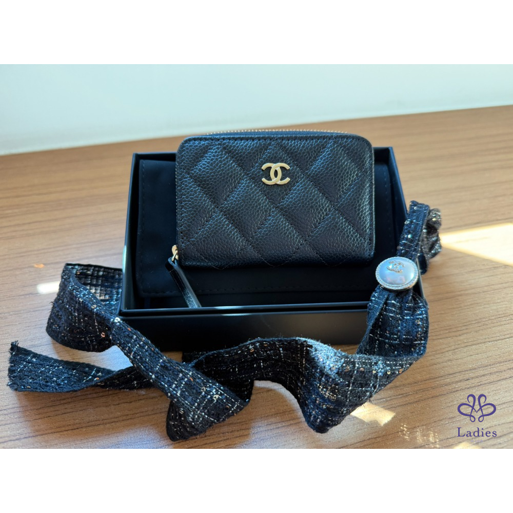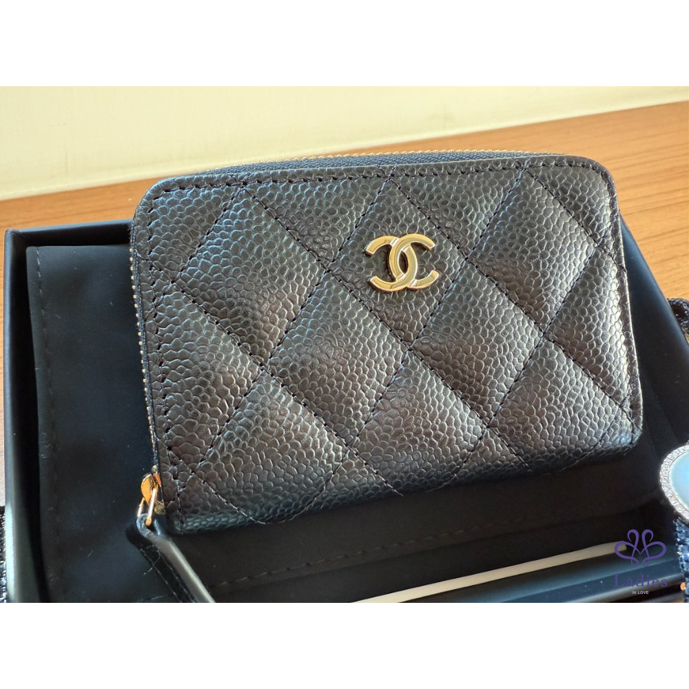全新熱門款Chanel黑色牛皮拉鍊零錢包金釦
