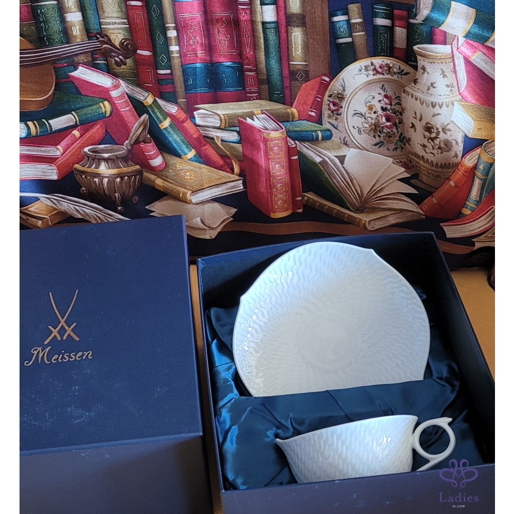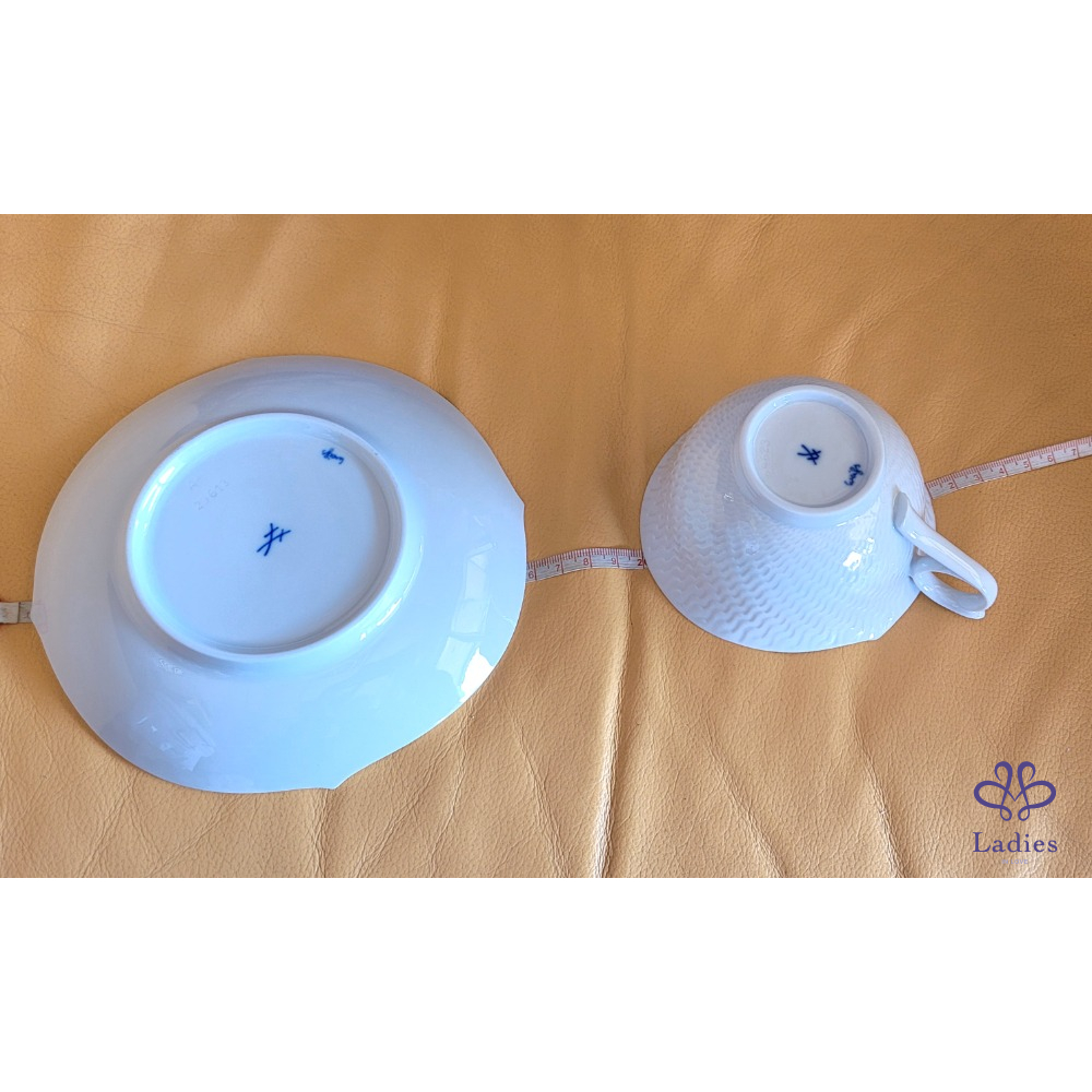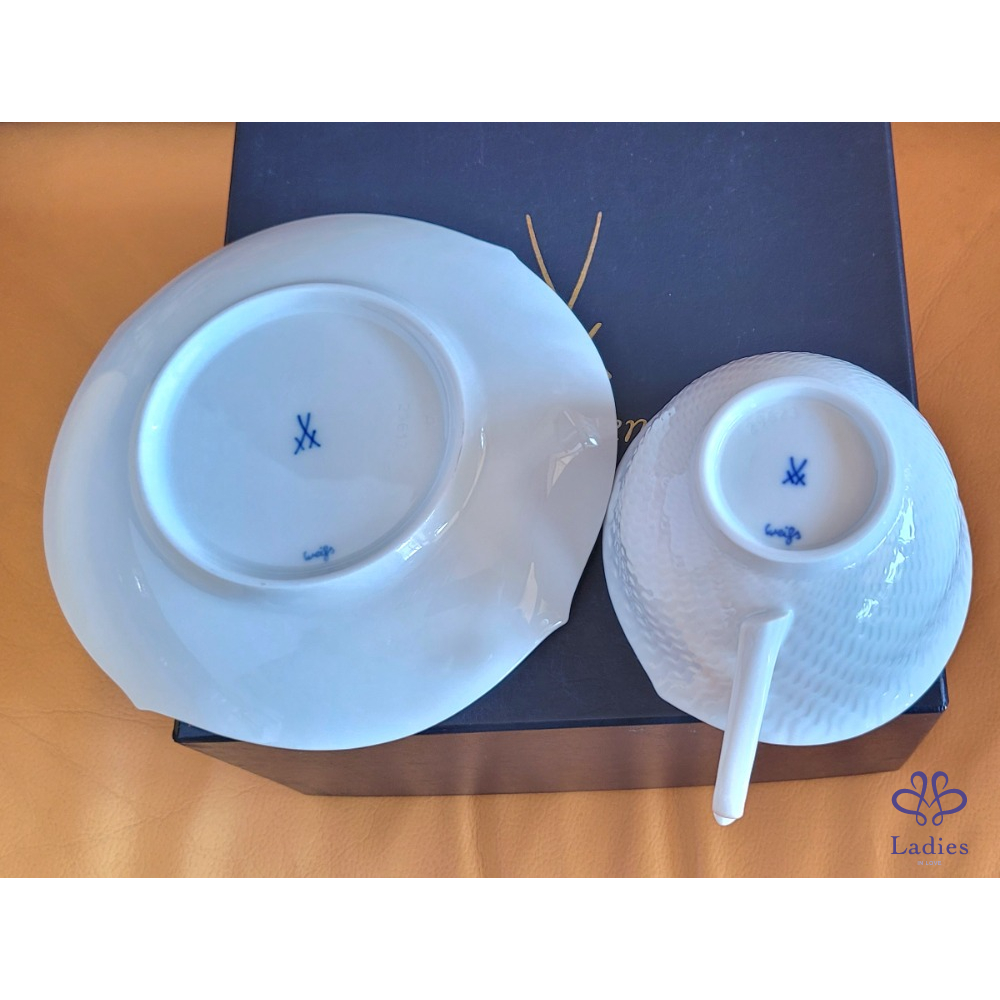 ~MEISSEN 全新白瓷立體 咖啡/花茶一杯一盤
