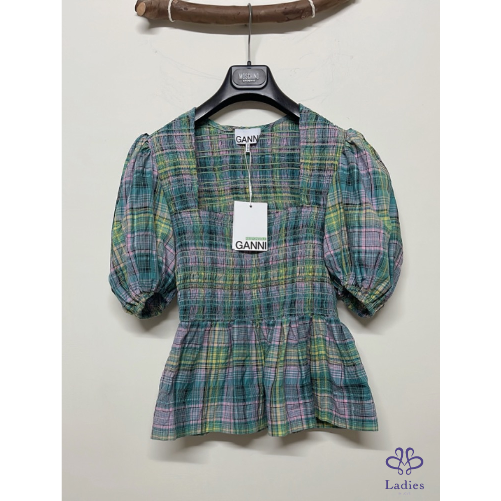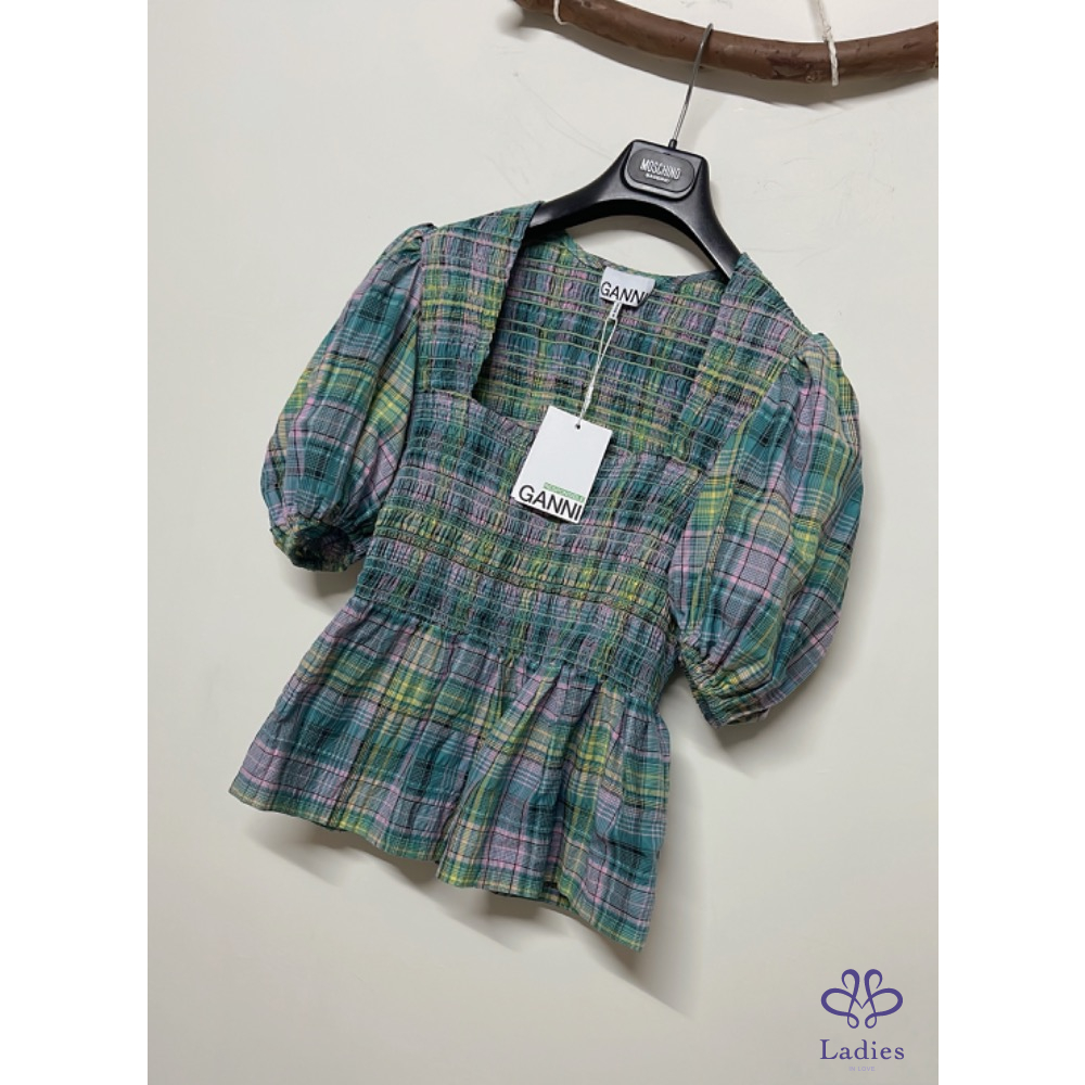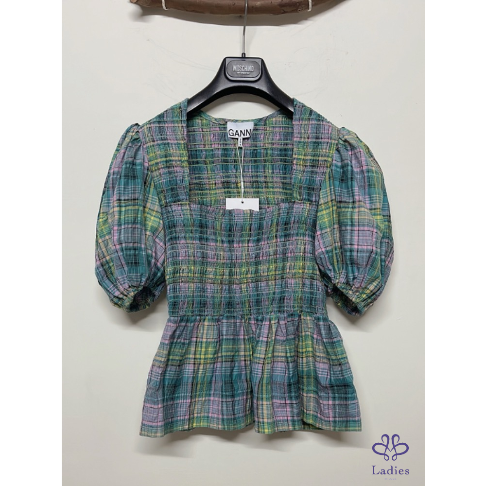 首頁 精品服飾 全新GANNI綠格紋宮庭袖上衣