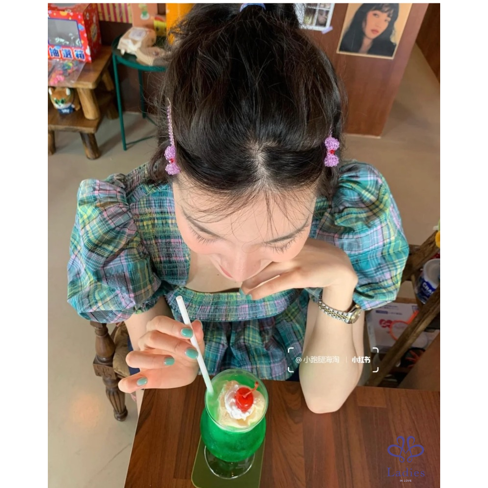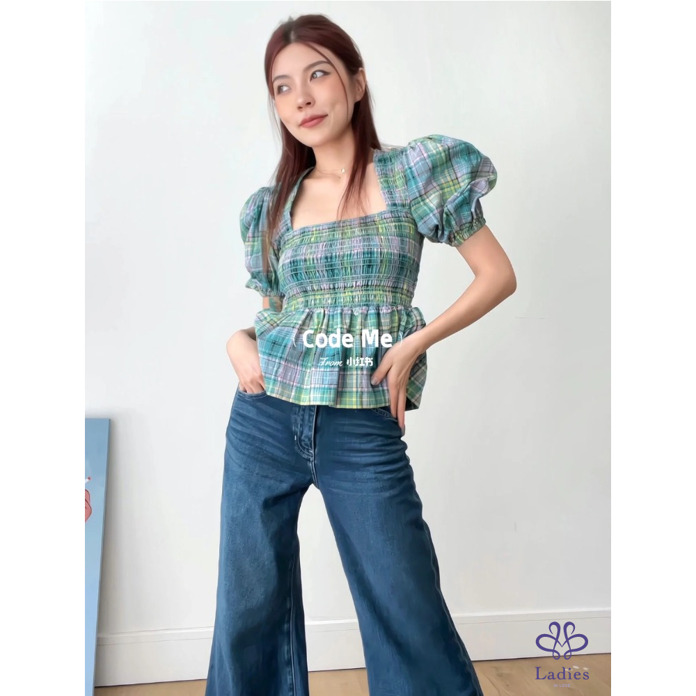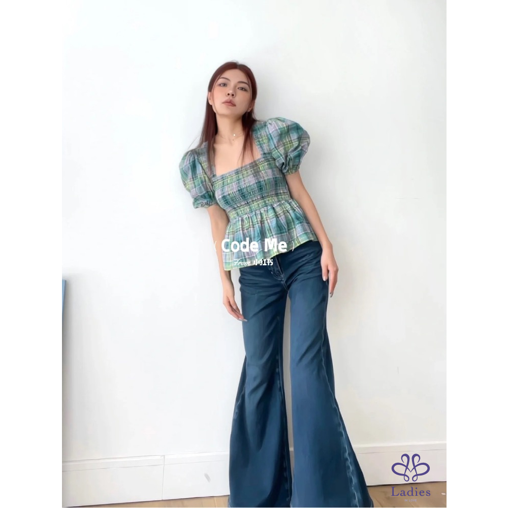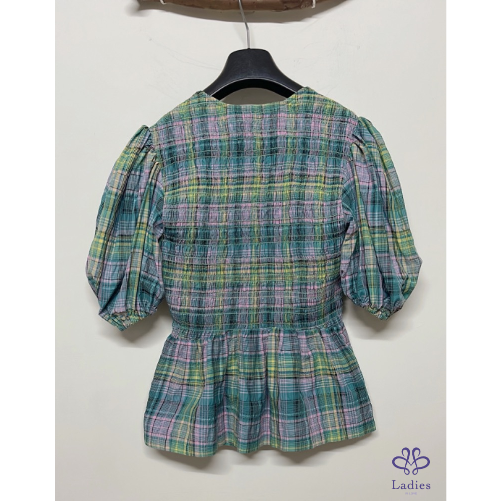 首頁 精品服飾 全新GANNI綠格紋宮庭袖上衣