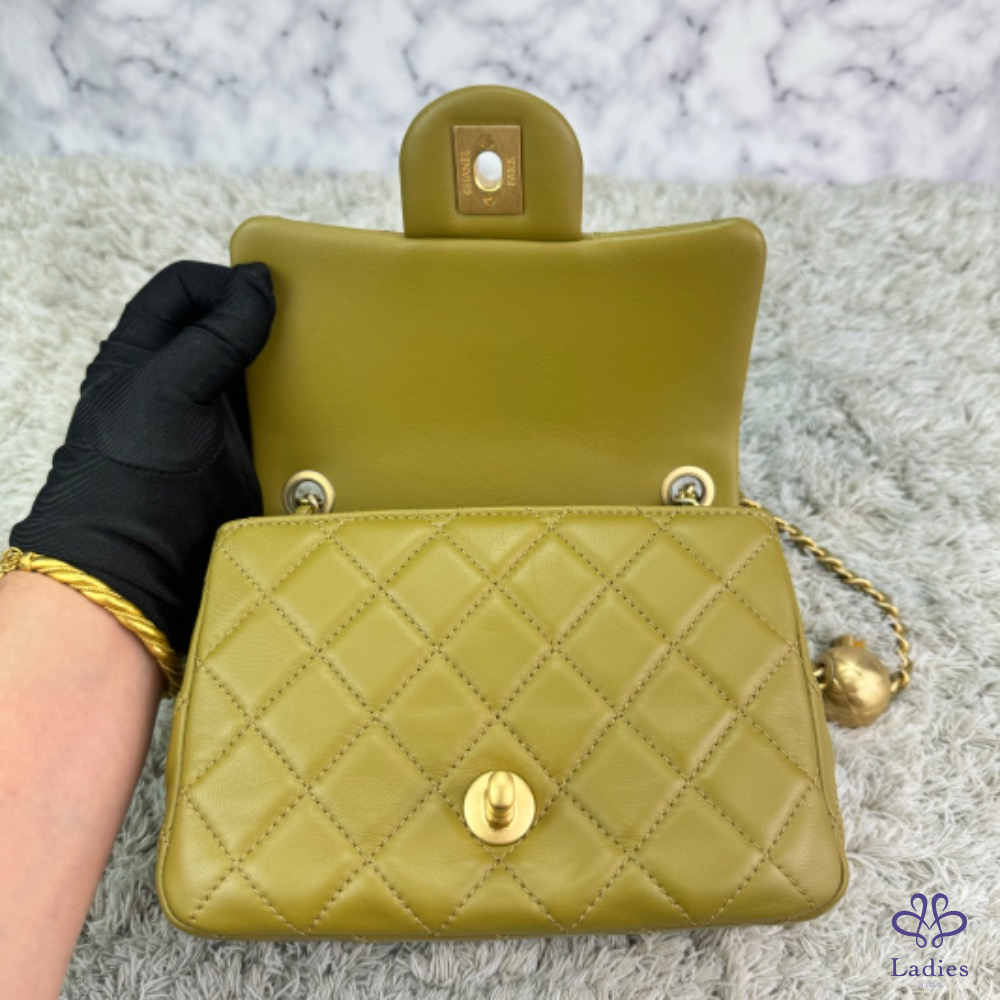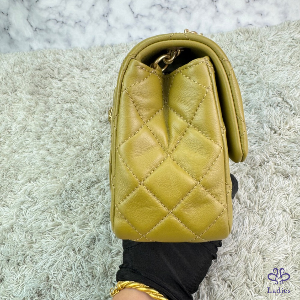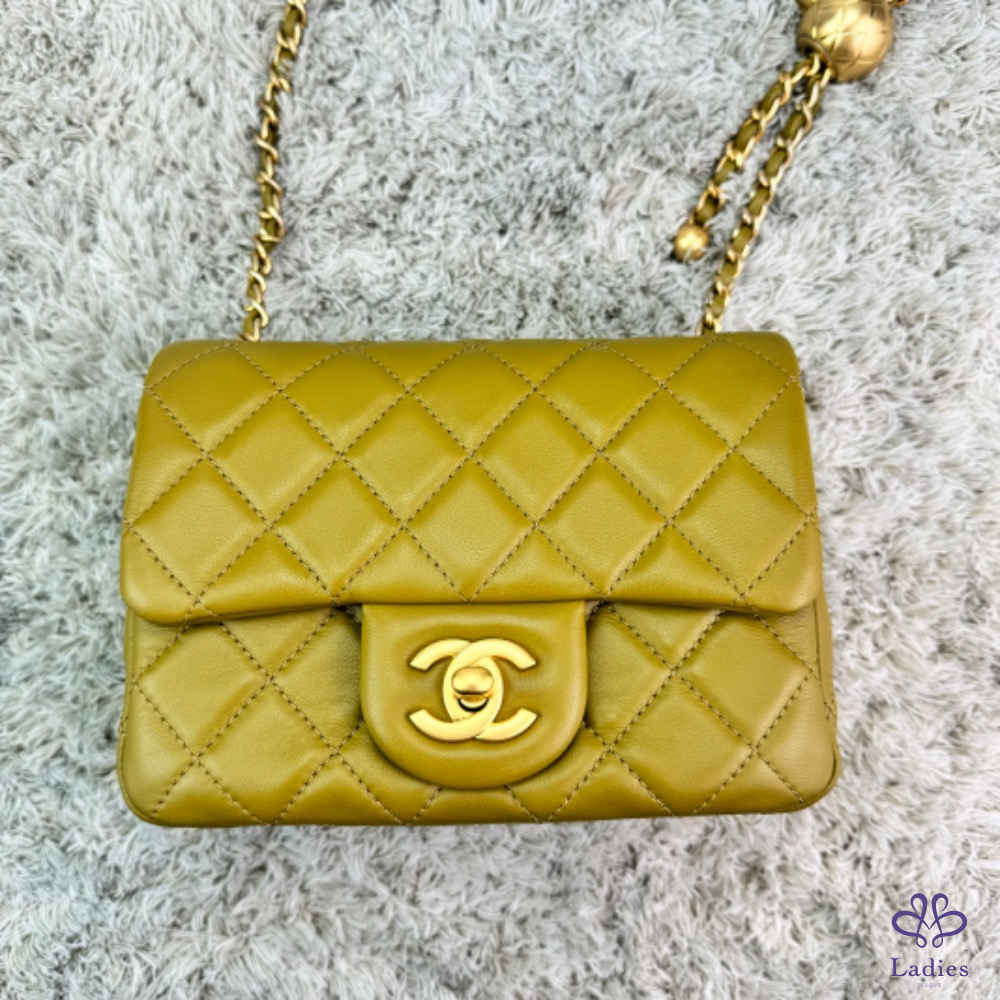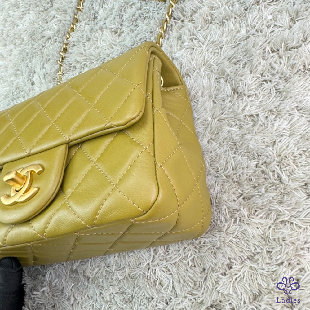 ⭕️ 這個顏色好美,金球方胖芥末黃這顏色偏向綠色,有點象抹茶綠、但色號是深黃色,這個顏色蠻百搭的,也不容易撞包
