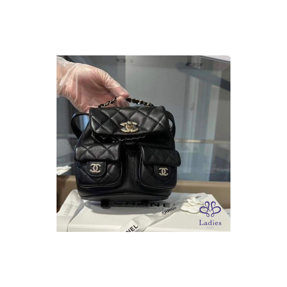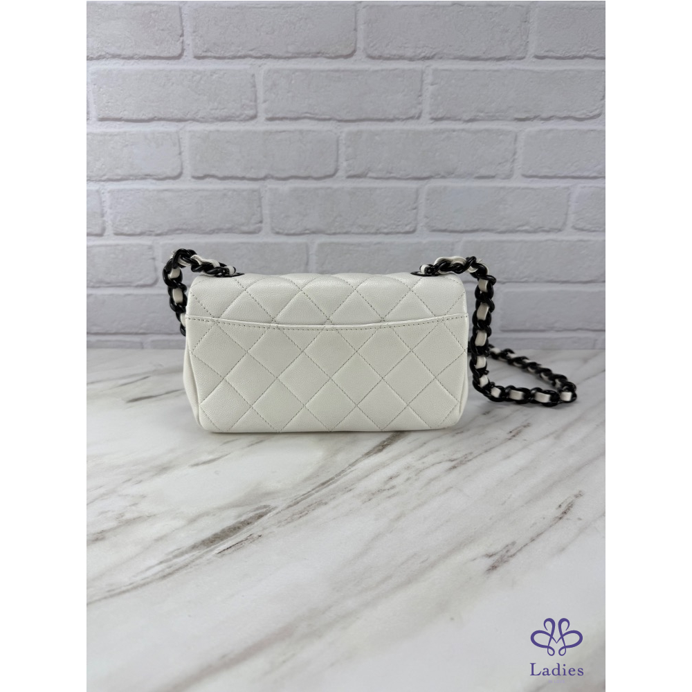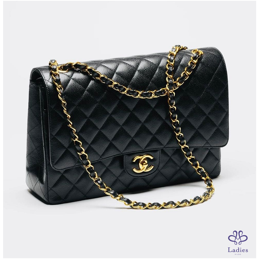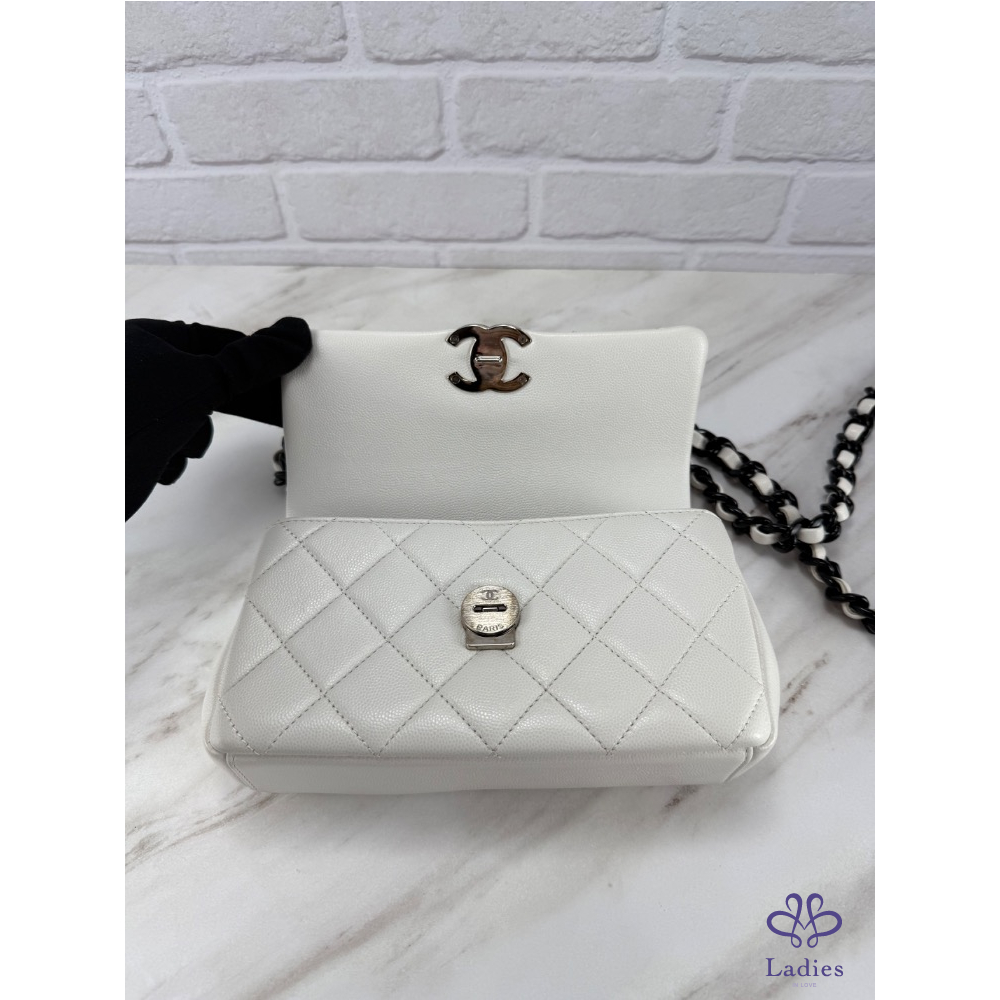 白色荔枝牛皮搭配高級黑色漆面金屬釦的設計,經典又富新意,全黑的雙C Logo格外亮眼,上身時尚,適合各種不同風格穿搭