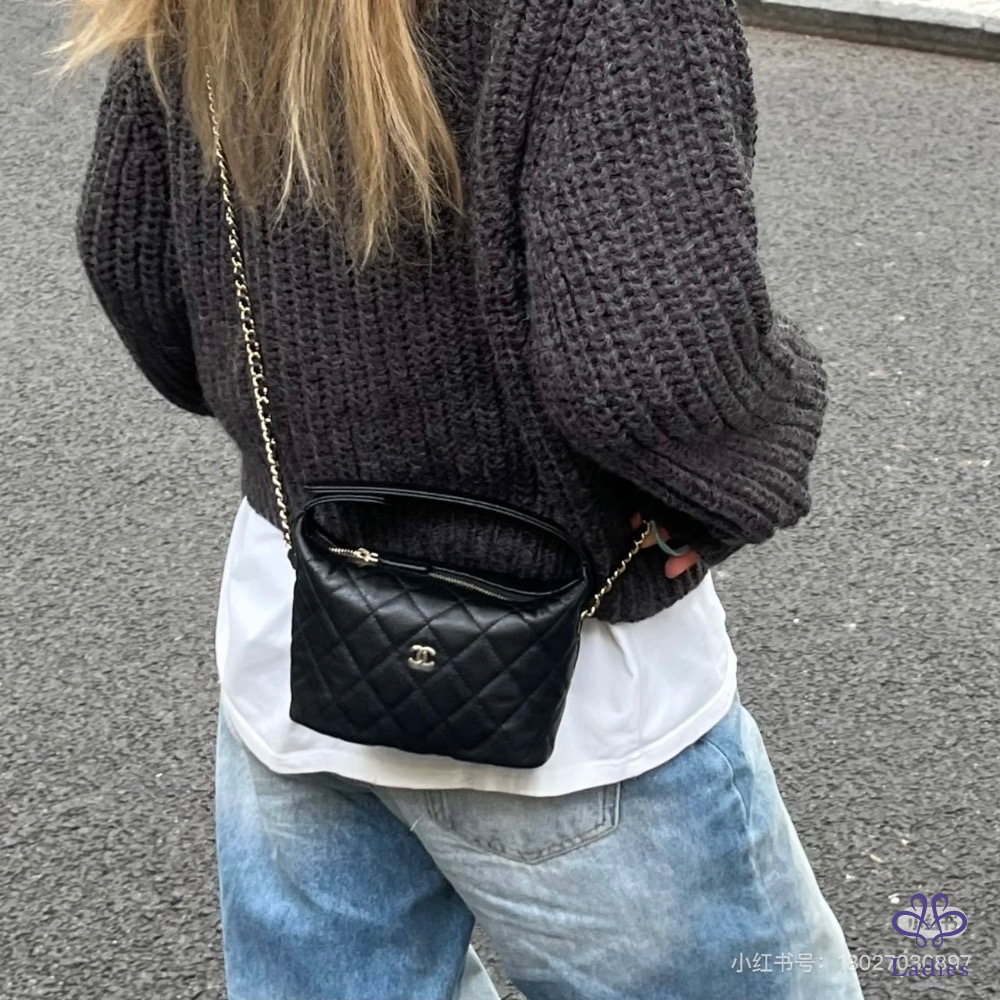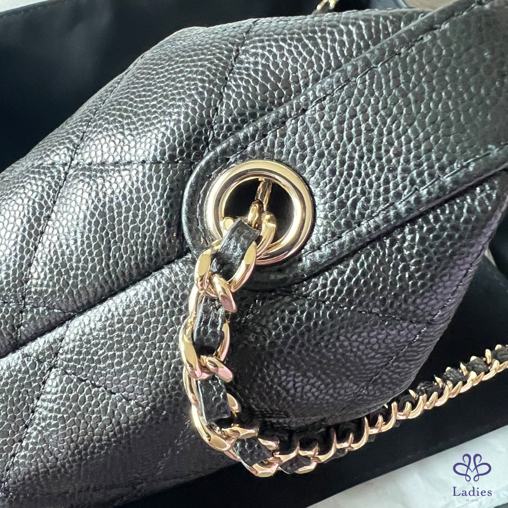 Chanel 香奈兒 25C 飯盒包 黑金荔枝皮
