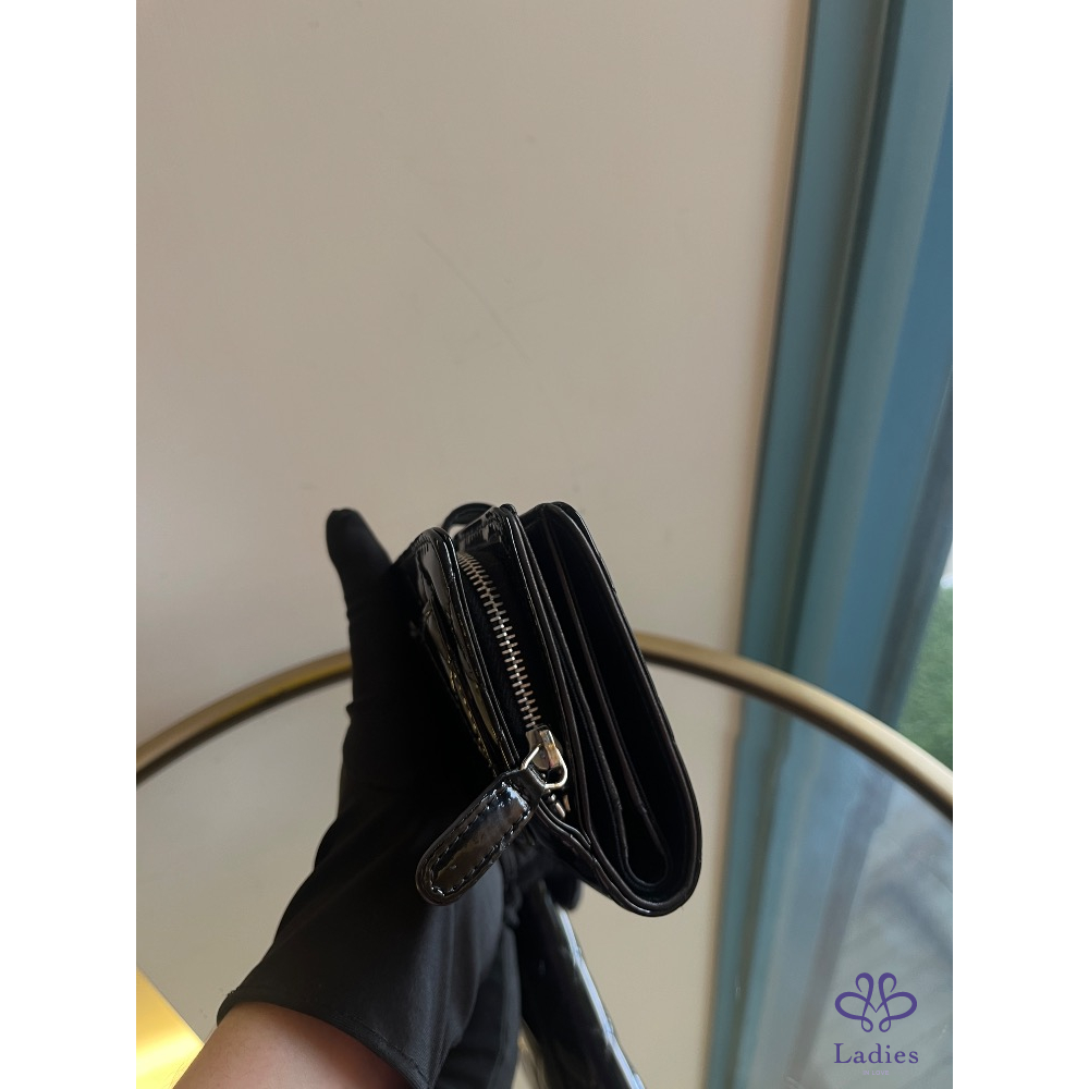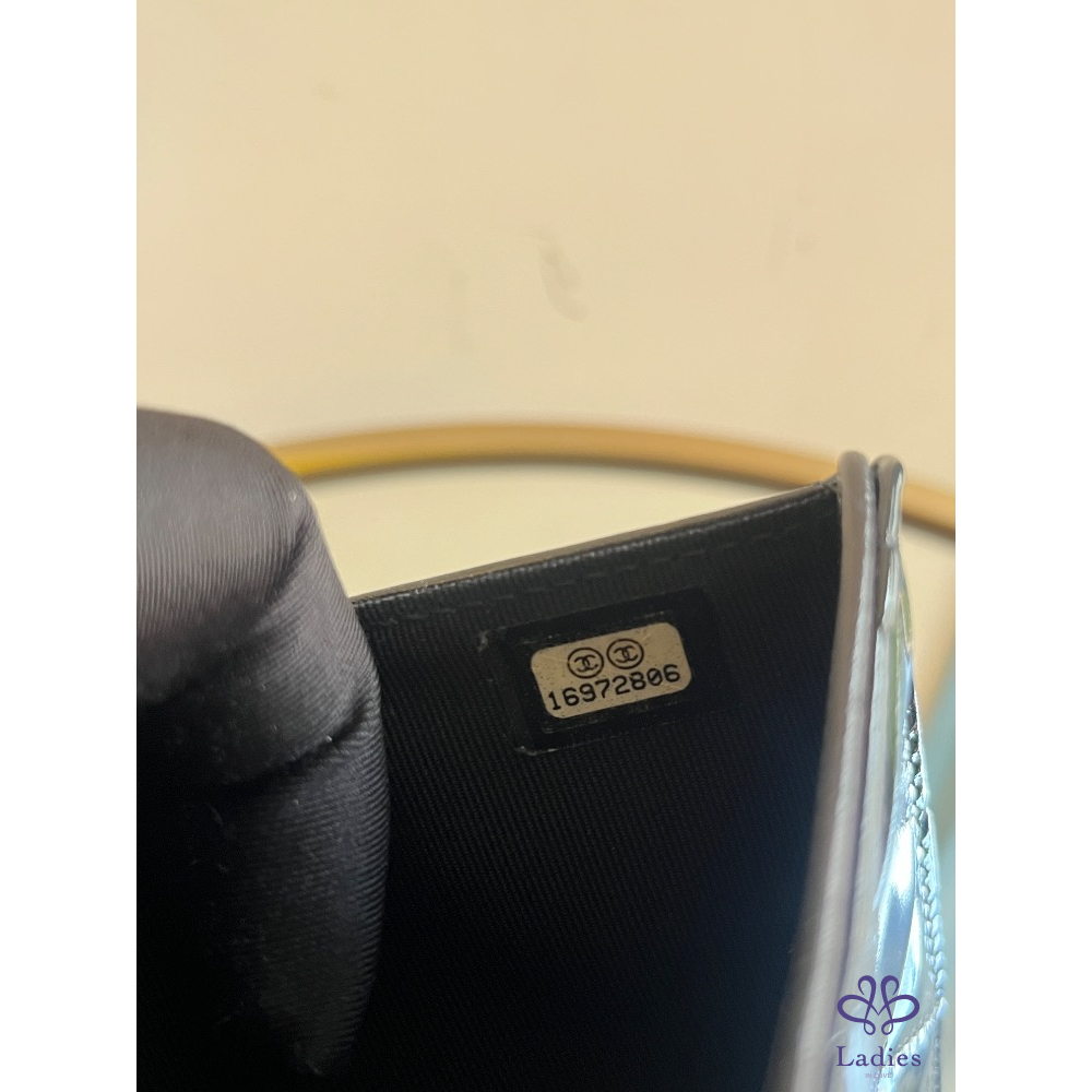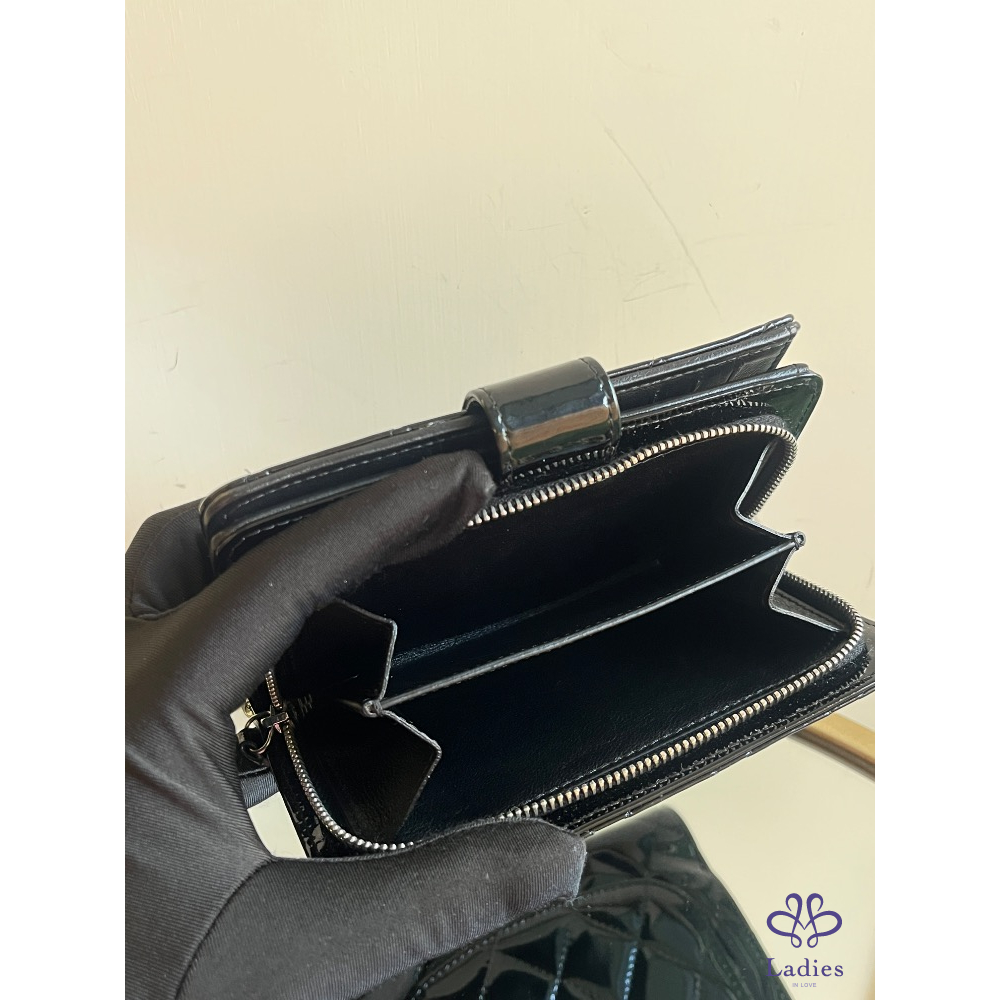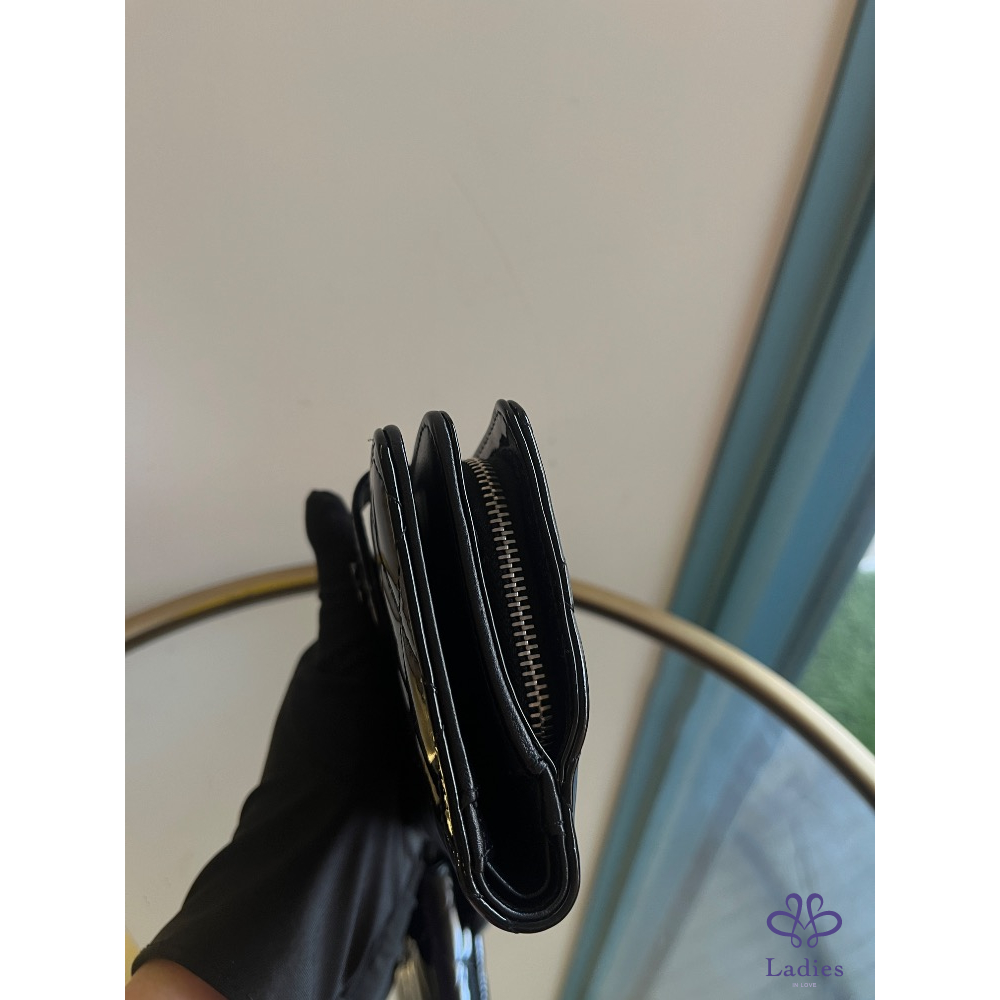產品信息 超稀有款式漆皮中夾~ 漆皮成新度極高 無黏皮 黑色雙C Logo更顯質感個性 內裡牛皮維持還很乾淨漂亮✨ 整體有九新以上,logo正常使用痕跡可細看圖 配件:盒裝、查碼圖(私訊給 尺寸:10*15*3.7cm 圖片已盡力拍攝高標請繞道謝謝