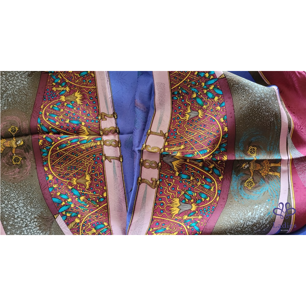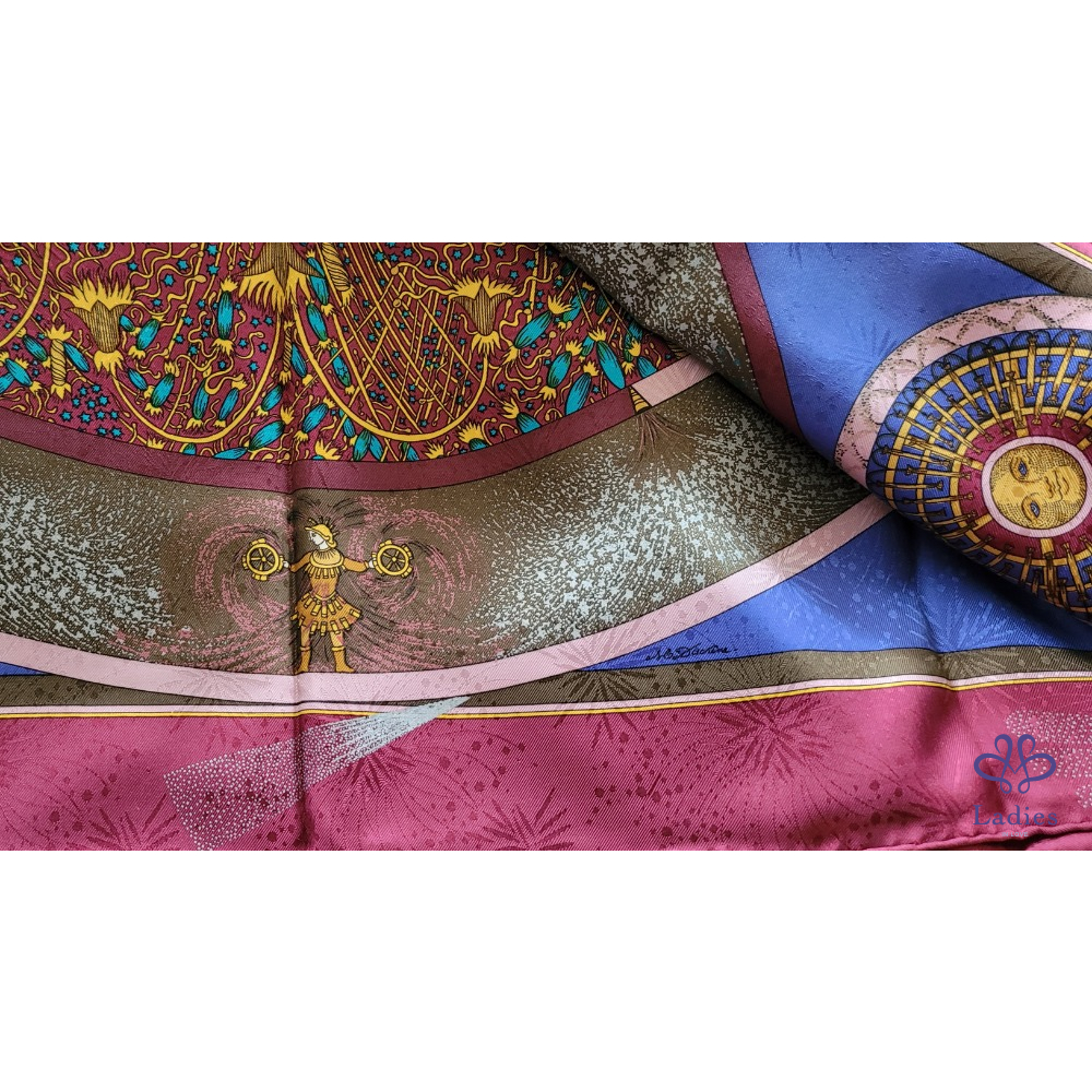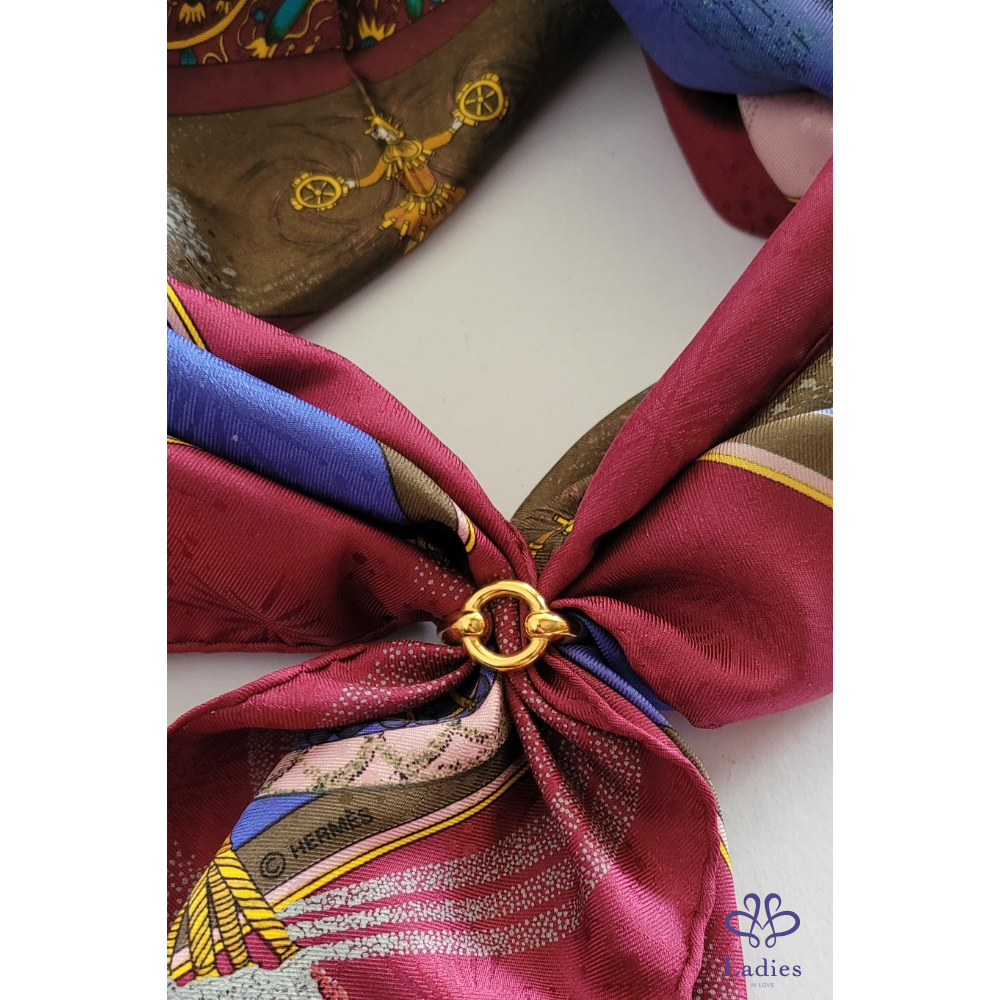 ~HERMES 未使用品 附原廠盒 絲巾環+酒紅色勝利煙火圖案絲巾