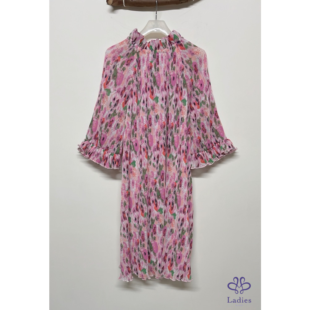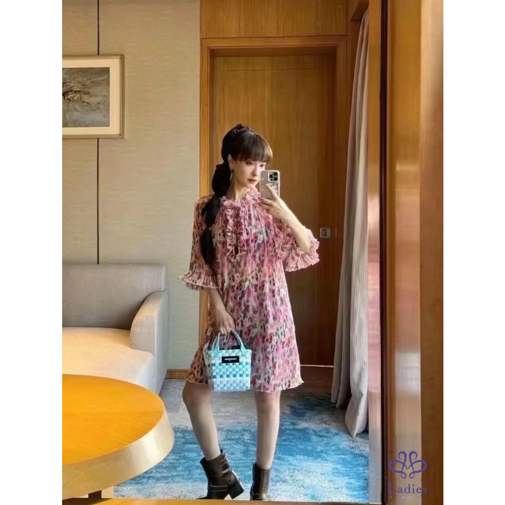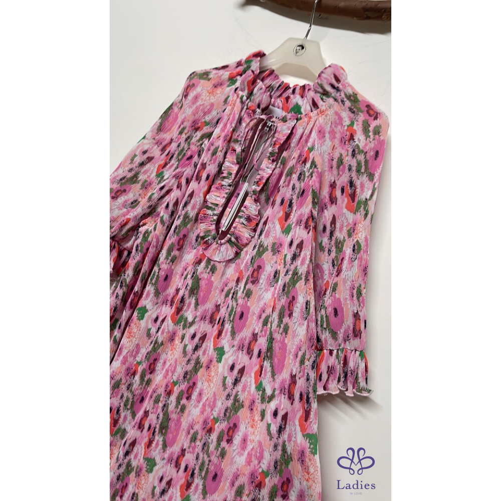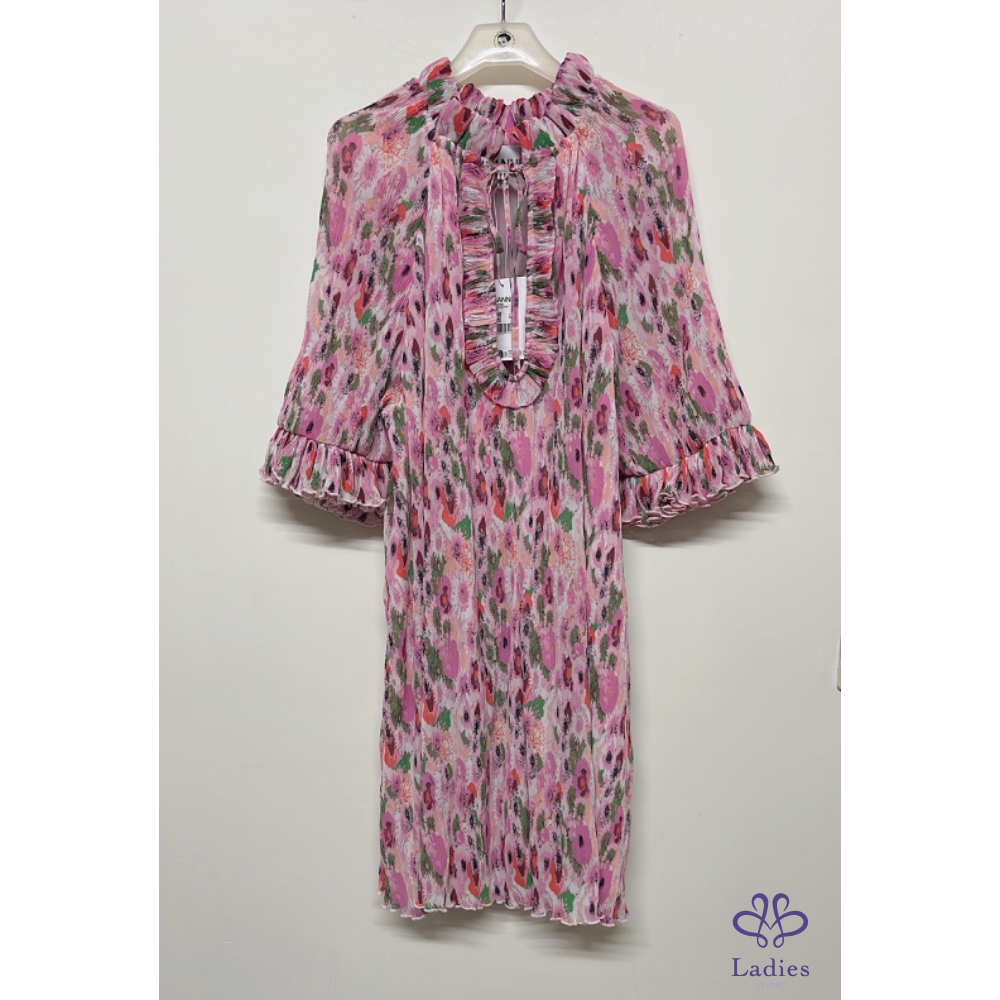 全新GANNI絕美細摺碎花粉色雪紡洋裝